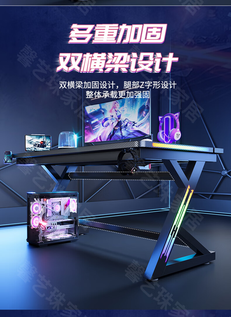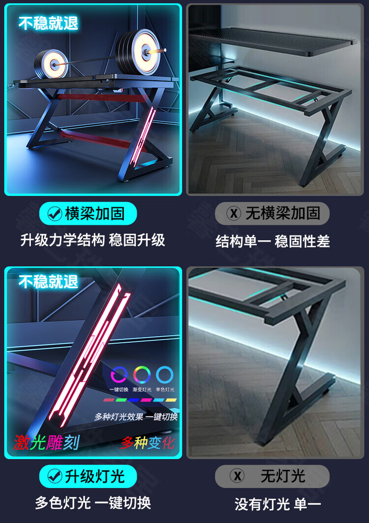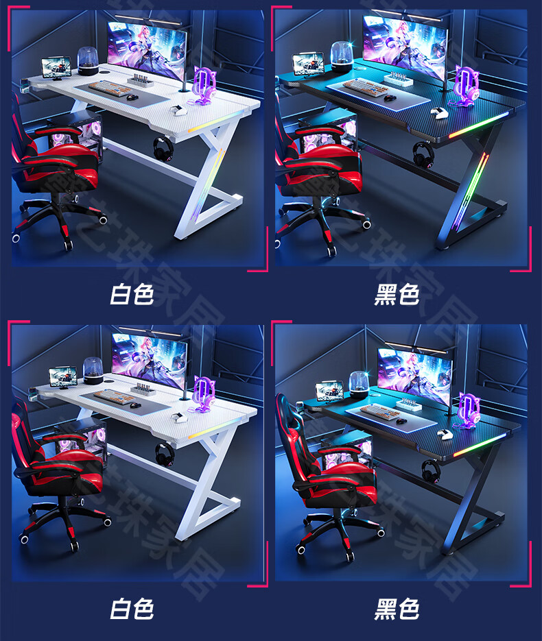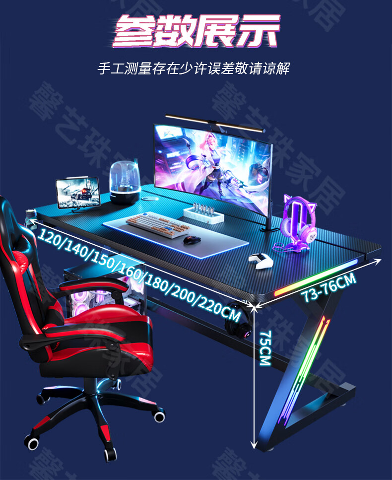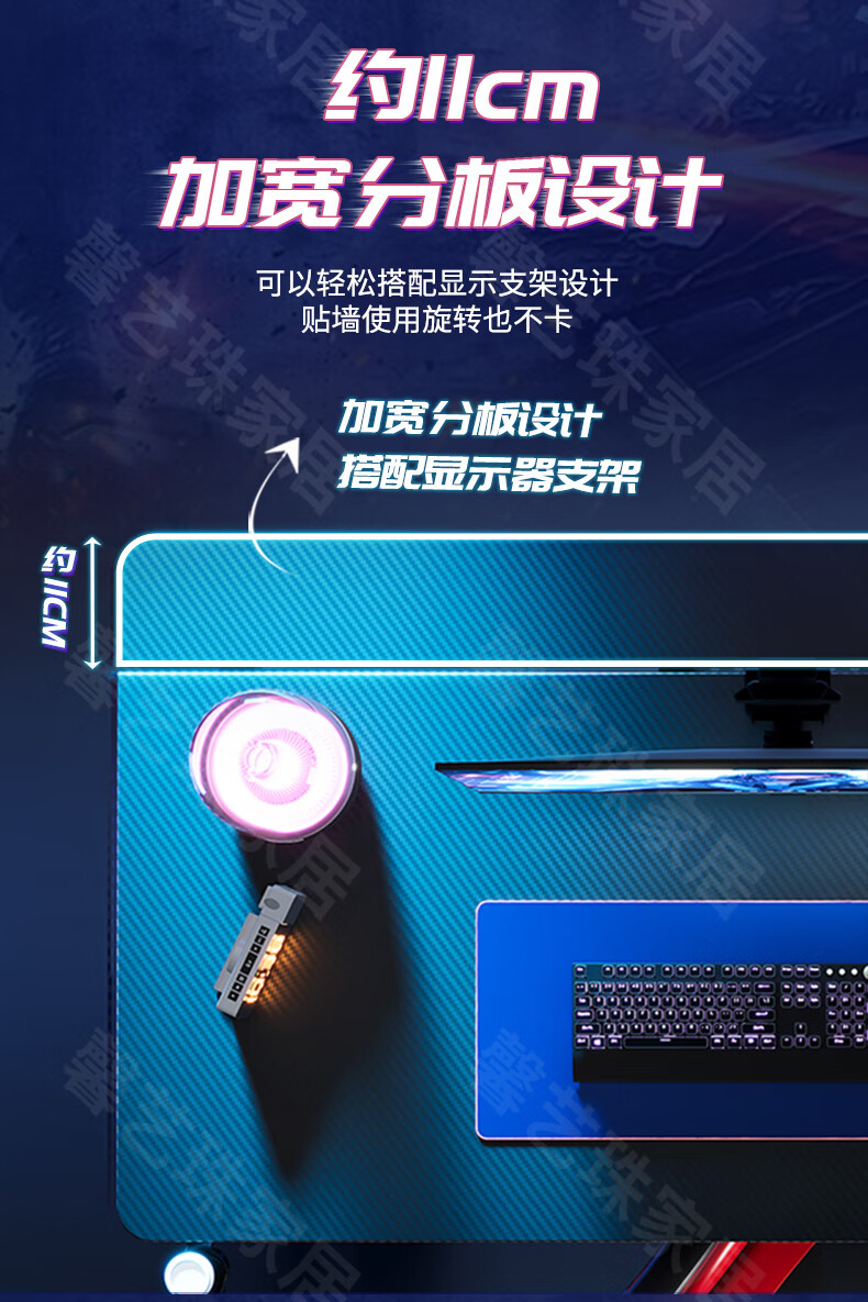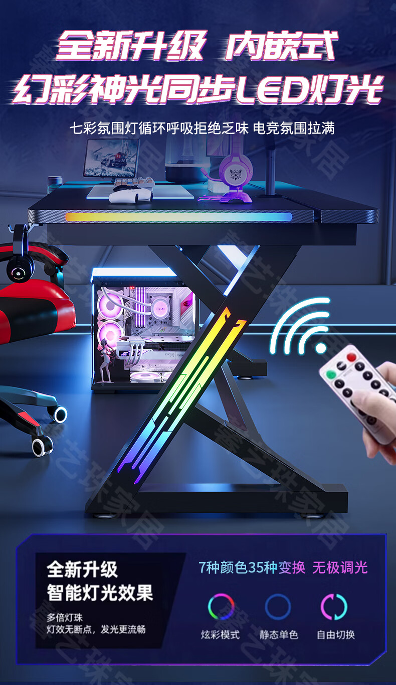 馨艺珠升级S3钛戟电竞桌台式电脑桌实木家用书桌可装机械臂碳纤维游戏桌 S3黑碳纤维+桌面灯 100*73*74cm【二分段板】