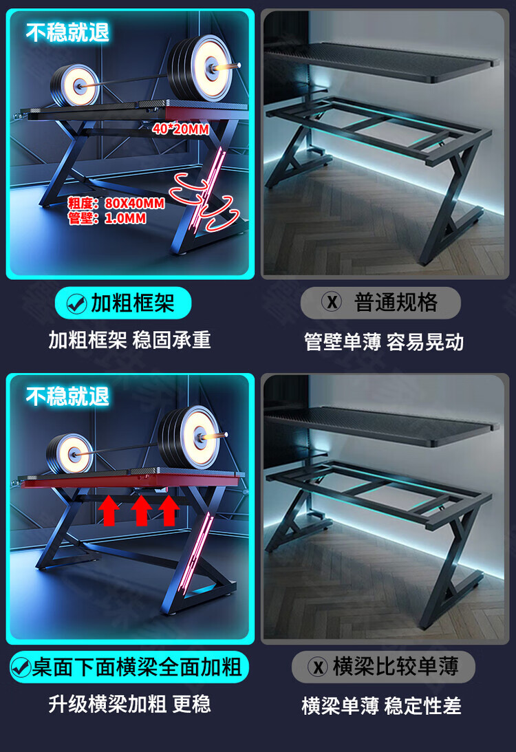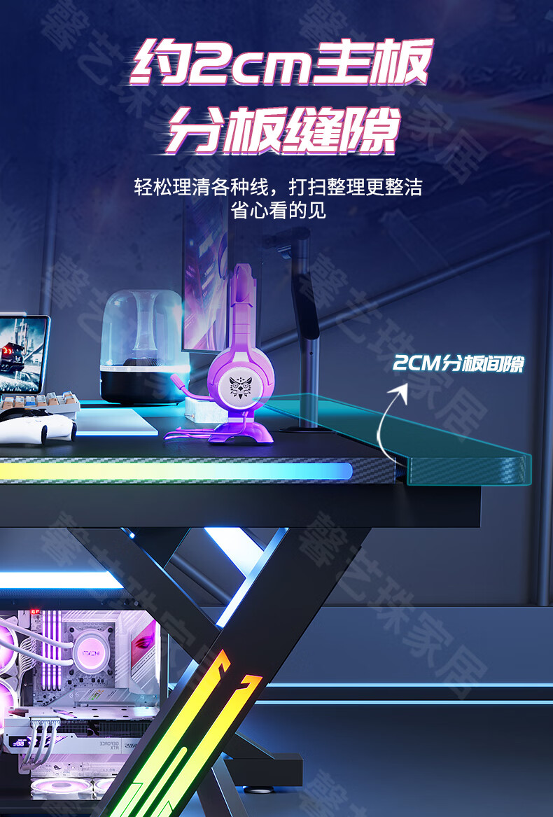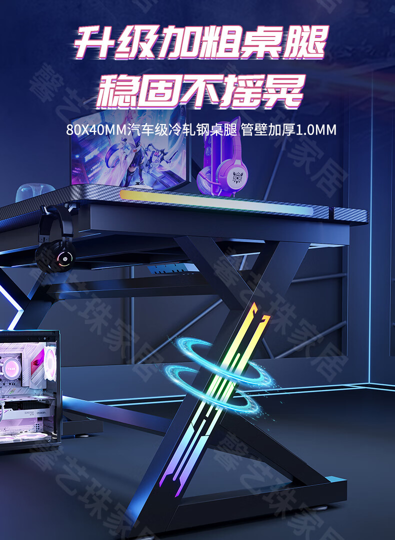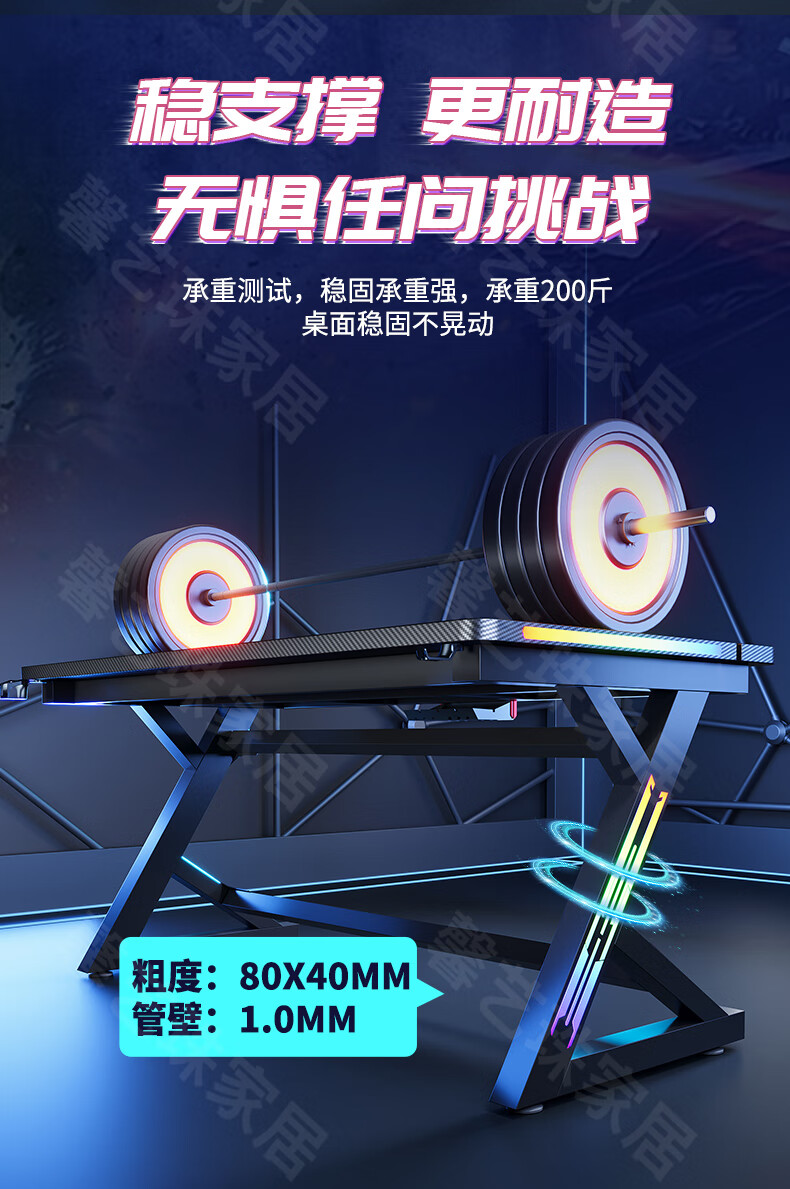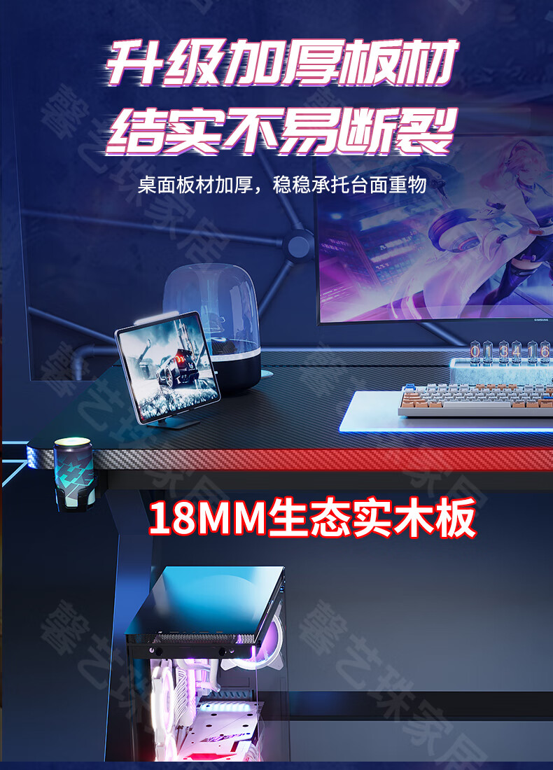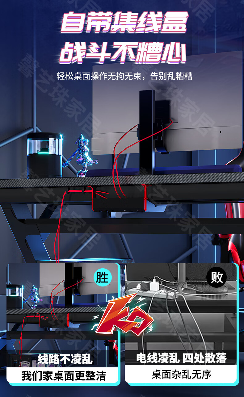 馨艺珠升级S3钛戟电竞桌台式电脑桌实木家用书桌可装机械臂碳纤维游戏桌 S3黑碳纤维+桌面灯 100*73*74cm【二分段板】
