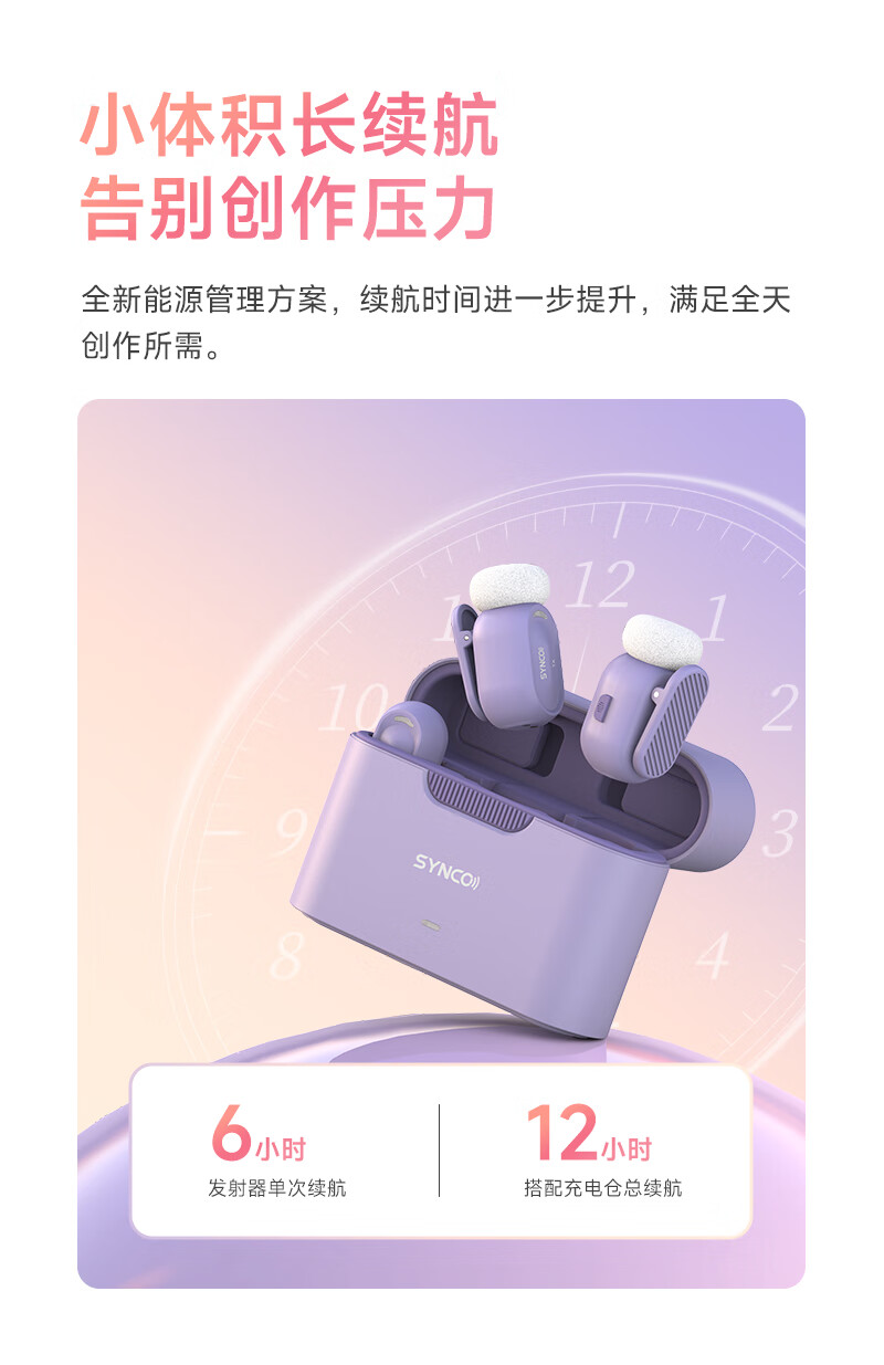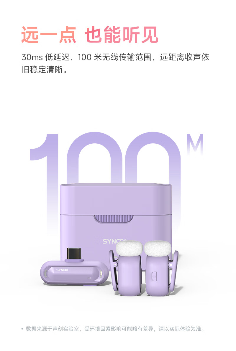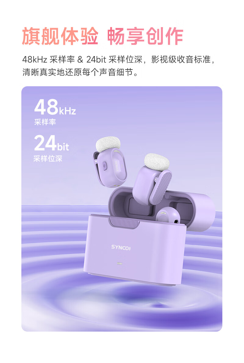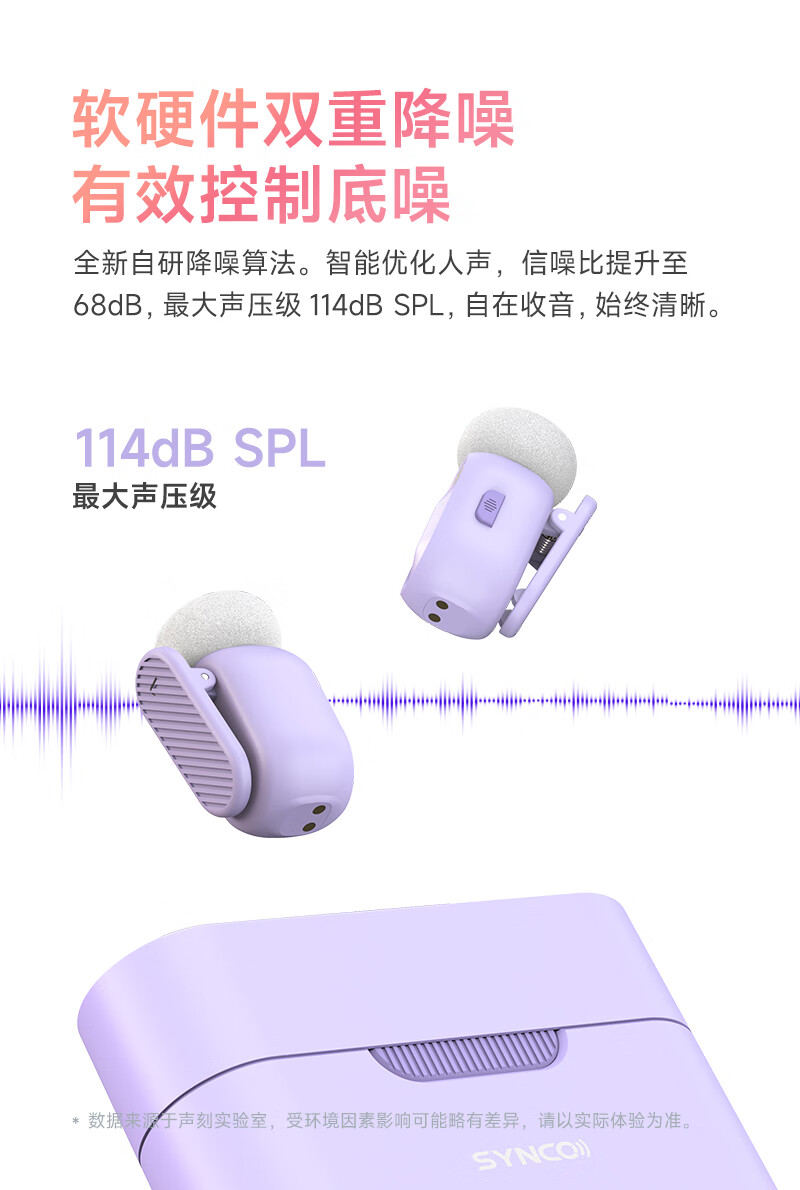 声刻(SYNCO)麦啵啵 迷你无线麦克风夹领式迷你直播设备麦手机采访收音降噪 堇年紫 一拖二(带充电盒)