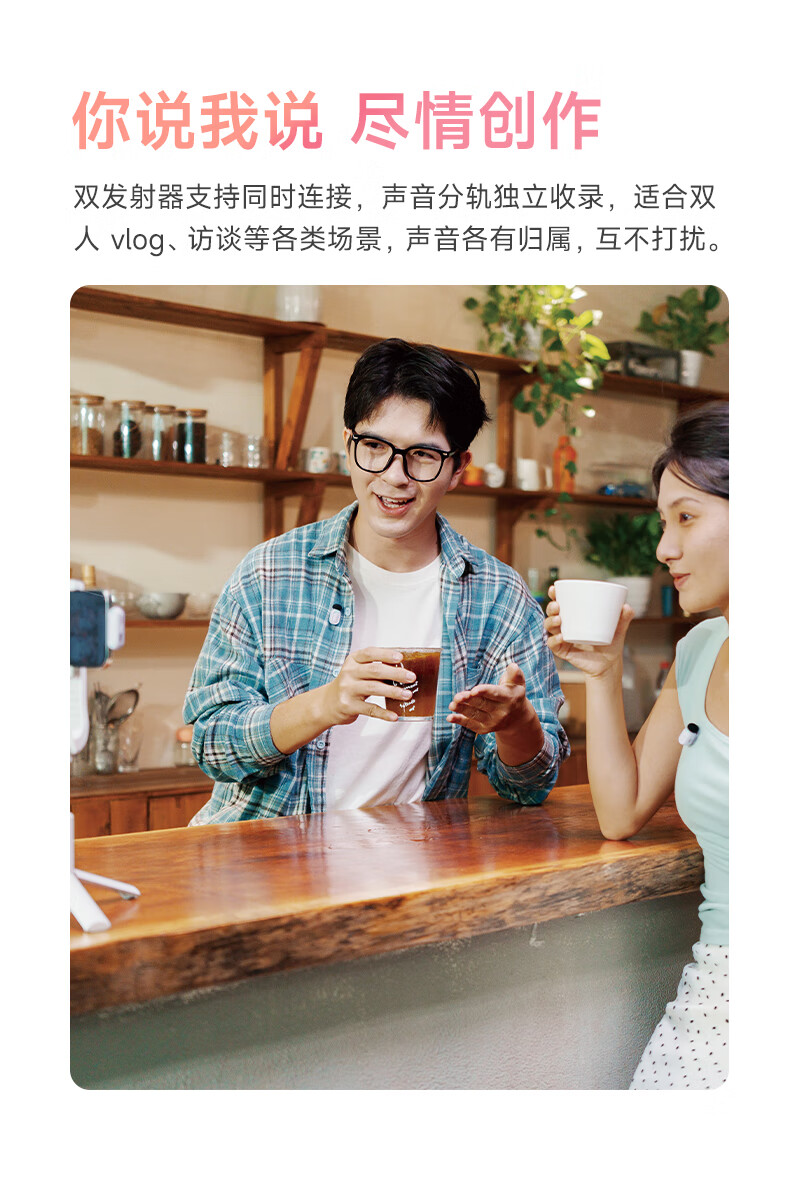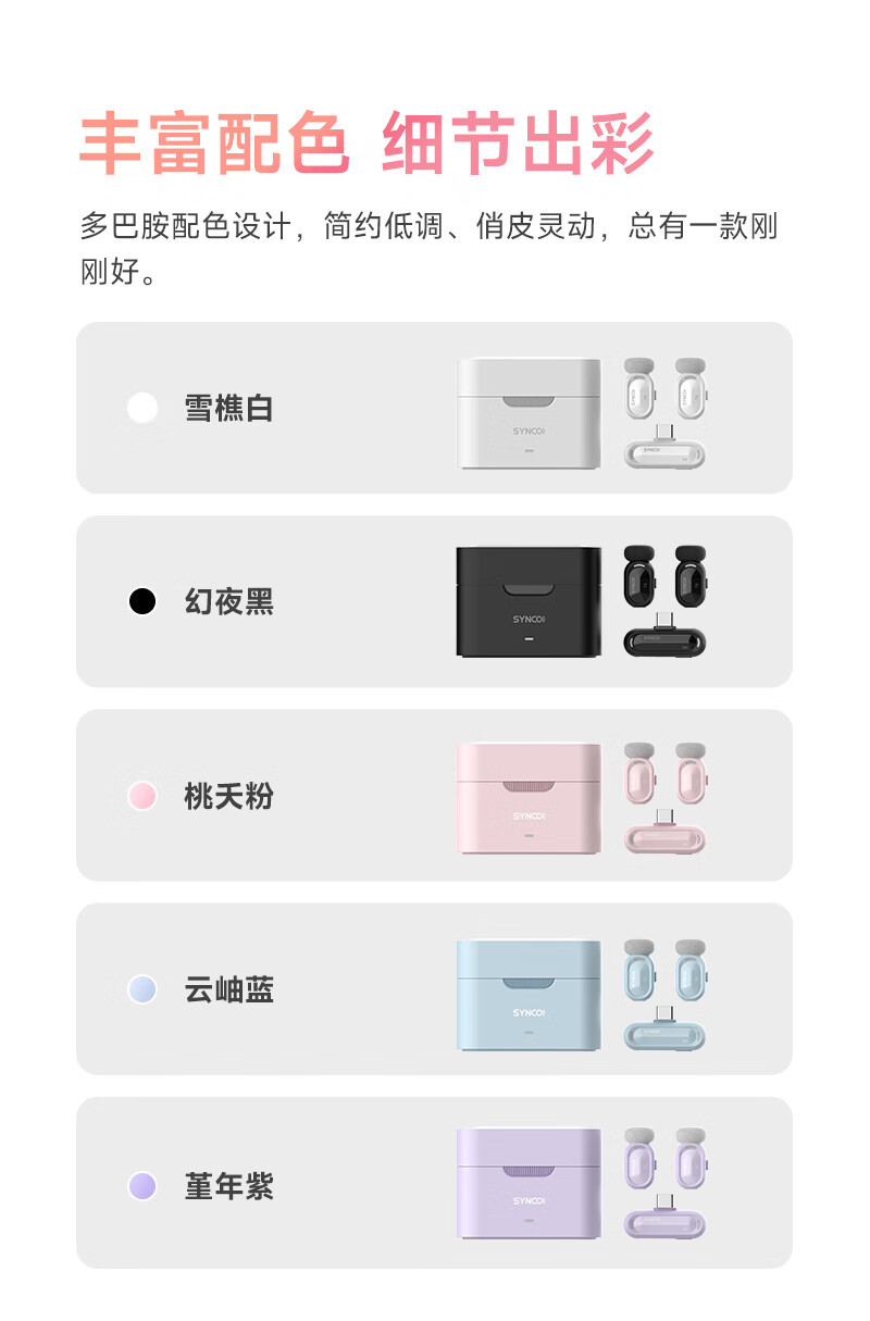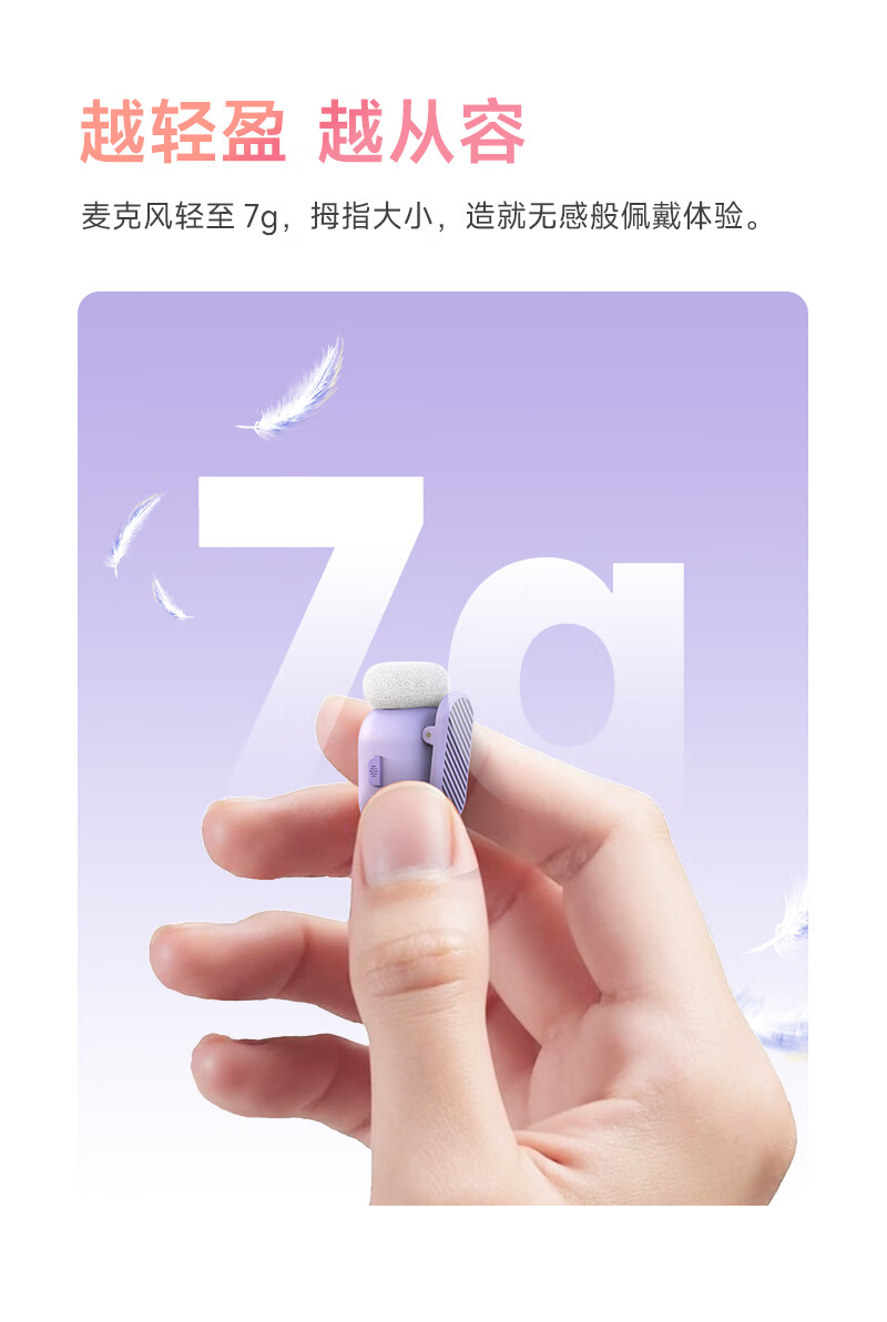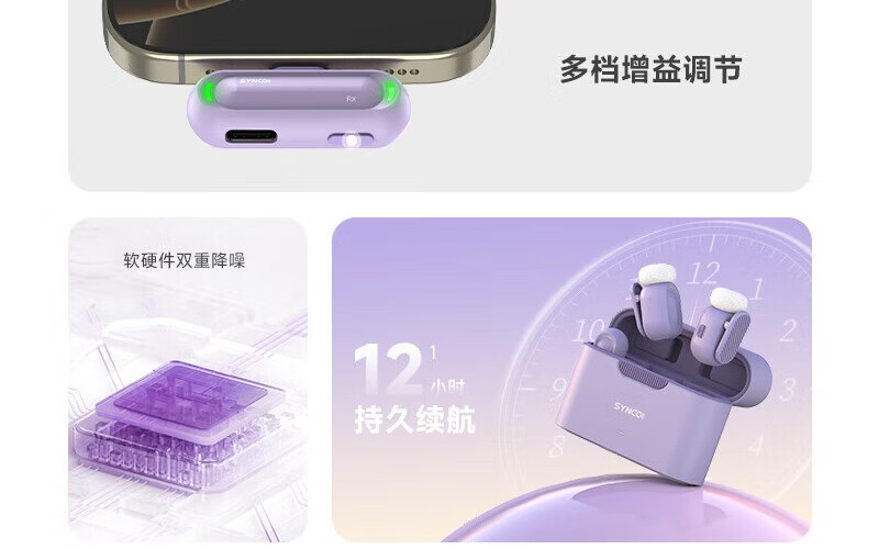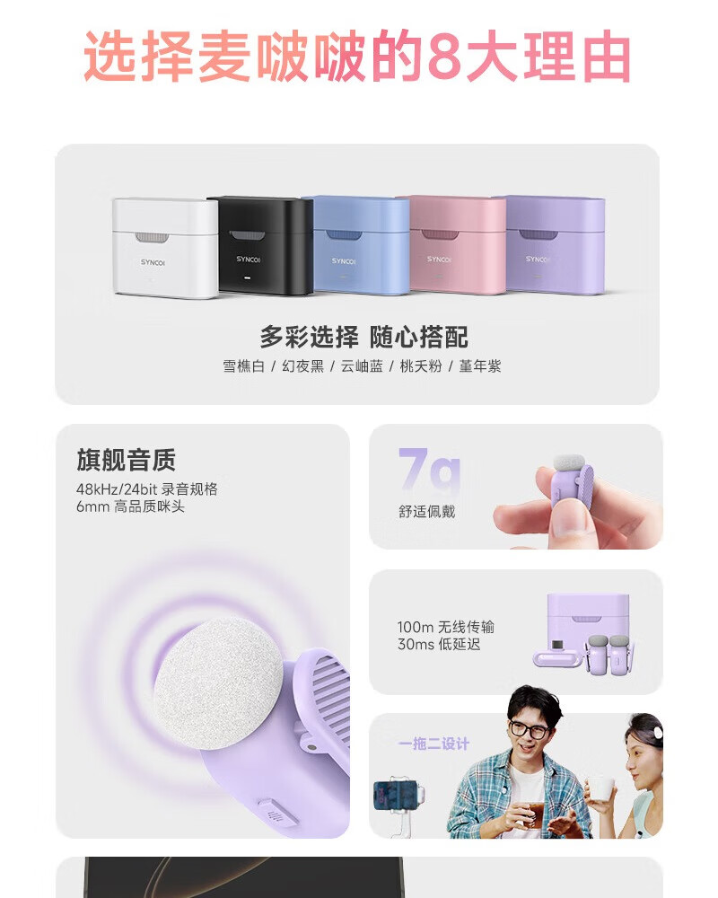 声刻(SYNCO)麦啵啵 迷你无线麦克风夹领式迷你直播设备麦手机采访收音降噪 堇年紫 一拖二(带充电盒)