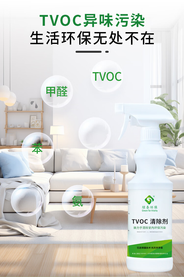 绿泰新房装修TVOC异味清除剂乳胶漆墙纸地胶布艺沙发除甲醛除味剂 1瓶