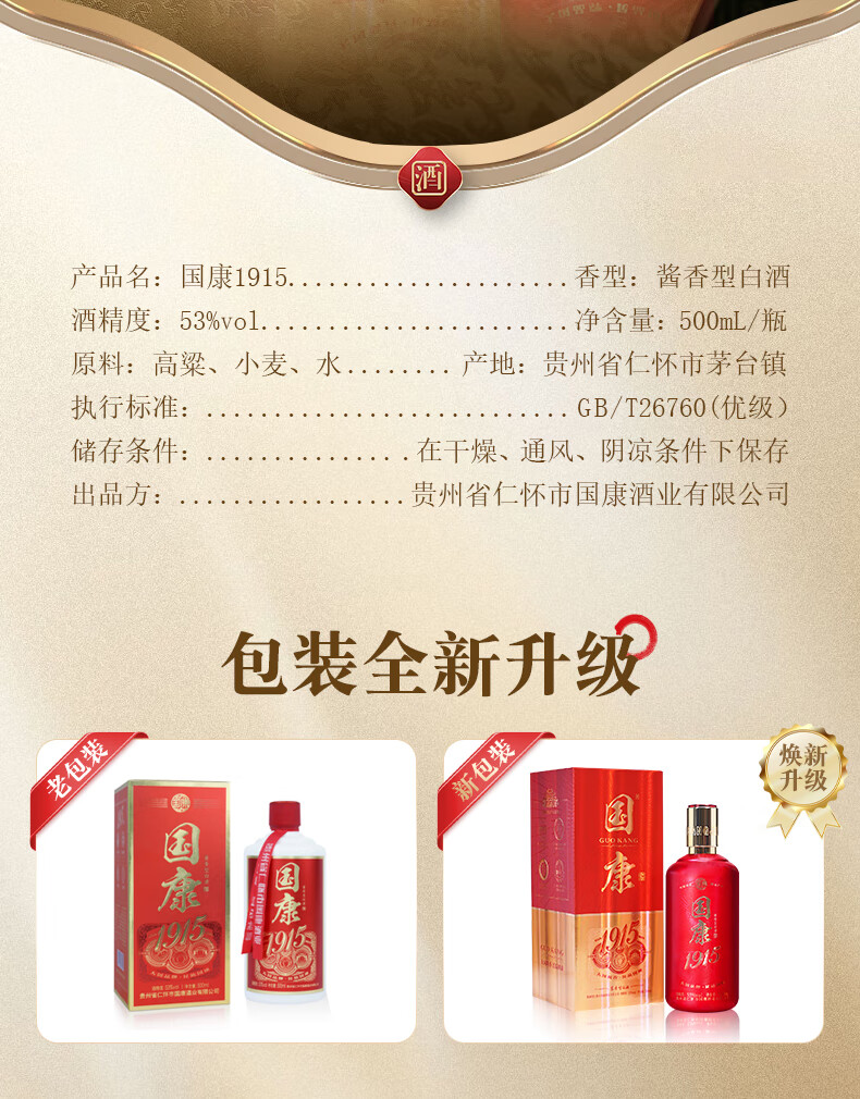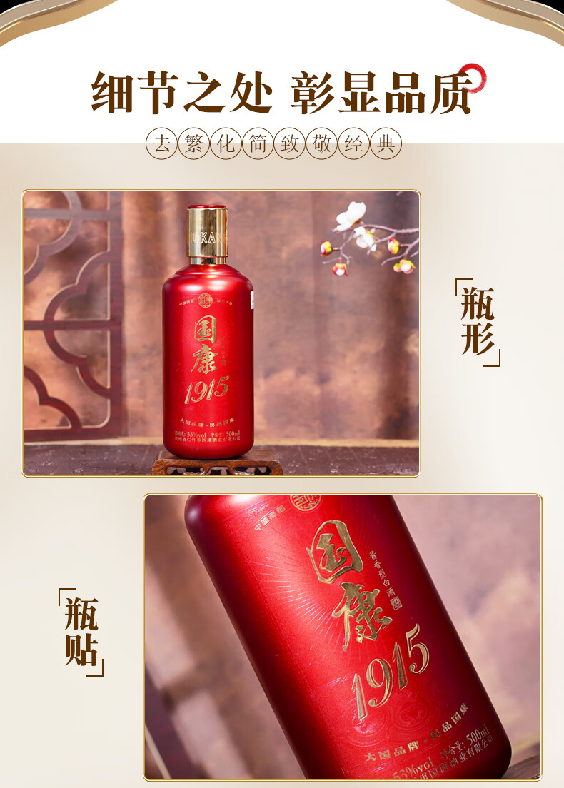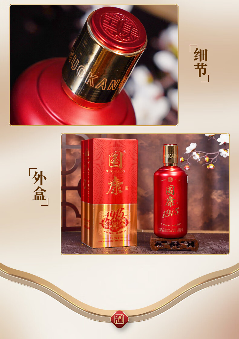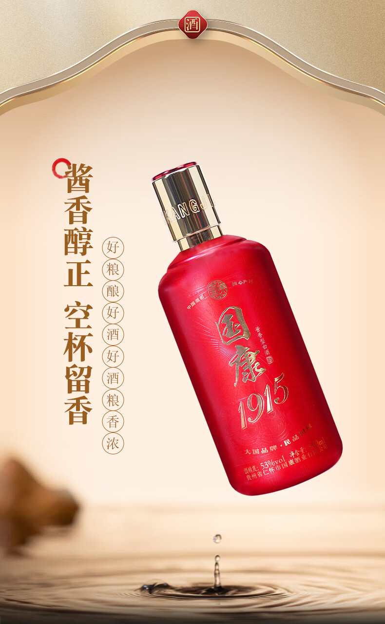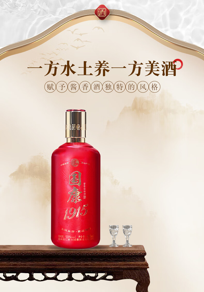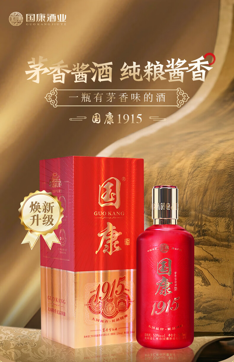 国康【国康1915】经典款酱香型白酒 十年坤沙老酒 酒厂直营 53度 500mL 2瓶