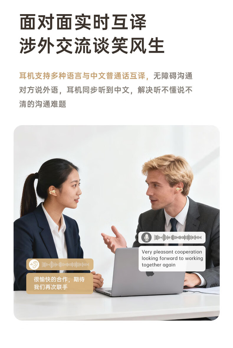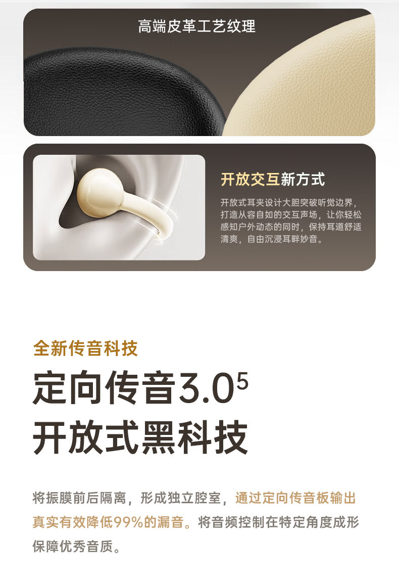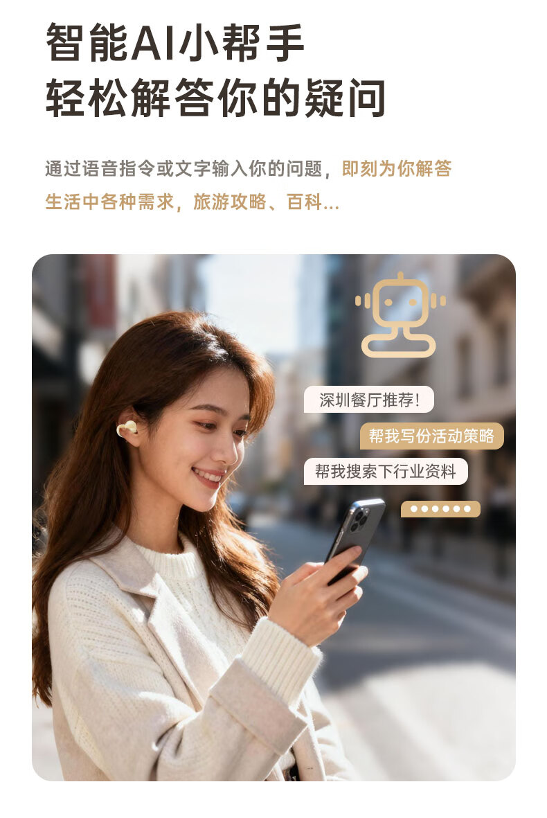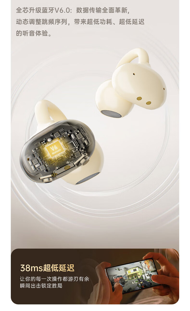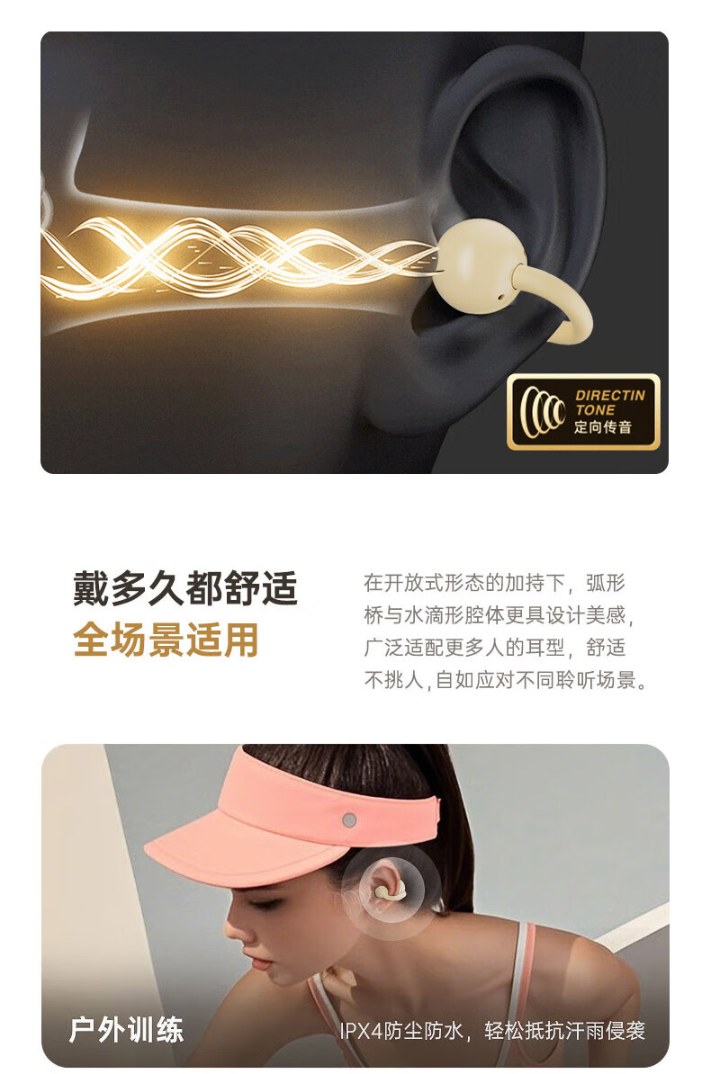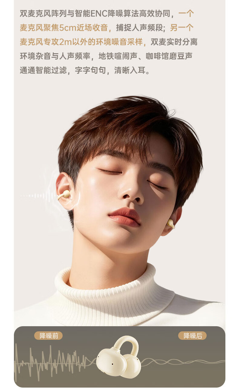 WIWU【超级AI同声传译】小云朵耳夹式蓝牙耳机降噪运动夹耳式耳机不入耳开放式骨传导概念适用苹果安卓 米白色【超级AI同声传译+皮革纹理设计】