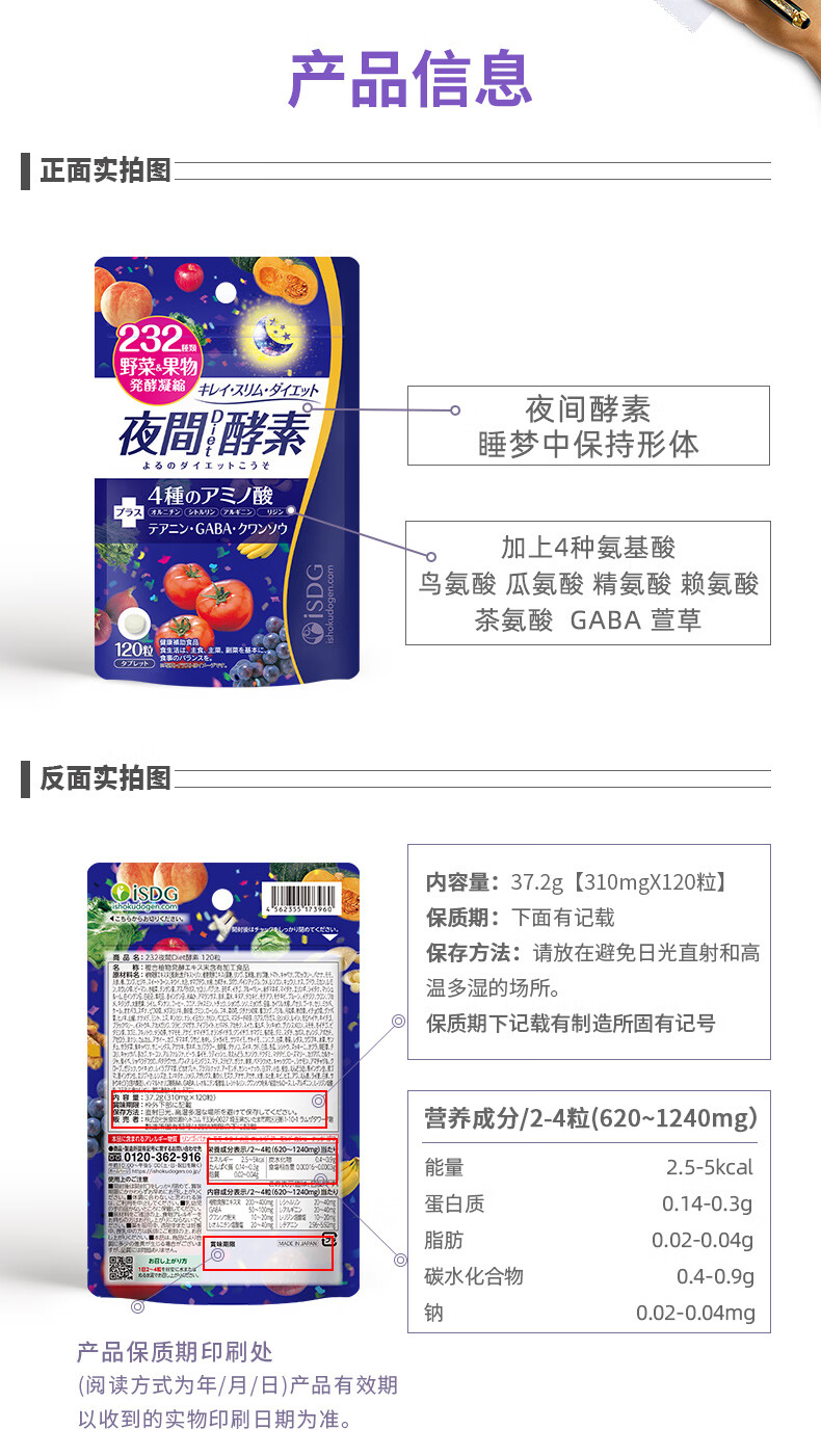 ISDG日本进口232种果蔬酵素 夜间diet黄金爽快酵素吸油嗨吃酵素 夜间酵素 120粒*1袋