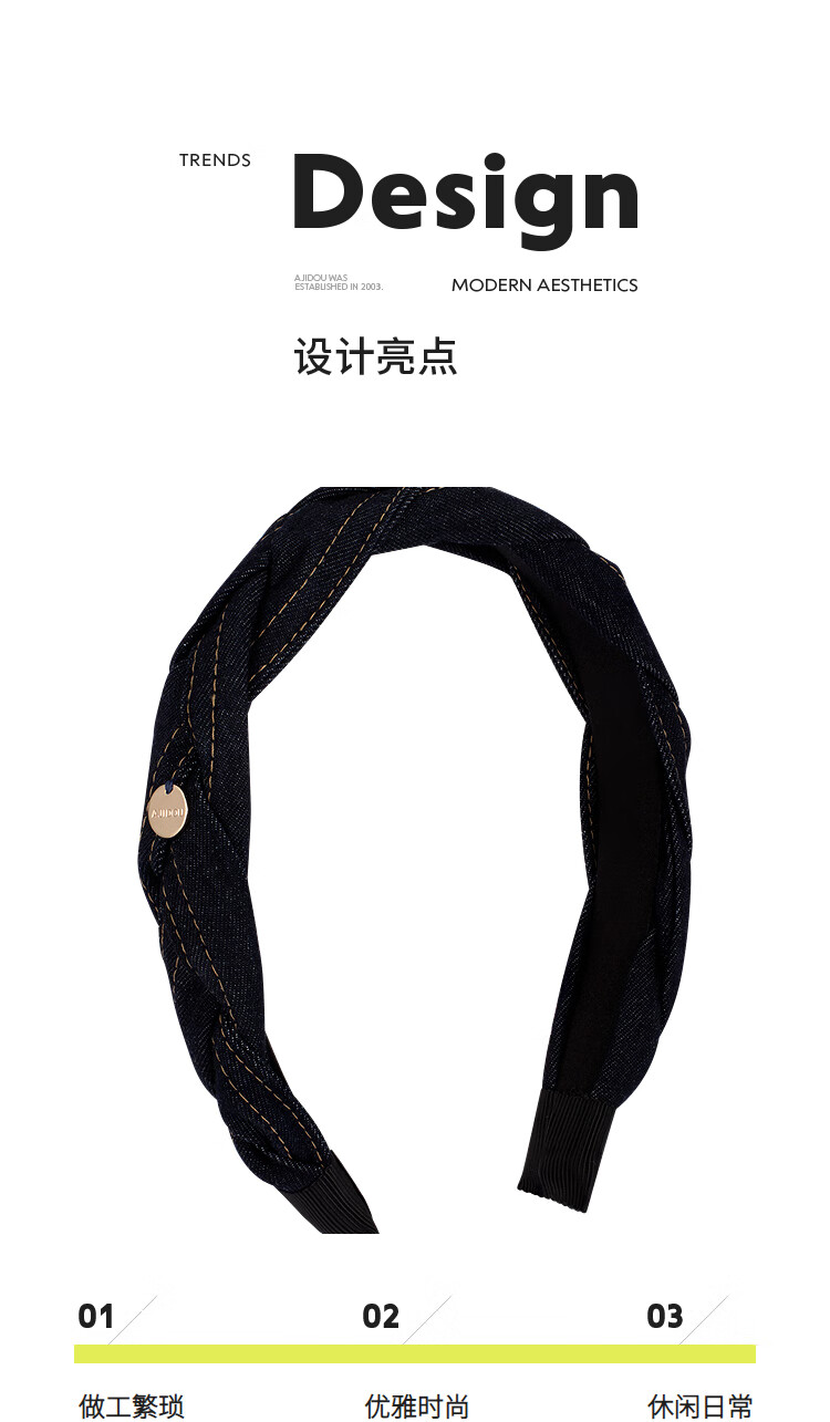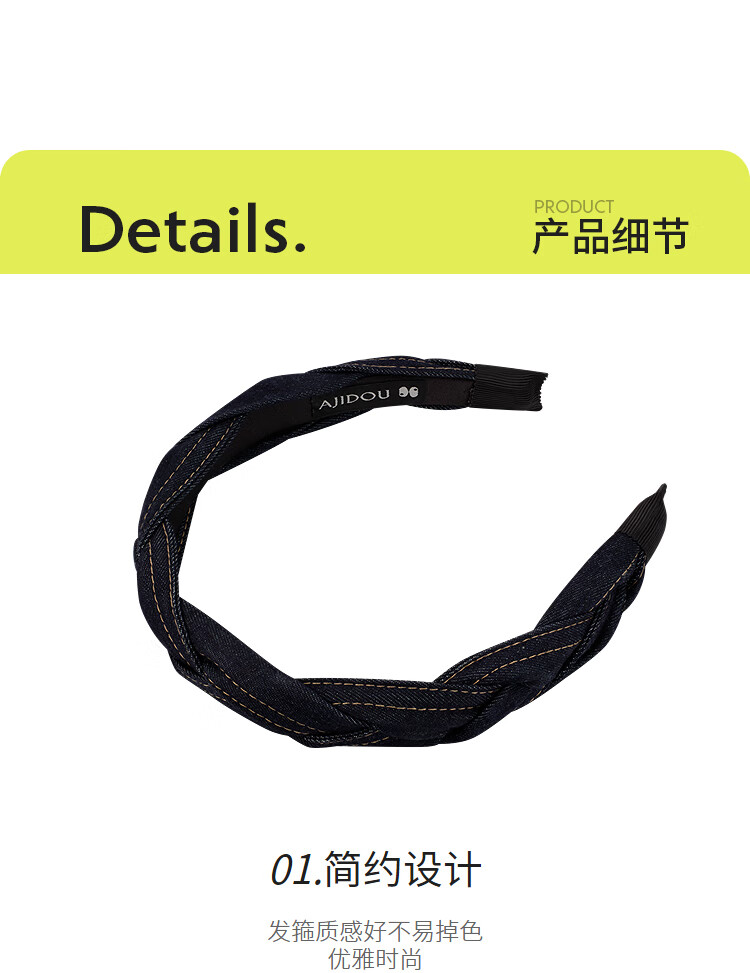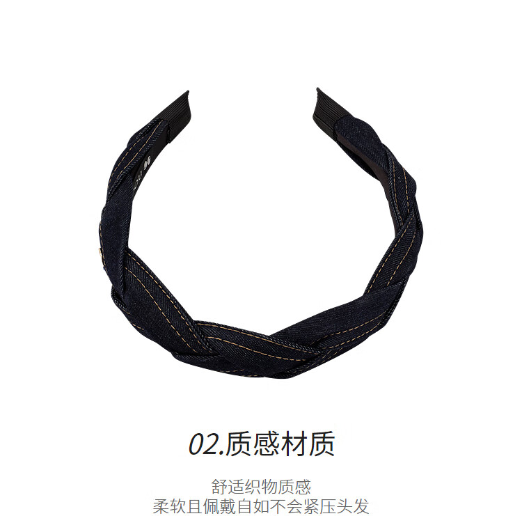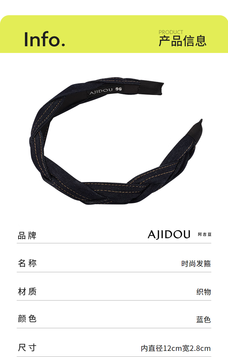 AJIDOU阿吉豆头箍时尚简约休闲气质牛仔蓝发箍生日礼物送女友老婆 蓝色 1个