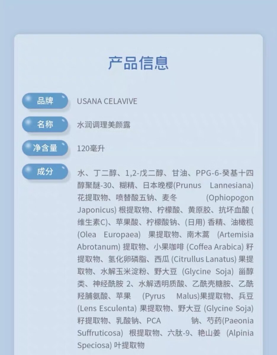 葆婴优莎纳USANA葆婴CELAVIVE水润调理美颜露爽肤水120ml