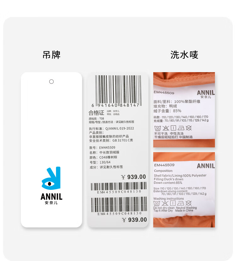 安奈儿(Annil)童装男女童中长款羽绒服2024冬新款 橡树棕 160