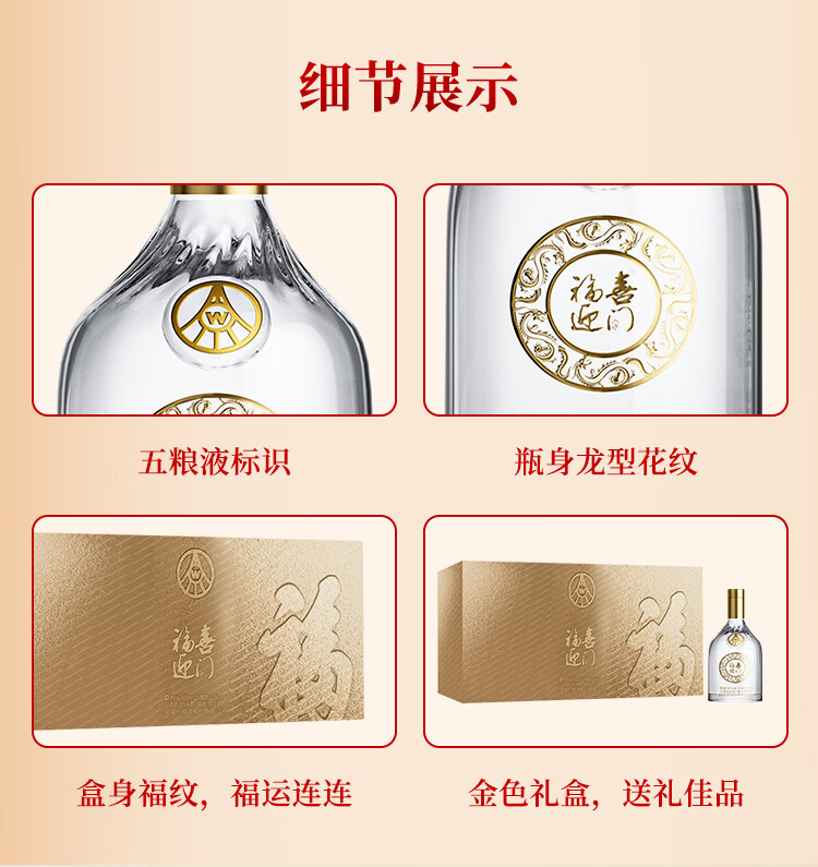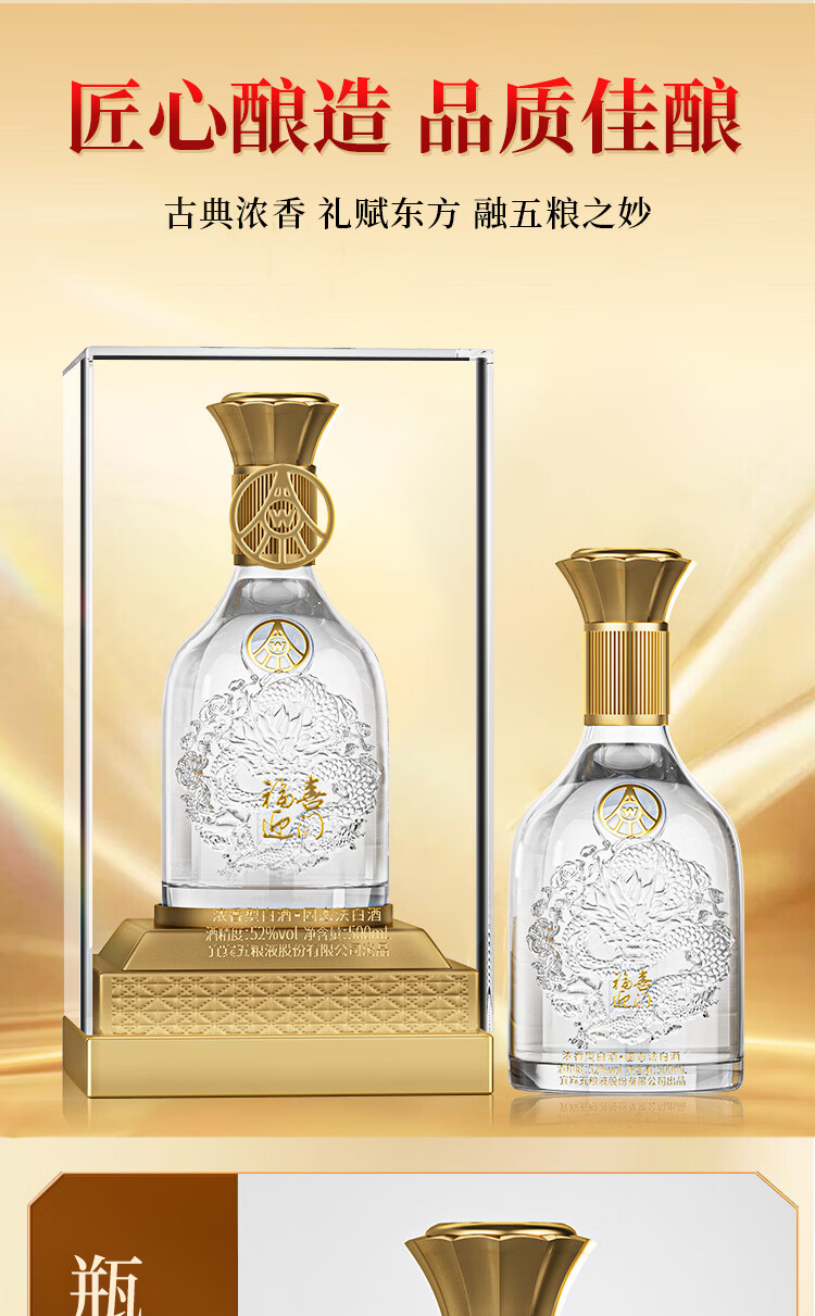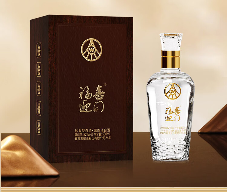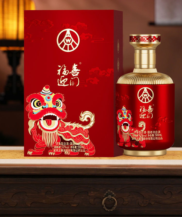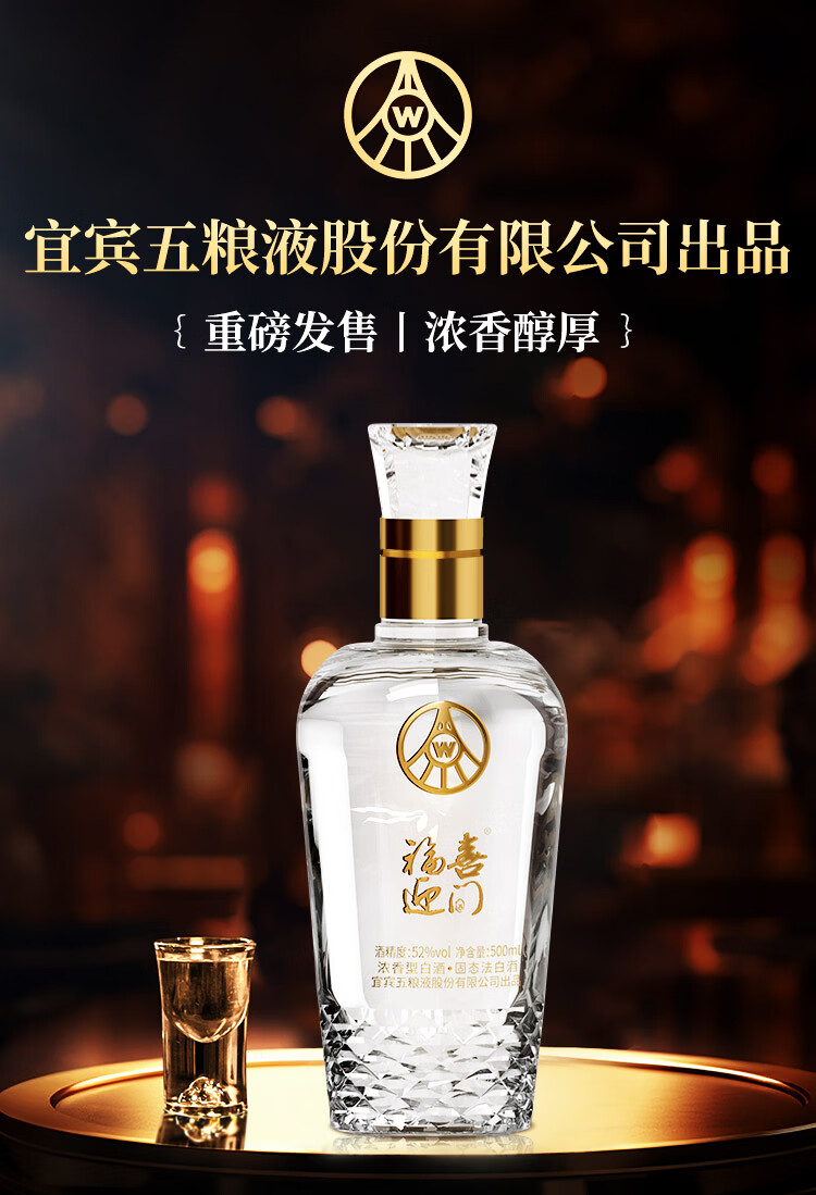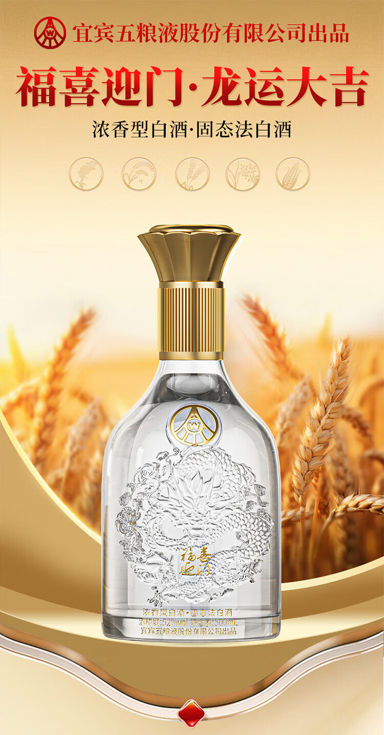 五粮浓香型【五粮液出品】 福喜迎门 高度白酒 送礼宴饮 52度 500mL 2瓶 水晶龙双瓶装