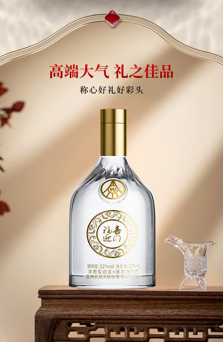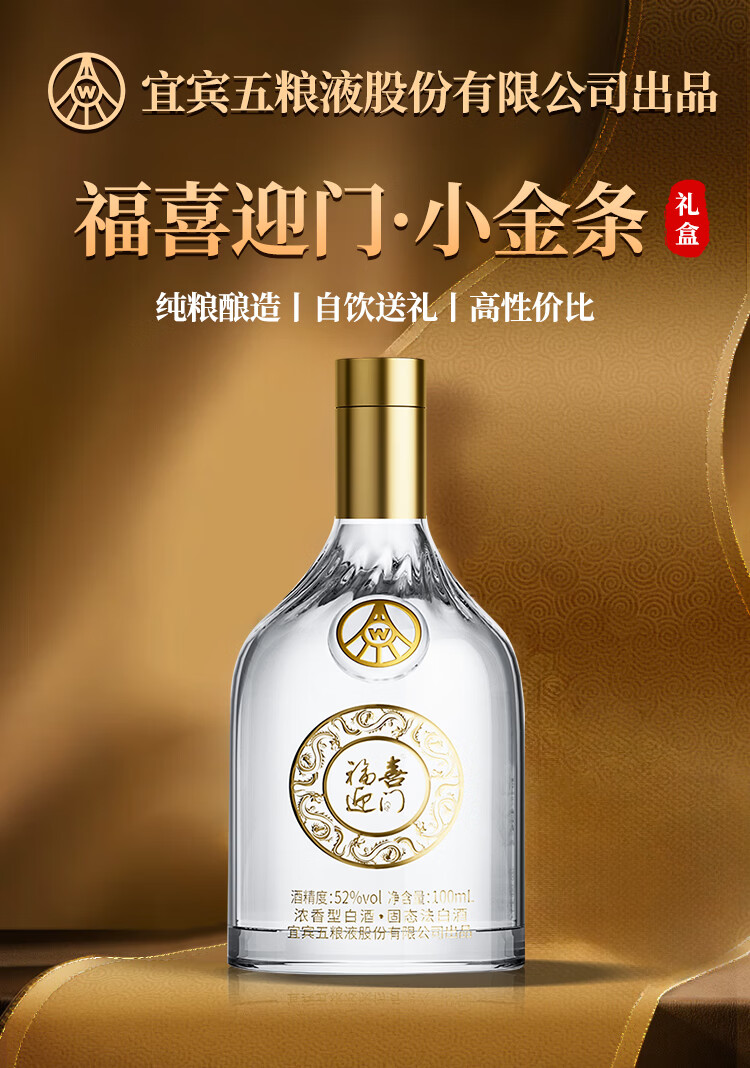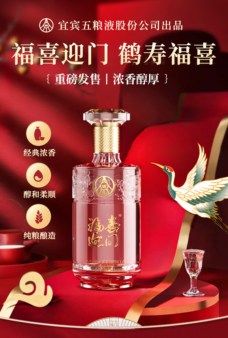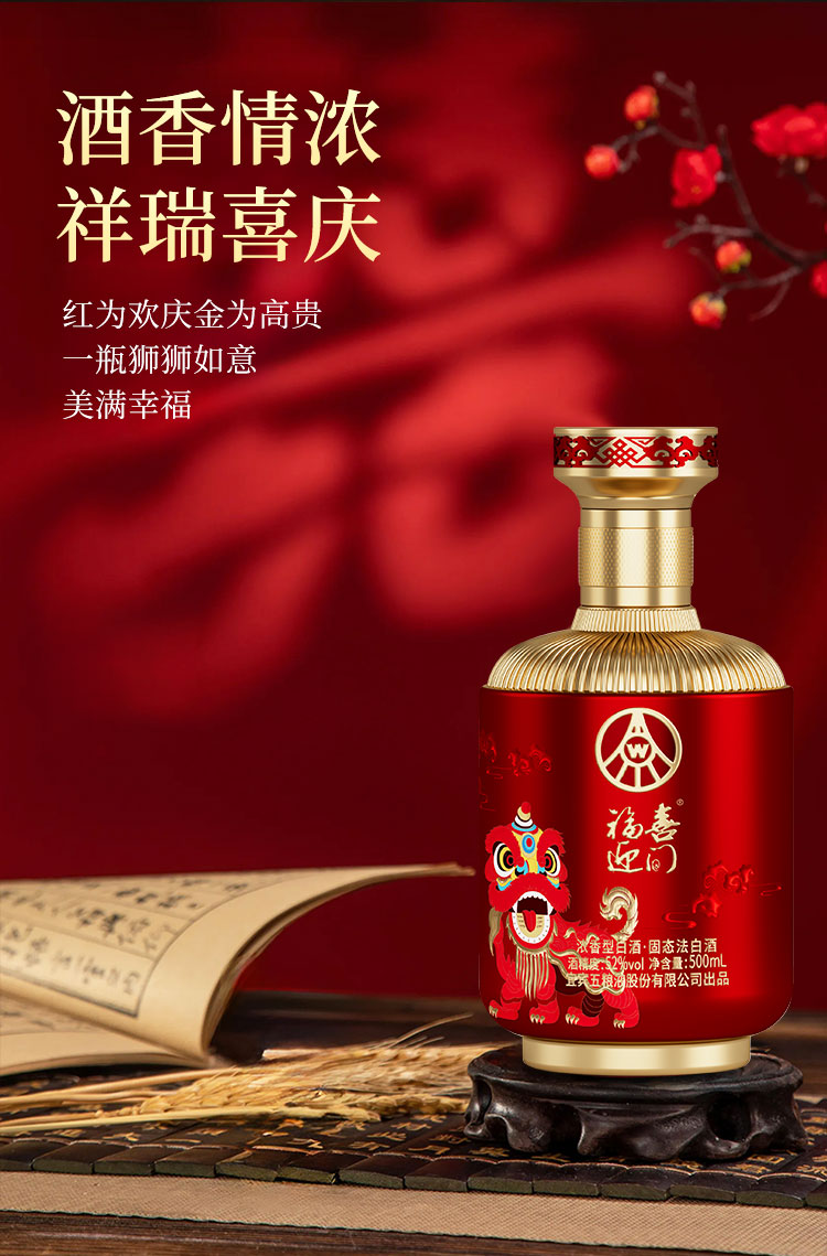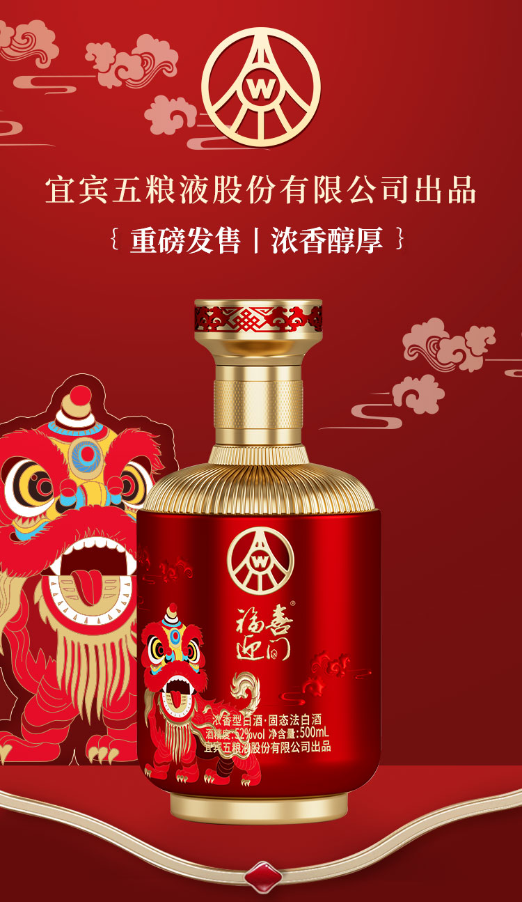 五粮浓香型【五粮液出品】 福喜迎门 高度白酒 送礼宴饮 52度 500mL 2瓶 水晶龙双瓶装