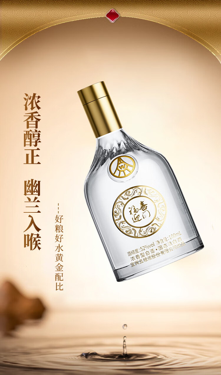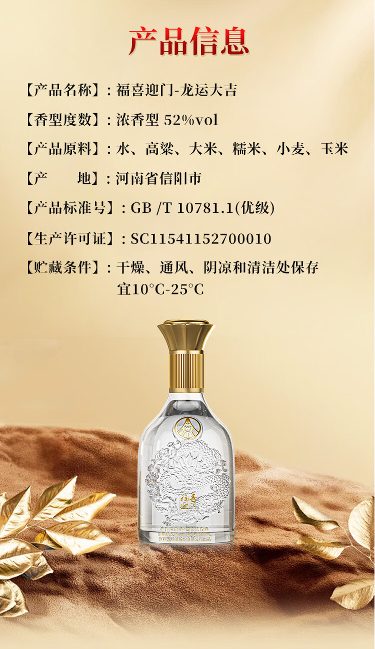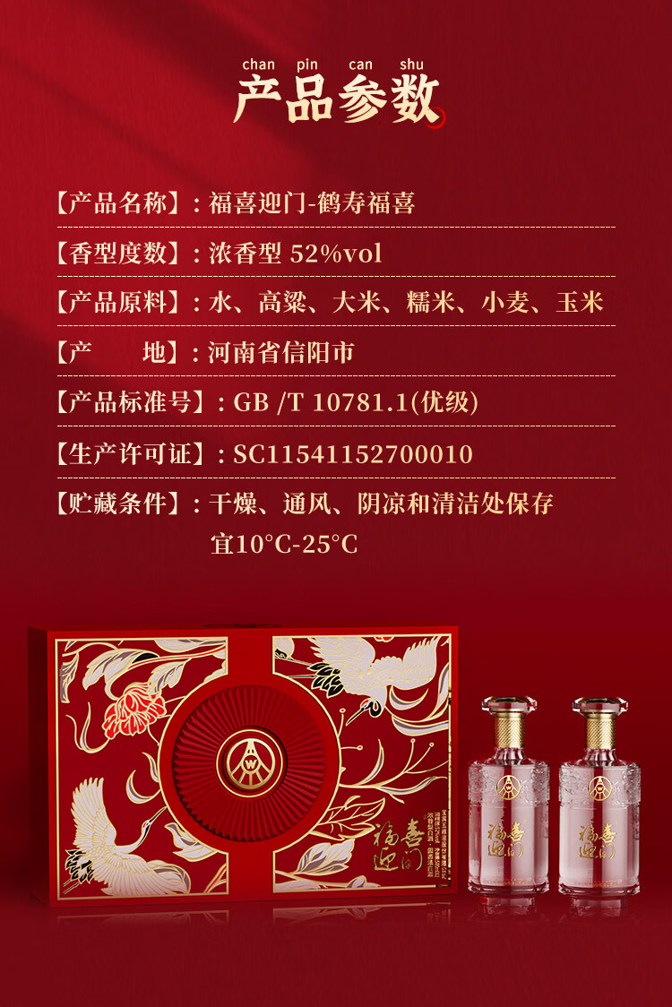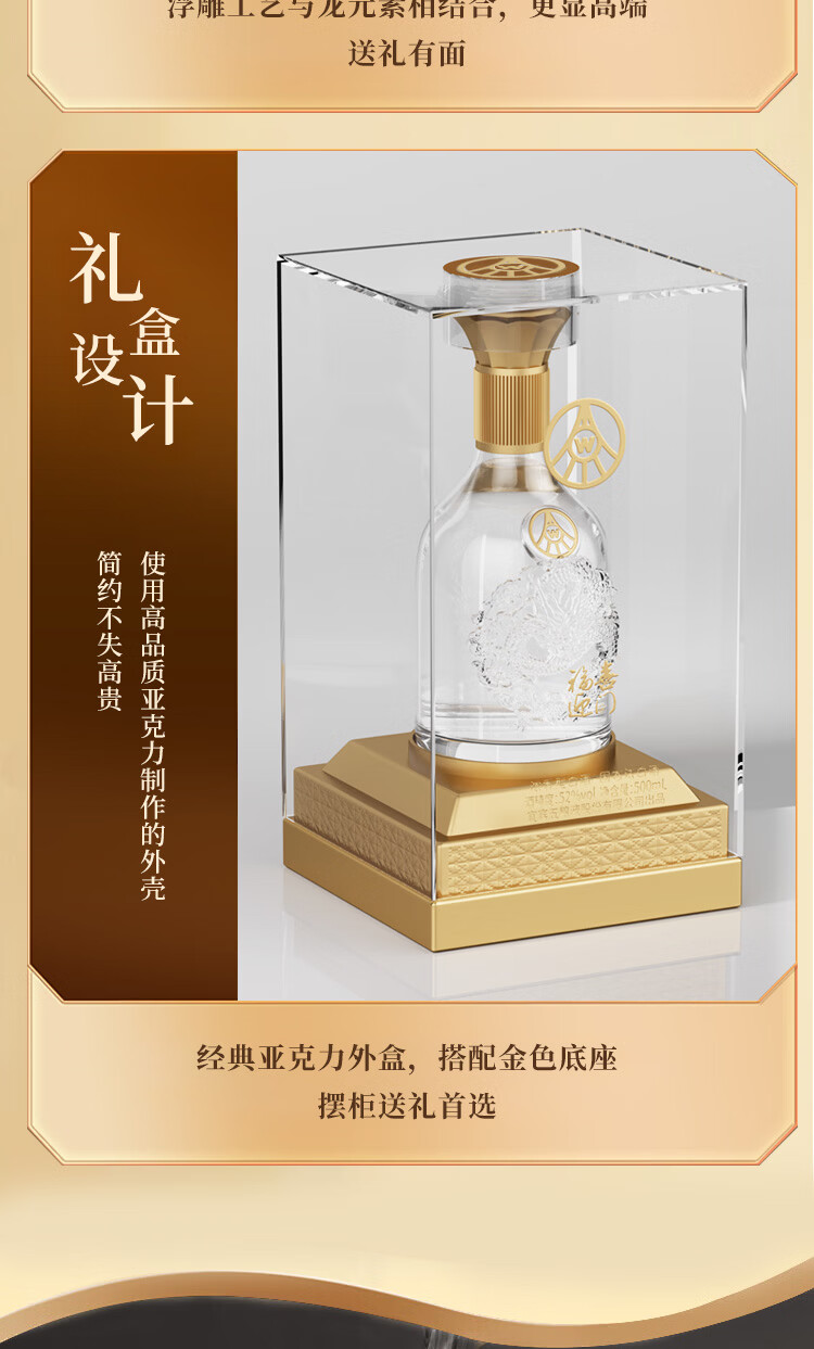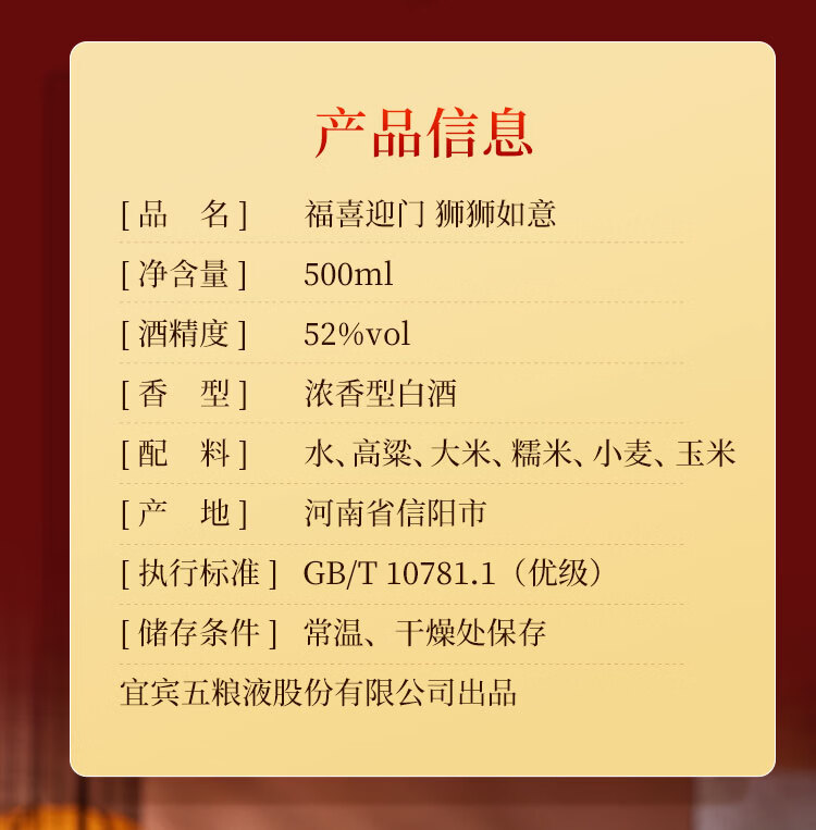 五粮浓香型【五粮液出品】 福喜迎门 高度白酒 送礼宴饮 52度 500mL 2瓶 水晶龙双瓶装