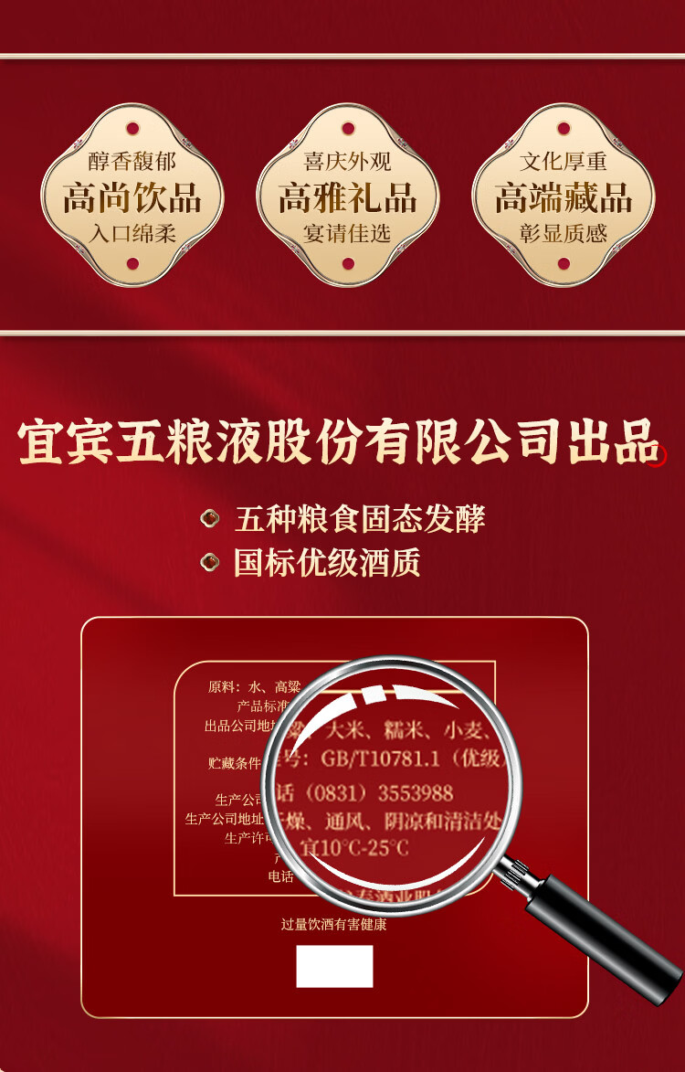 五粮浓香五粮液股份出品 官方授权 52度优级 浓香型白酒 喜福盛世 52度 500mL 2瓶 礼盒装(内含酒具)