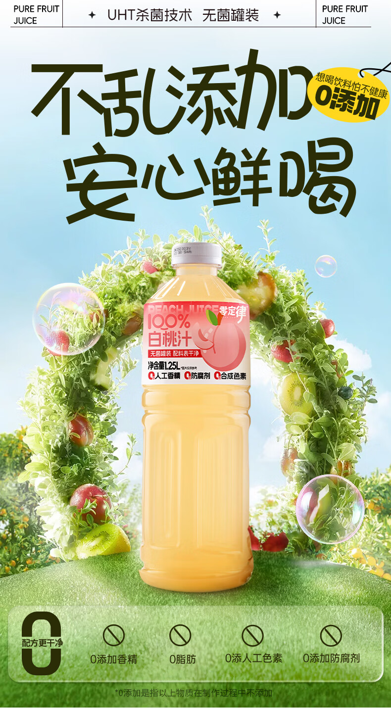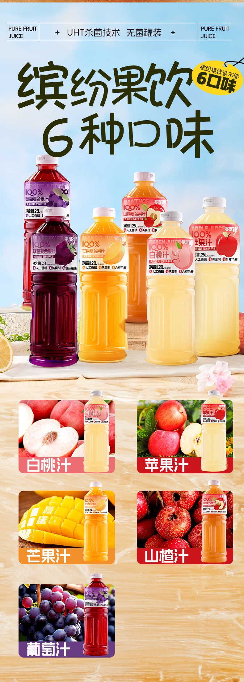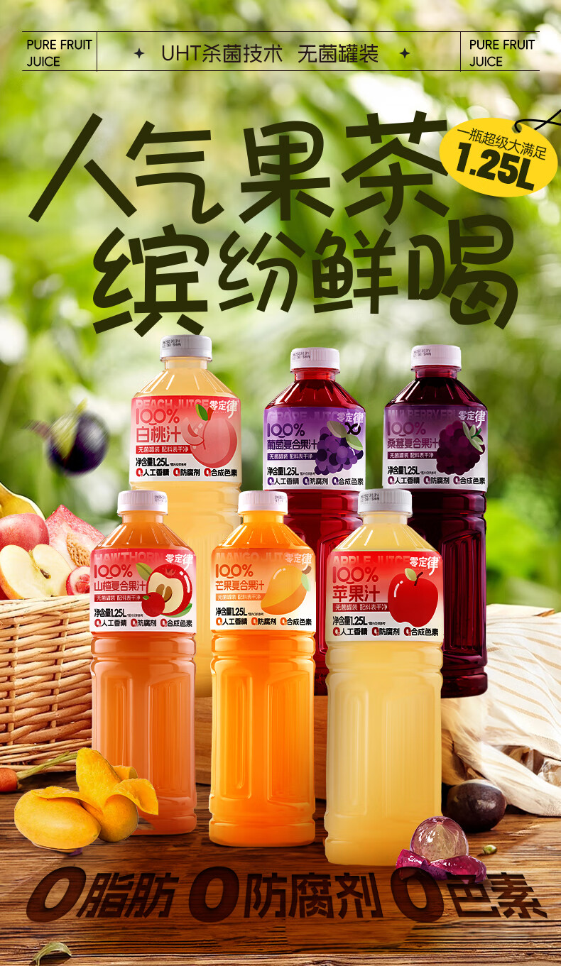 零定律100%果汁含量苹果汁芒果葡萄蜜桃桑葚1.25L大瓶装聚会饮料好果汁 【组合装】葡萄汁+芒果汁