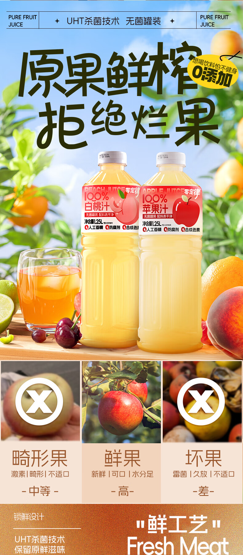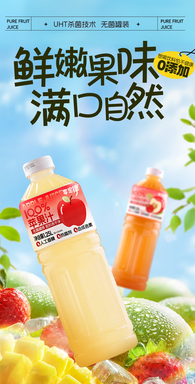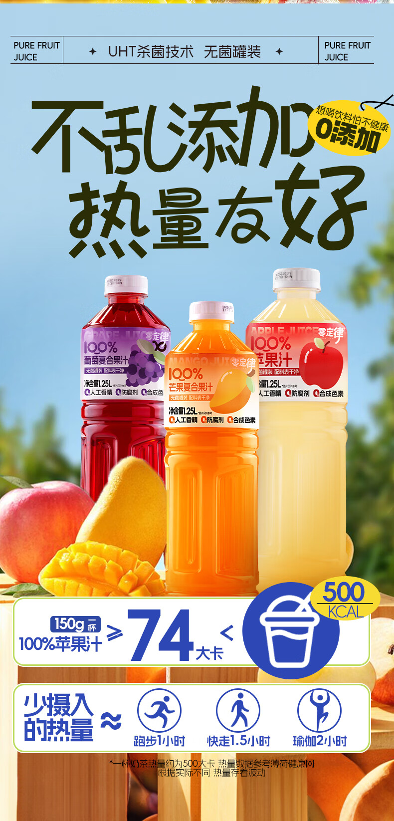零定律100%果汁含量苹果汁芒果葡萄蜜桃桑葚1.25L大瓶装聚会饮料好果汁 【组合装】葡萄汁+芒果汁
