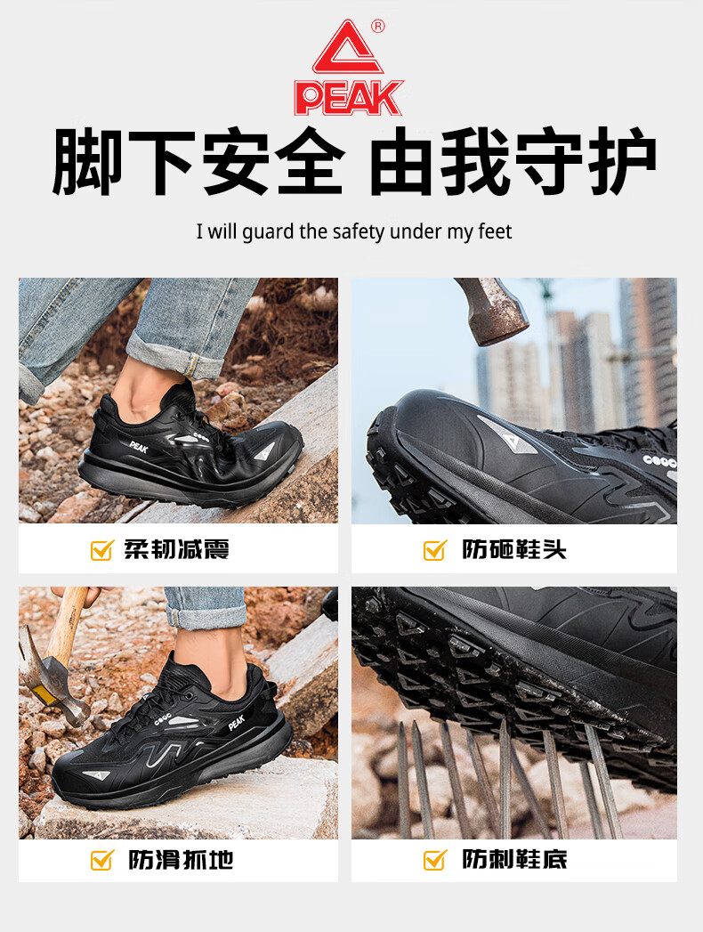 匹克安全鞋户外工厂防砸鞋物流专用鞋工地专用鞋子户外劳保鞋 灰色【防砸防穿刺】 42