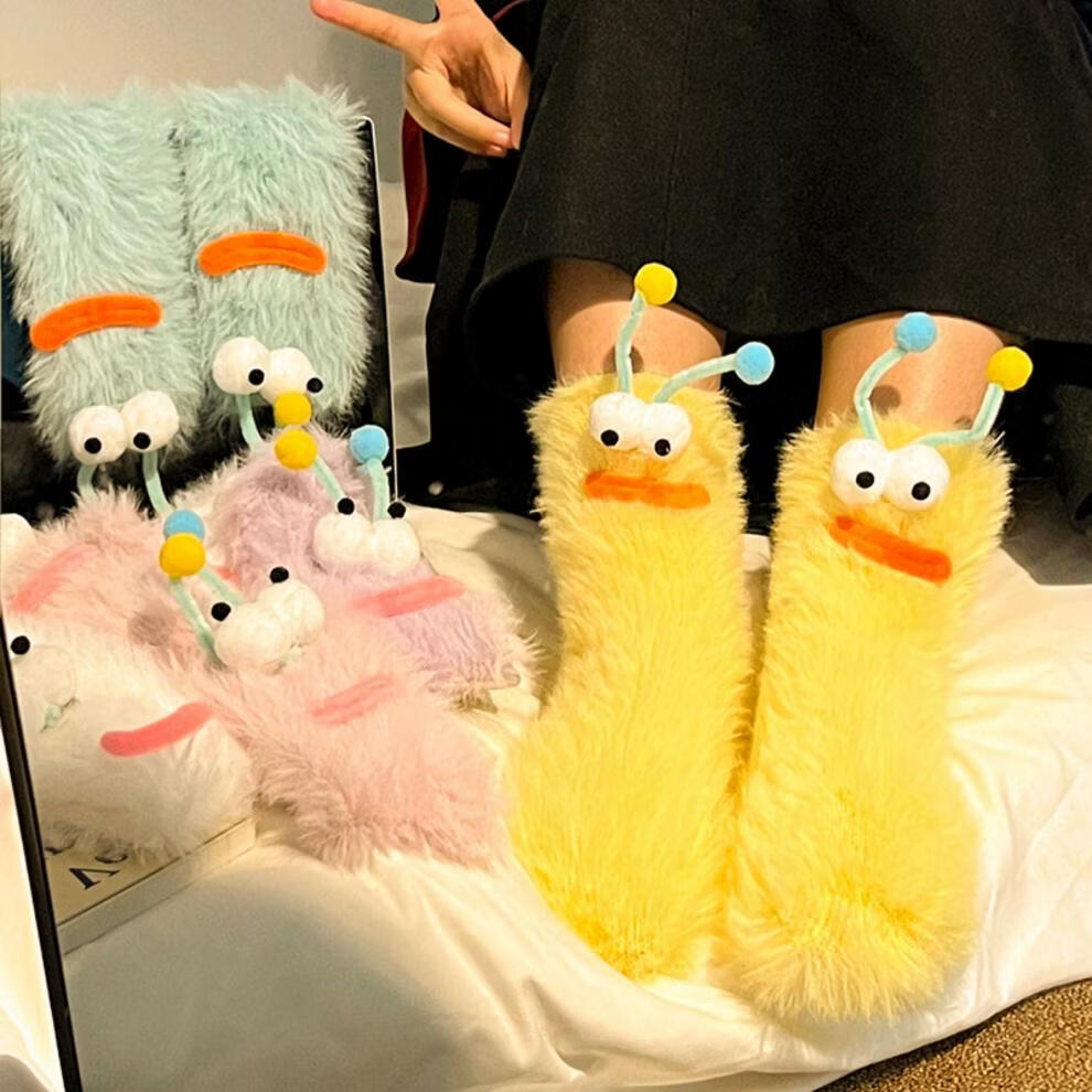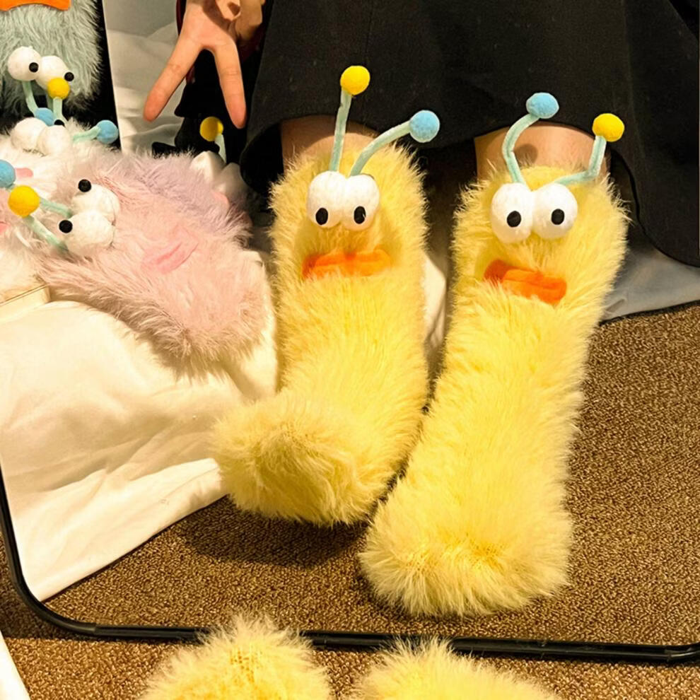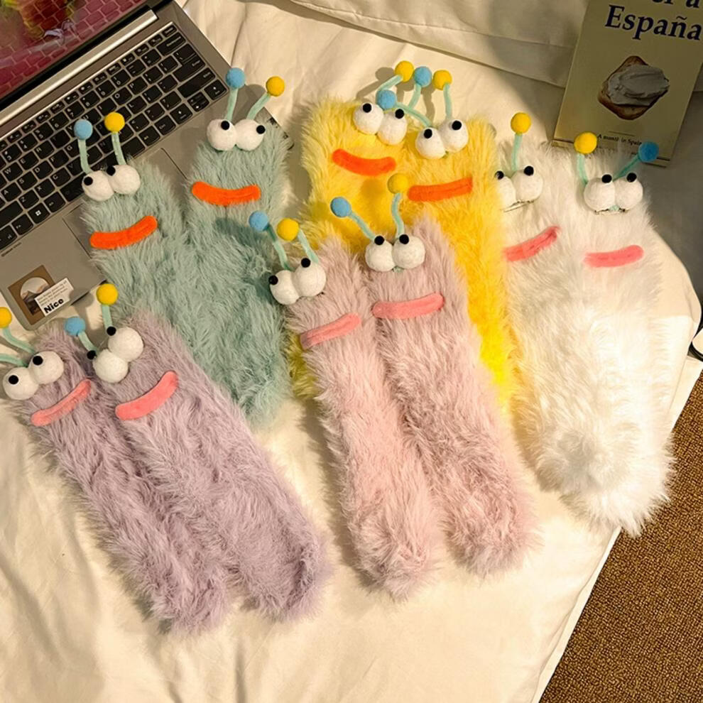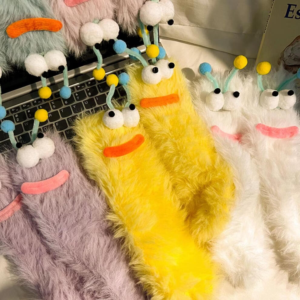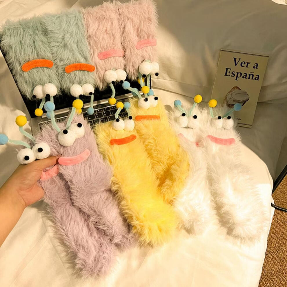 胖东来同款可爱居家丑萌毛绒地板袜搞怪情侣保暖加厚冬天珊瑚绒毛 丑萌大嘴袜【紫色】 均码 (34-40)