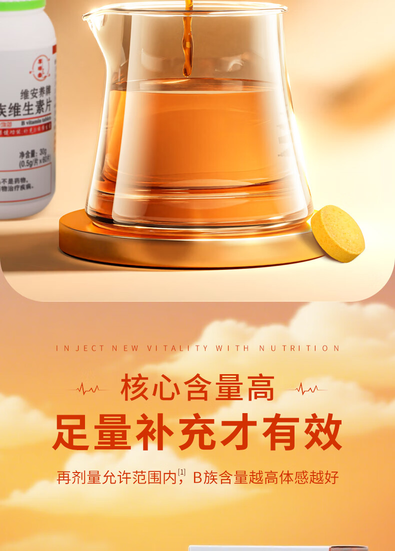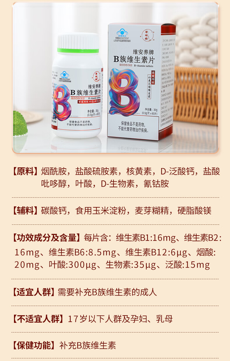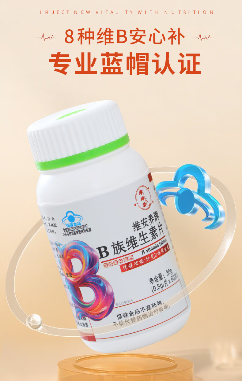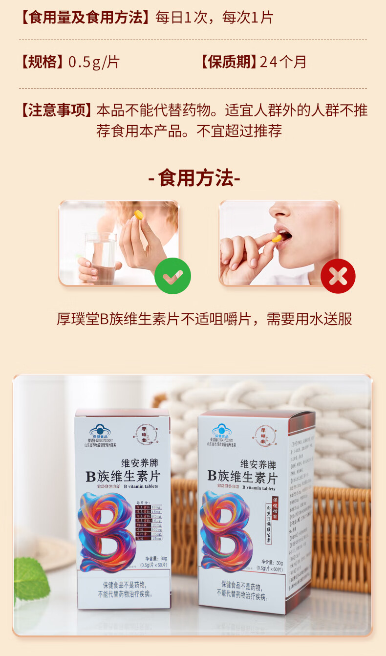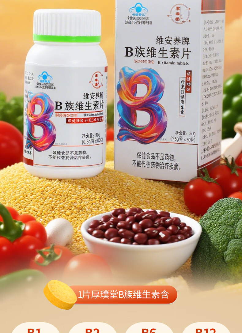 厚璞堂B族维生素片复合片多种vb烟酰胺叶酸生物素泛酸b1b2b6b12 1盒装