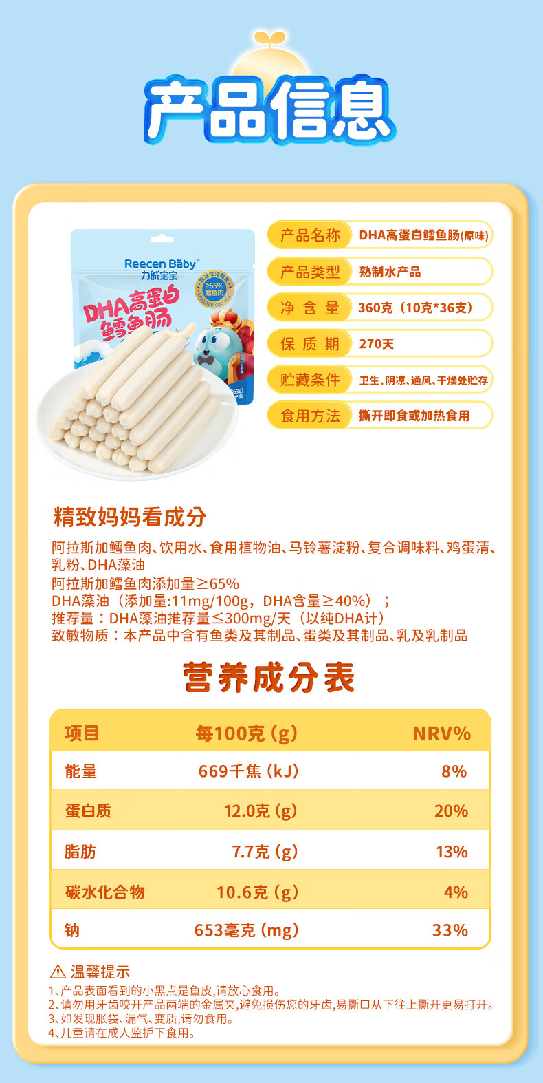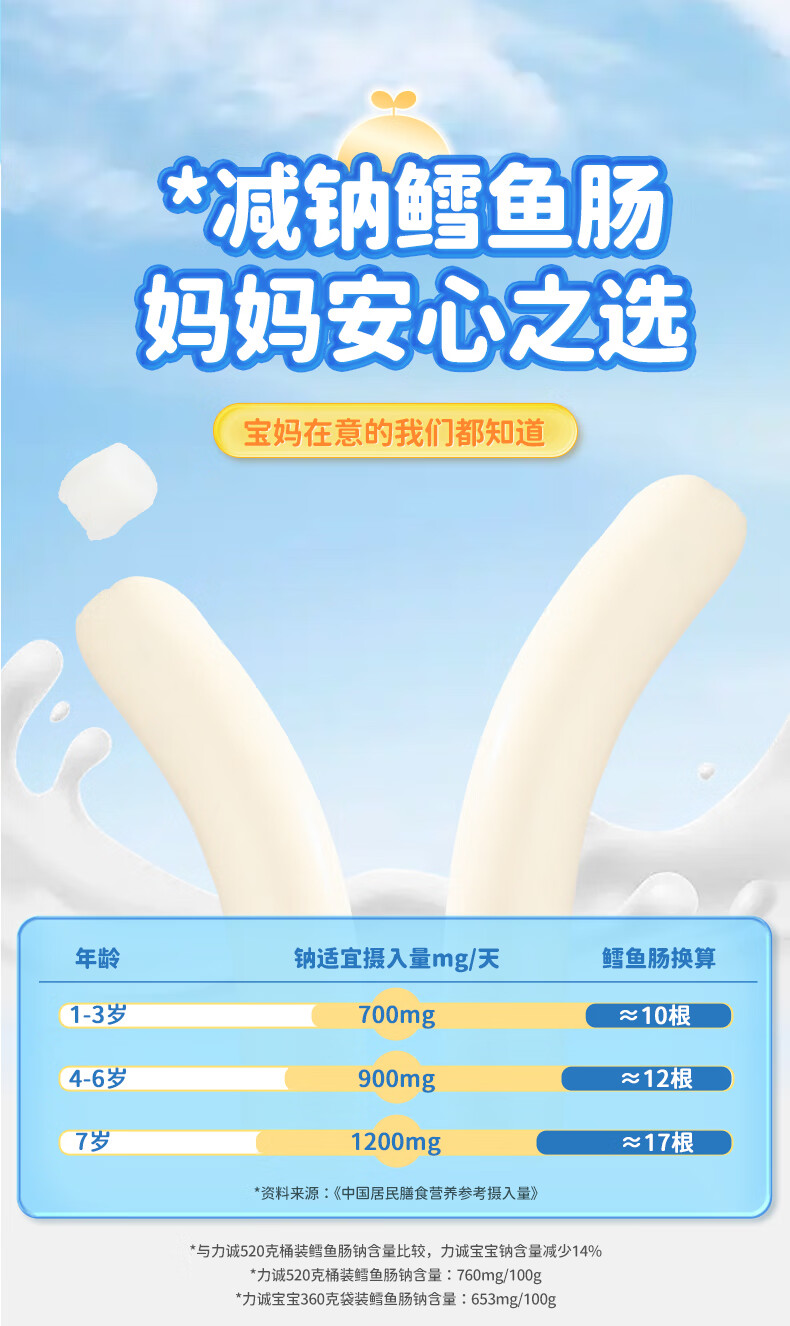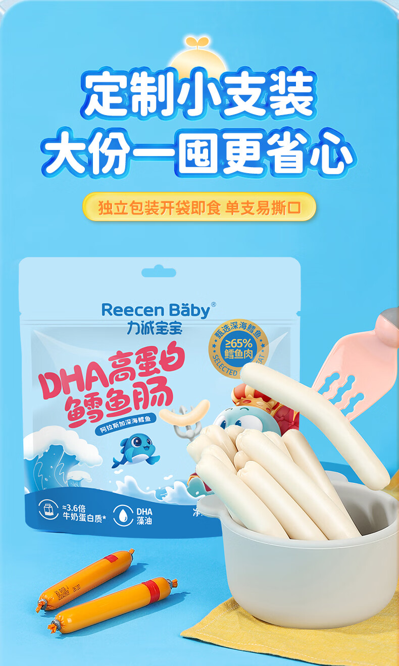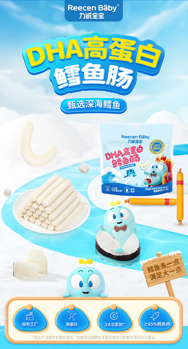 力诚宝宝深海鳕鱼肠儿童香肠火腿肠鱼肠营养高蛋白即食海味休闲零食 DHA高蛋白鳕鱼肠360g