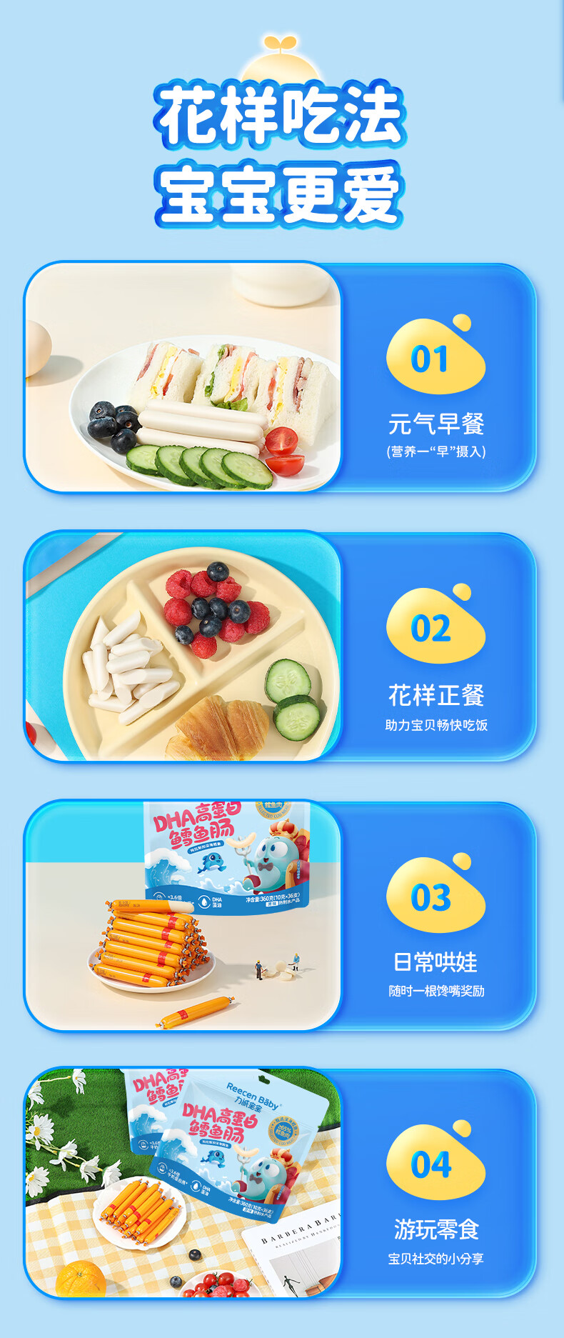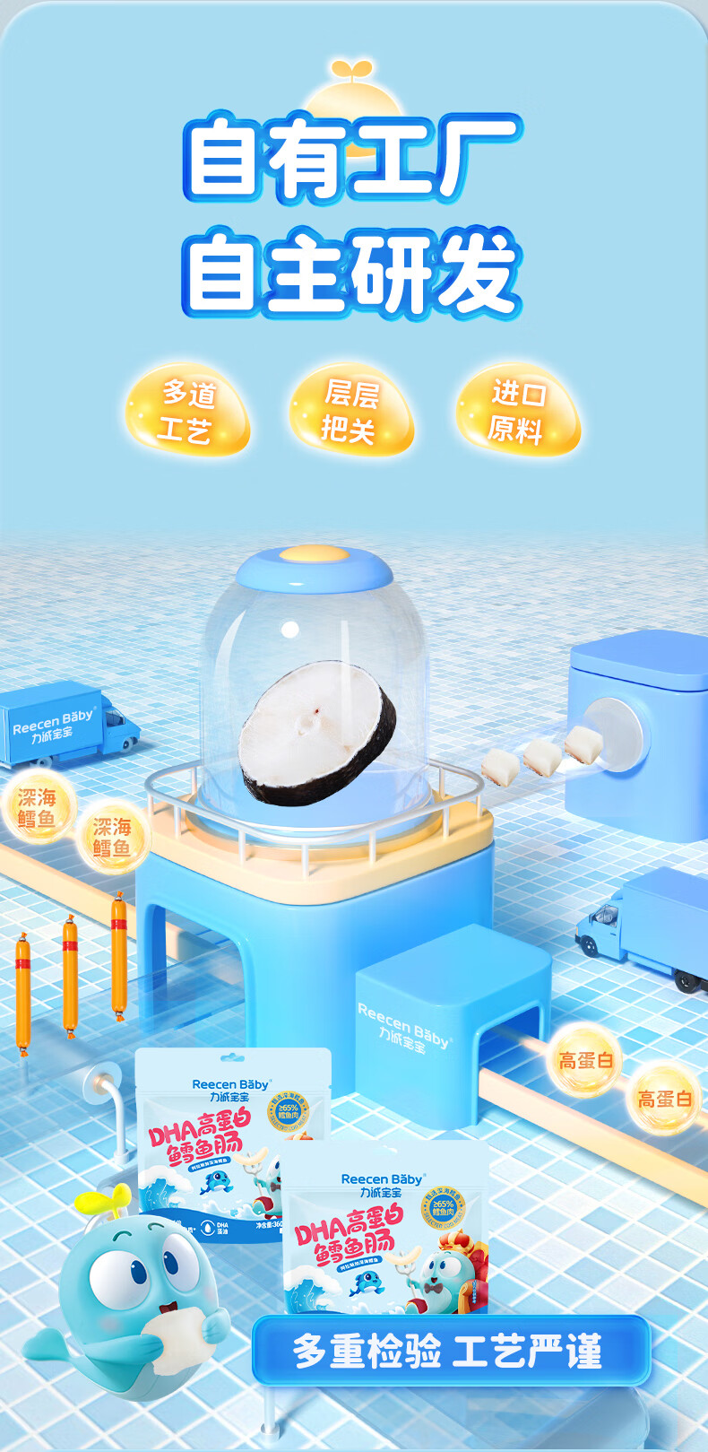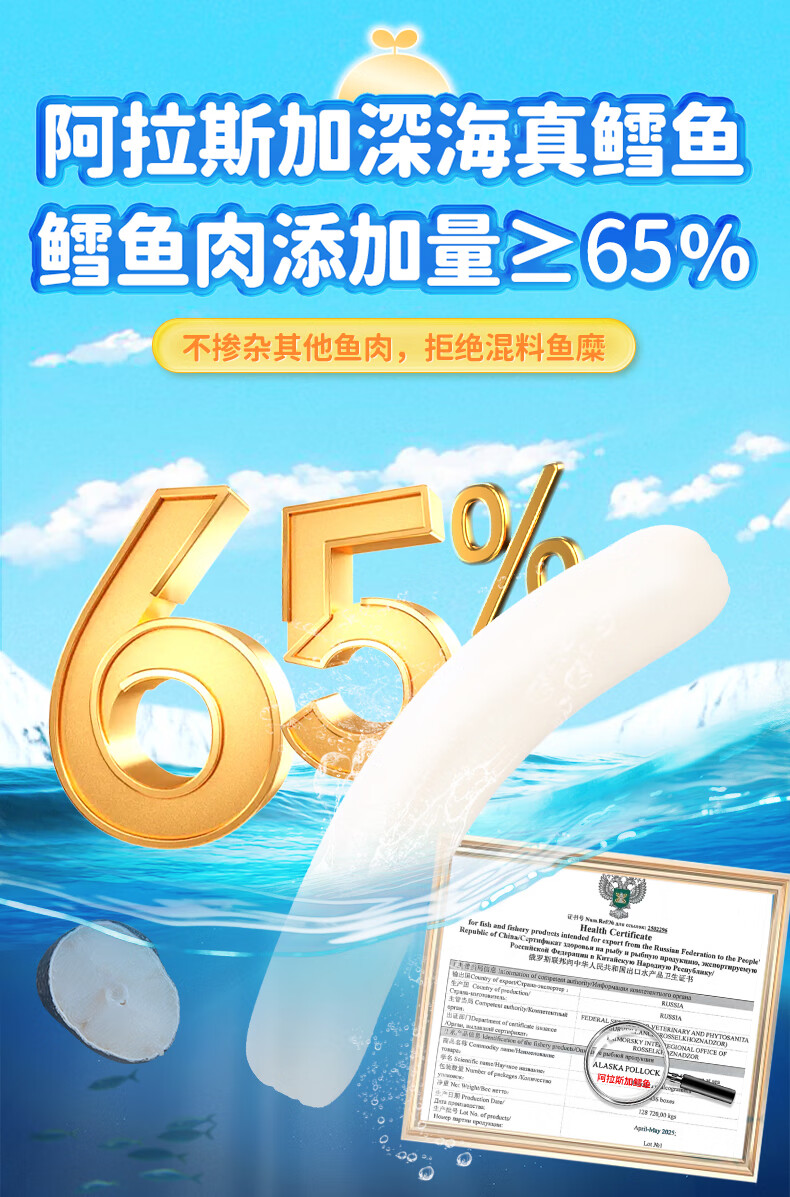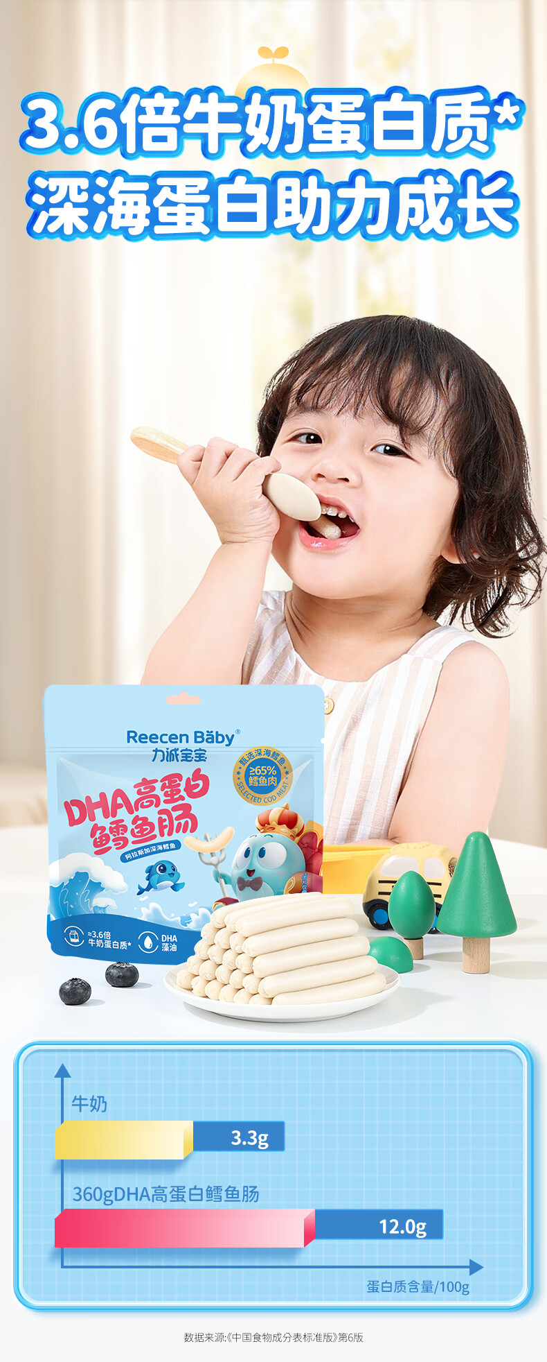 力诚宝宝深海鳕鱼肠儿童香肠火腿肠鱼肠营养高蛋白即食海味休闲零食 DHA高蛋白鳕鱼肠360g
