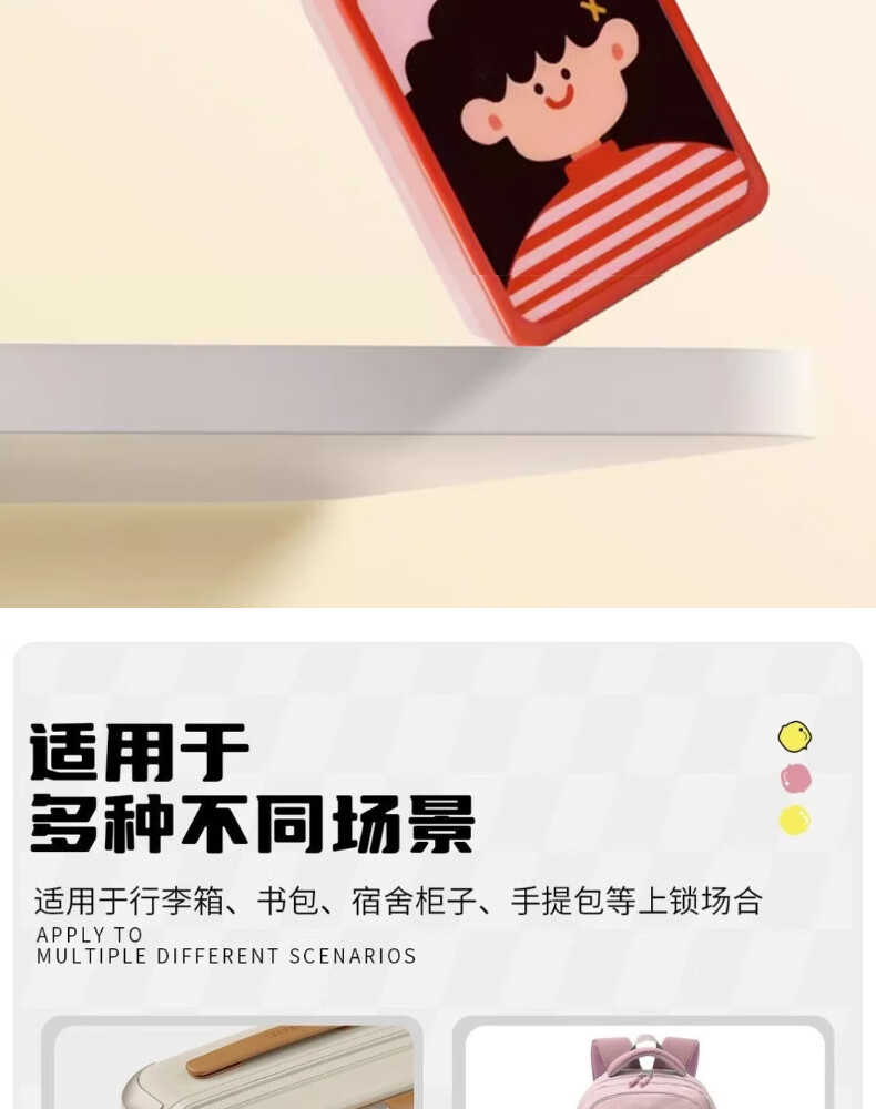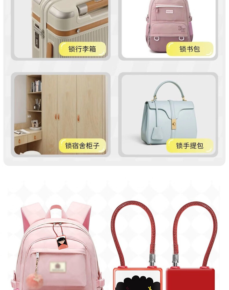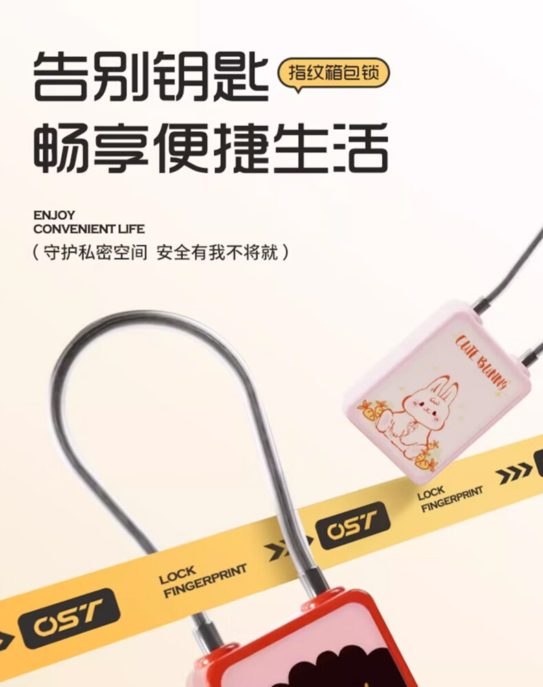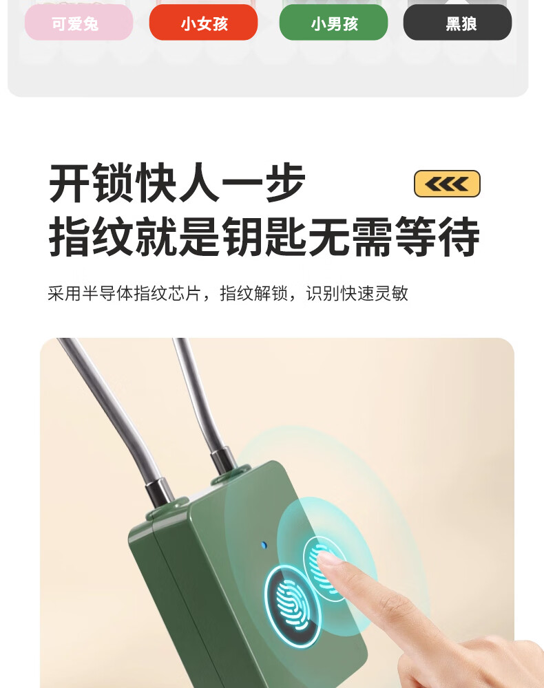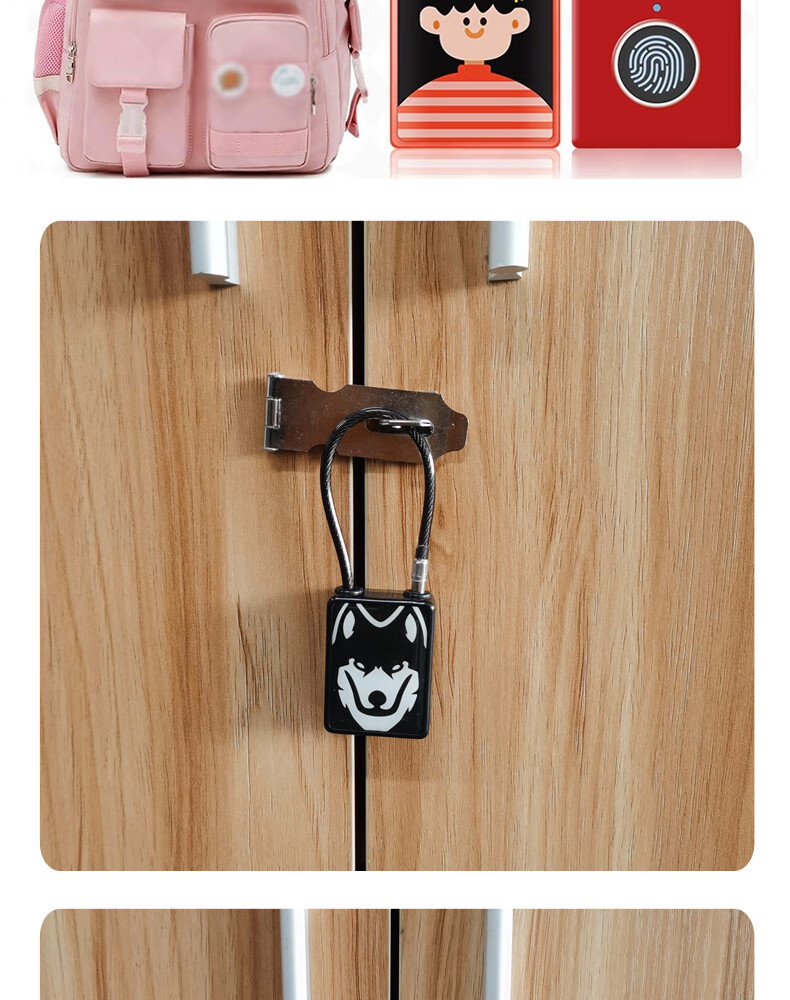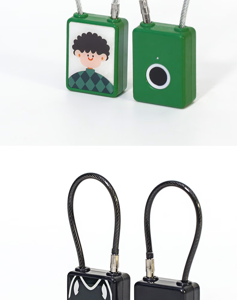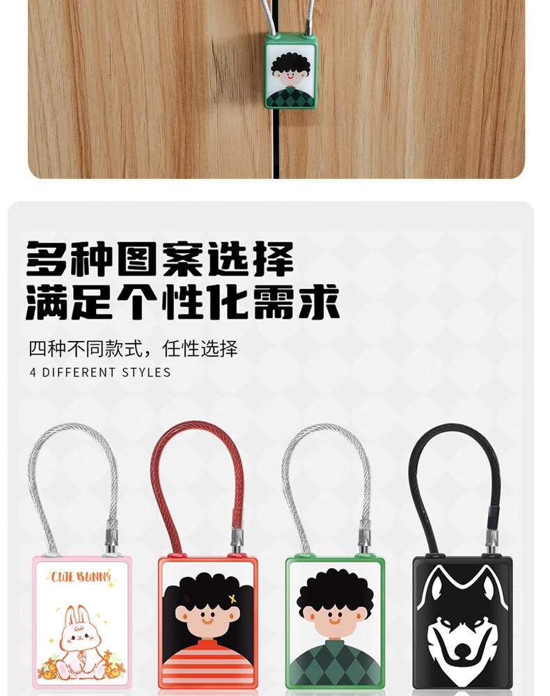 法雷斯顿 FALEISTON可爱卡通智能指纹挂锁钢丝绳箱包锁大学生宿舍柜子小锁寝室密码锁 指纹小挂锁(纯指纹)【黑狼图案】