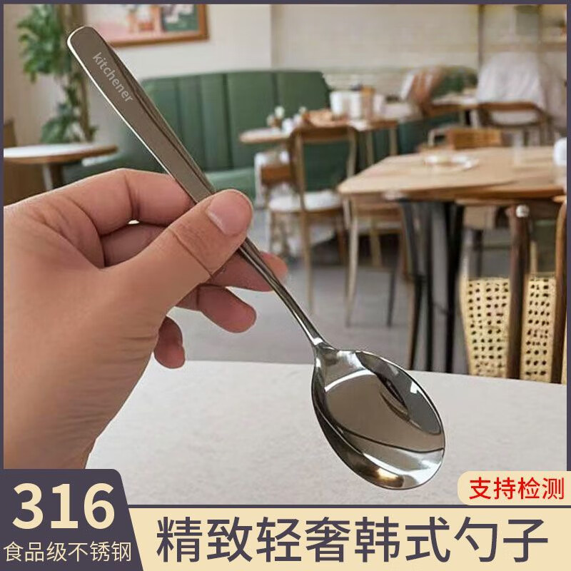 GIOIO316不锈钢勺子韩式家用汤匙网红吃饭创意食品级加厚长柄调羹 【316抗菌钢+支持检测】进口高品质钢 优雅韩式【5A镜面+抗菌级】1支