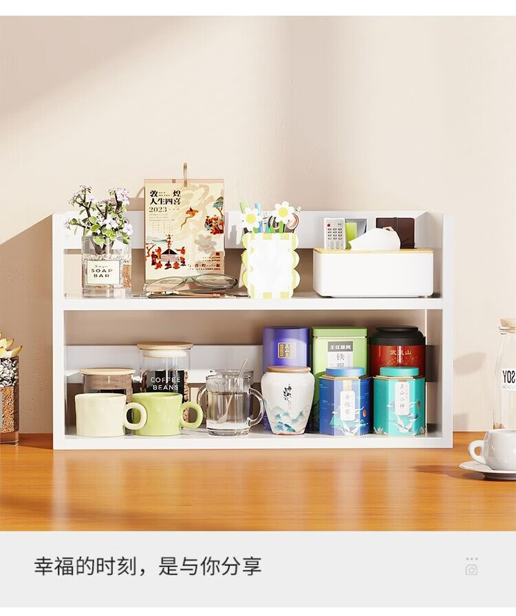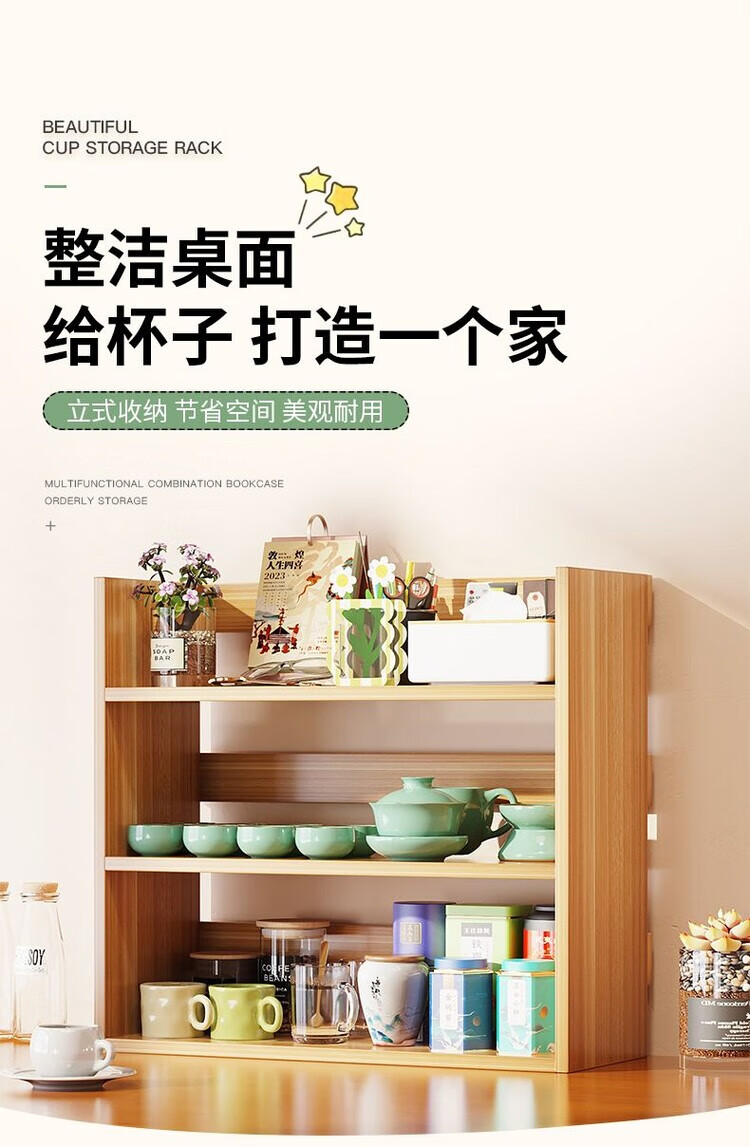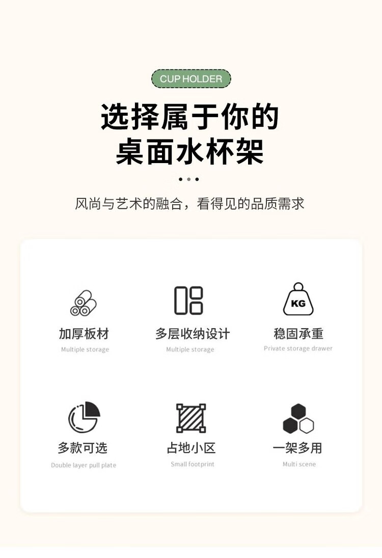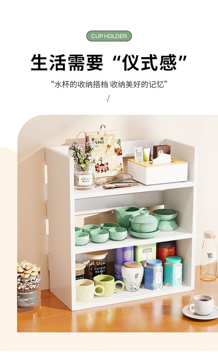 简漾桌面置物架杯子收纳架办公室杯架桌上多层水杯架子餐桌茶杯储物架 单层象牙白【总长32cm】