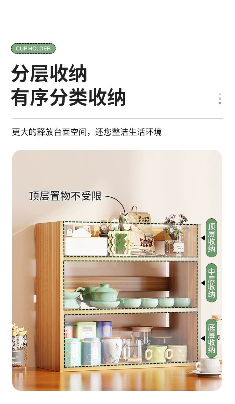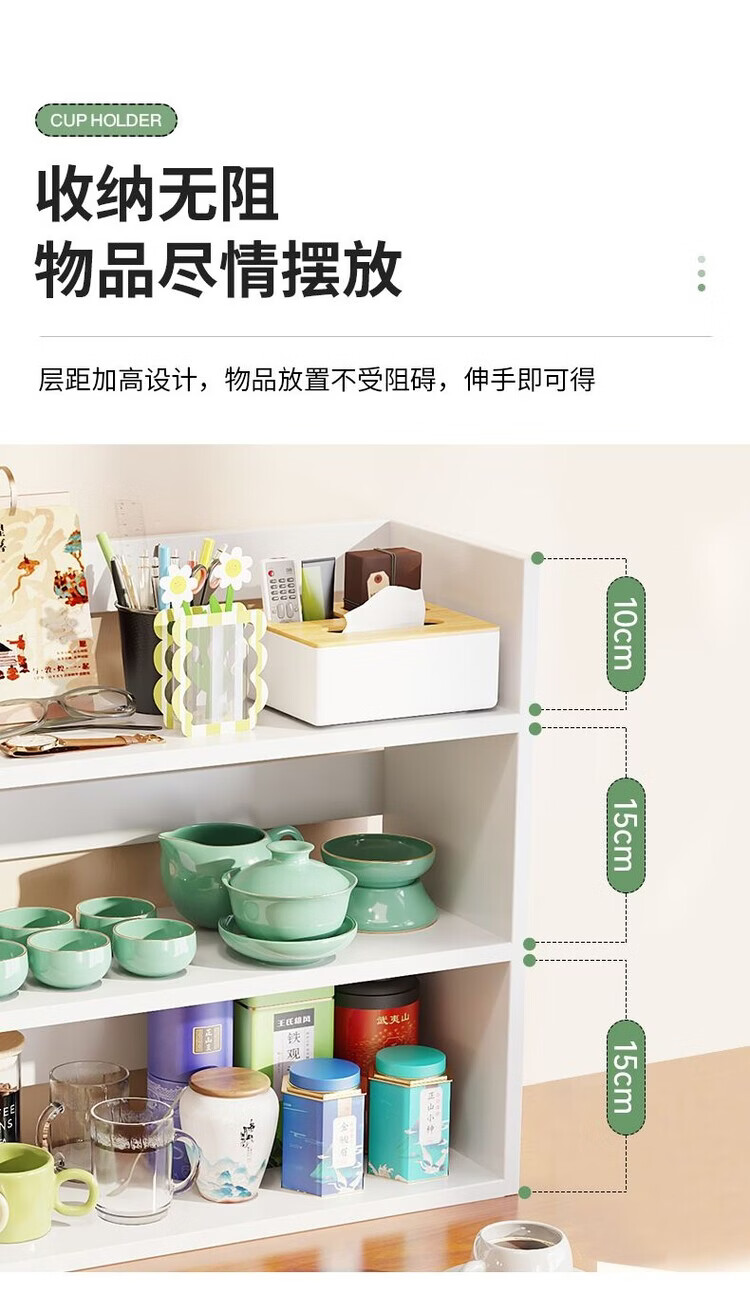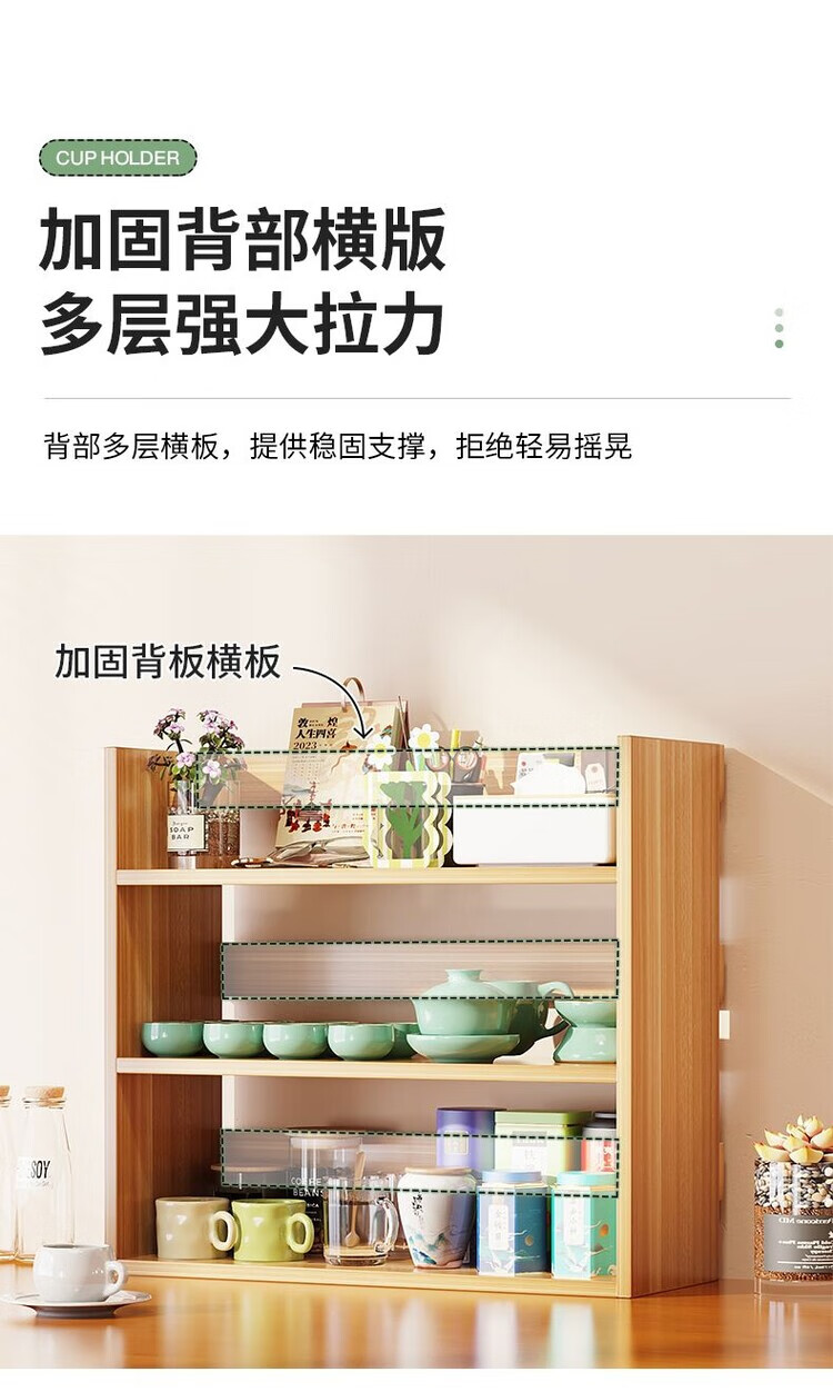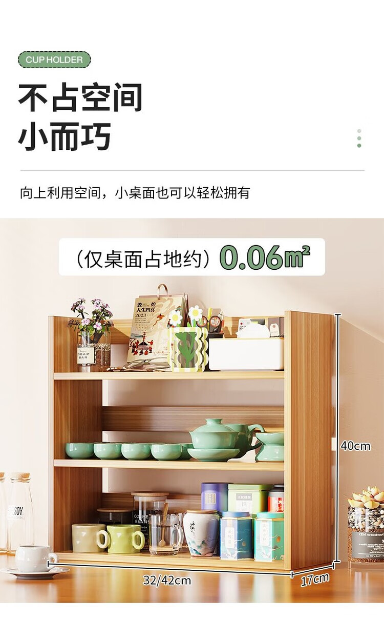 简漾桌面置物架杯子收纳架办公室杯架桌上多层水杯架子餐桌茶杯储物架 单层象牙白【总长32cm】