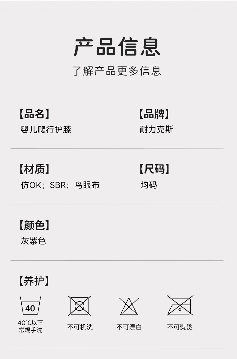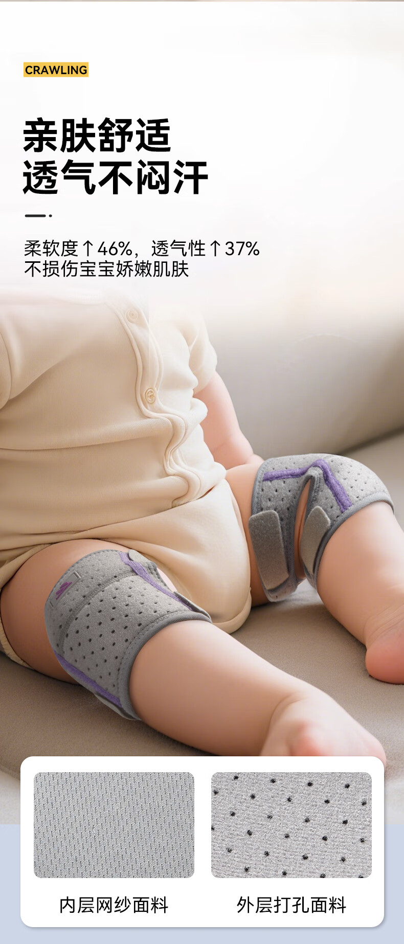耐力克斯婴儿护膝爬行防摔儿童网眼透气宝宝学步学爬护具专用防磨膝盖运动