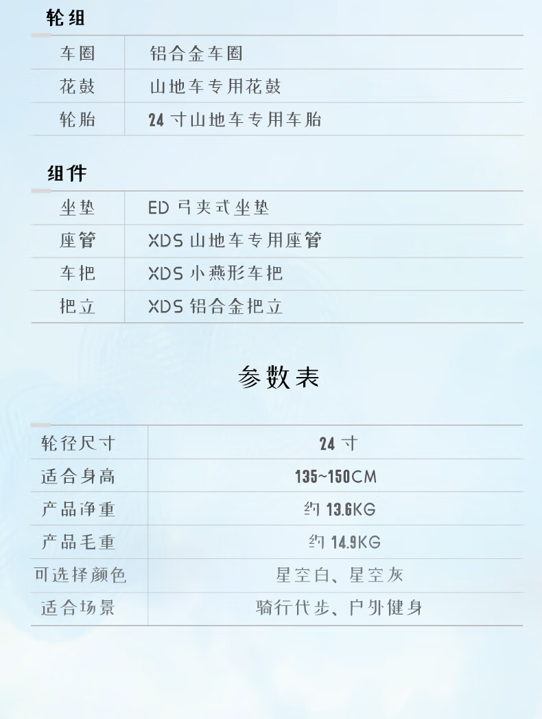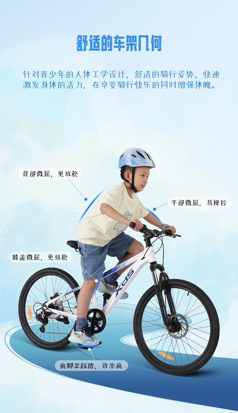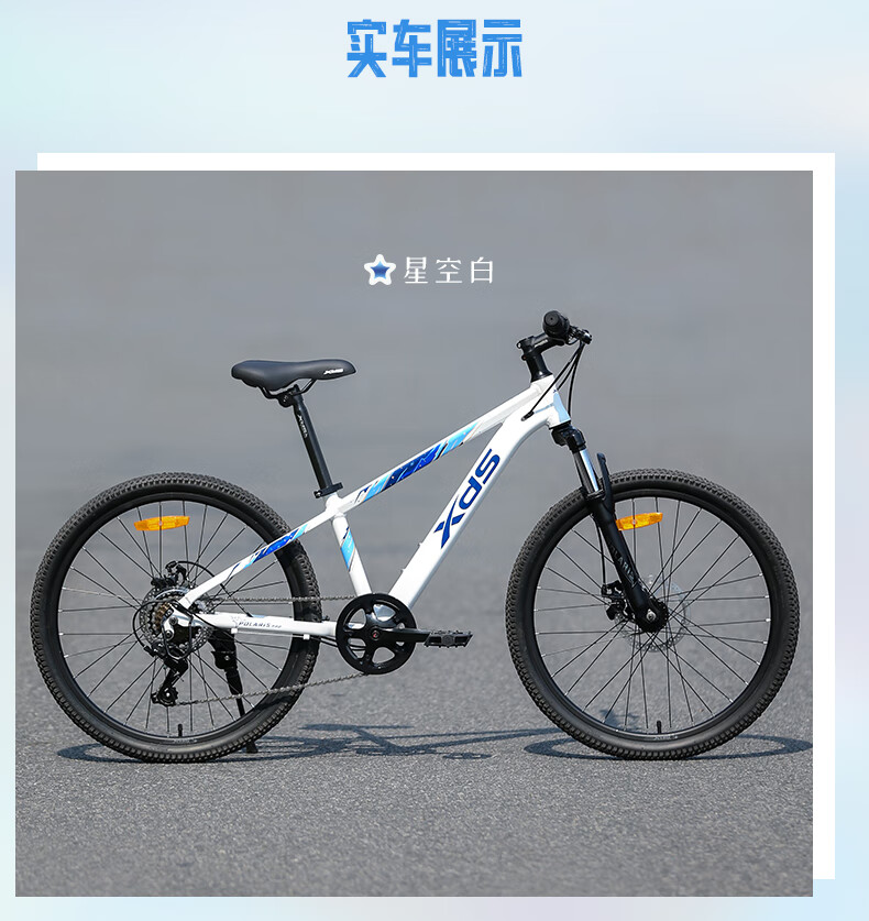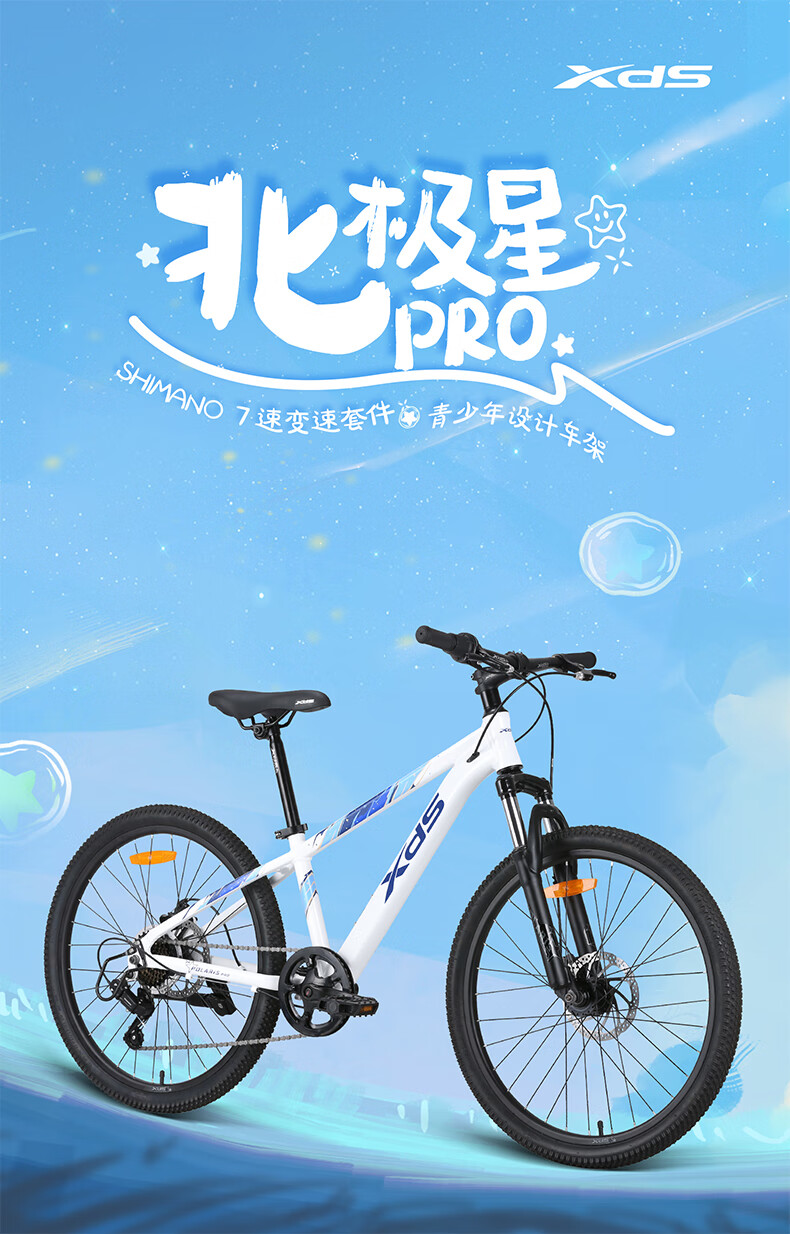 喜德盛青少年山地自行车2025款北极星PRO铝合金车架禧玛诺7速变速24寸轮 星空白 24英寸(适合身高135-150cm)