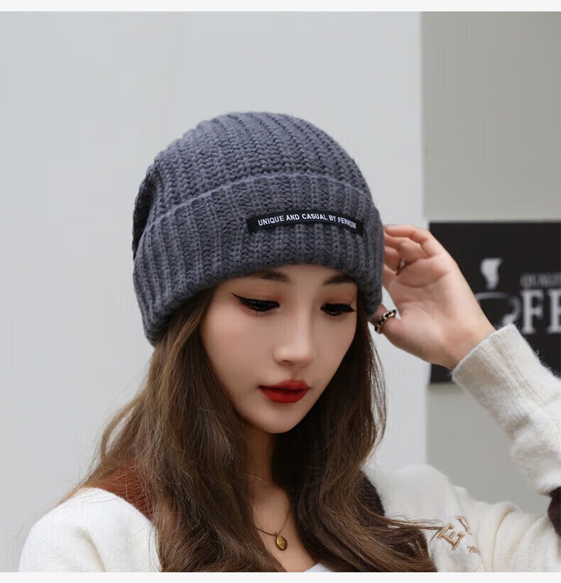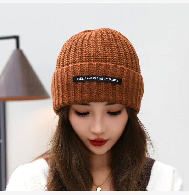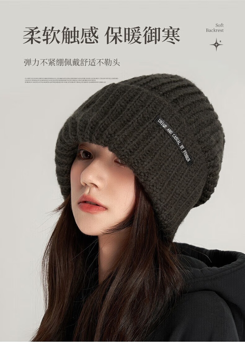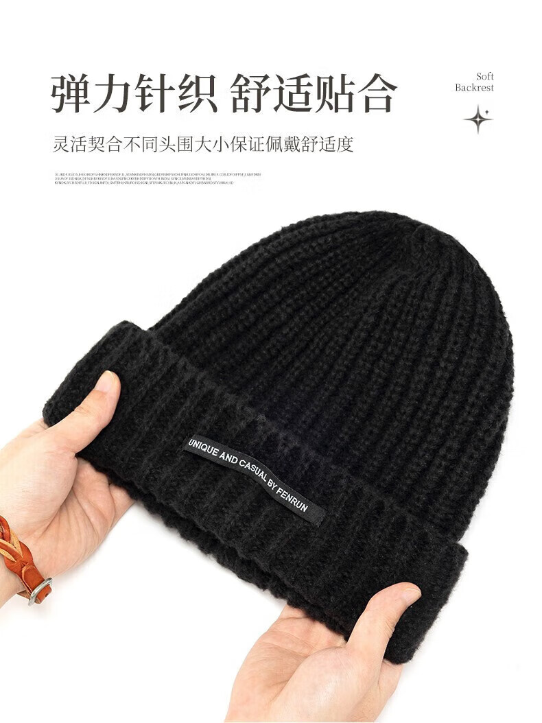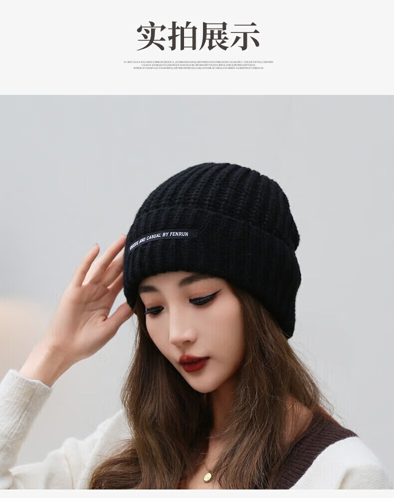 达芬奇密码秋冬保暖纯色针织毛线帽女士帽子防寒防风 黑色