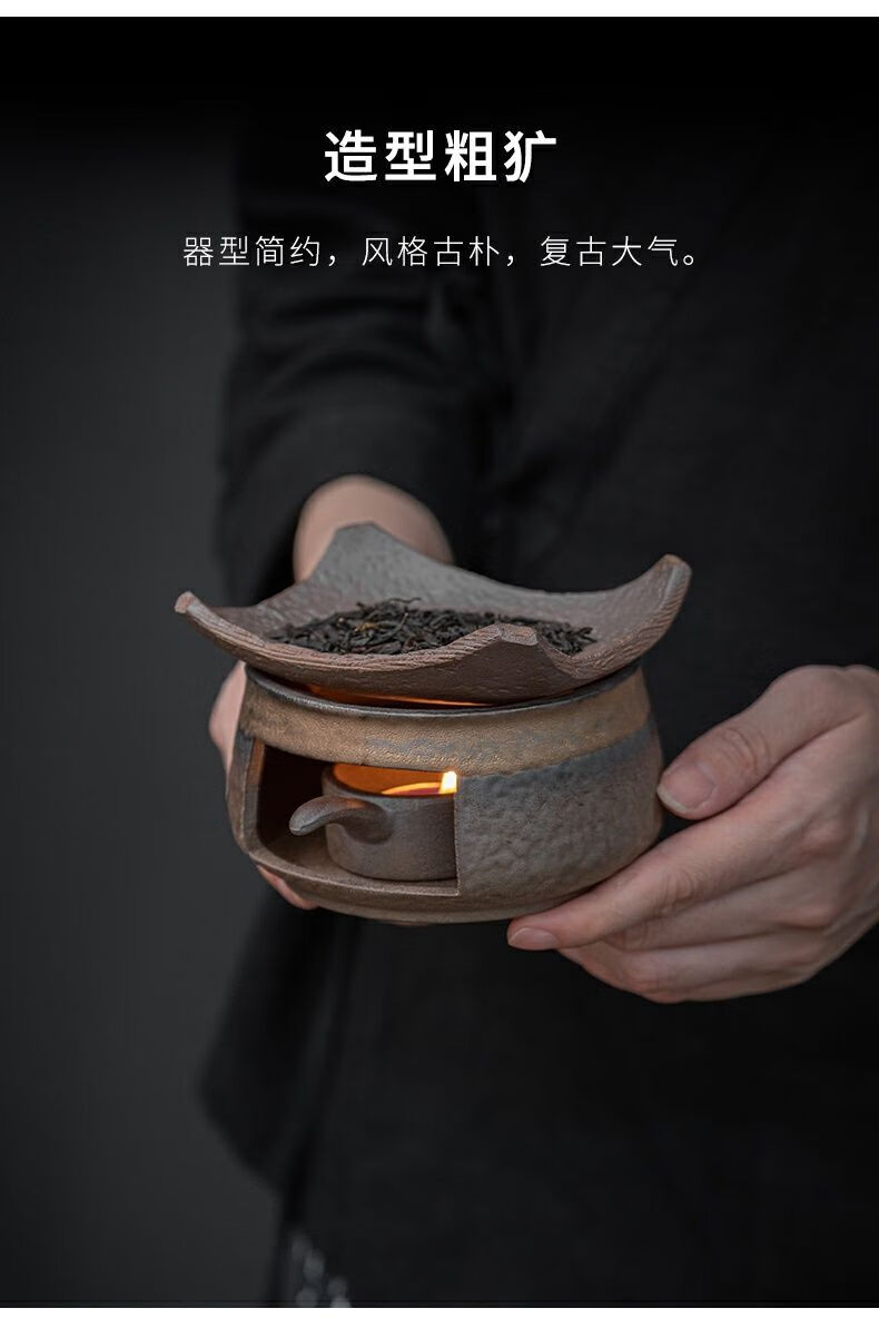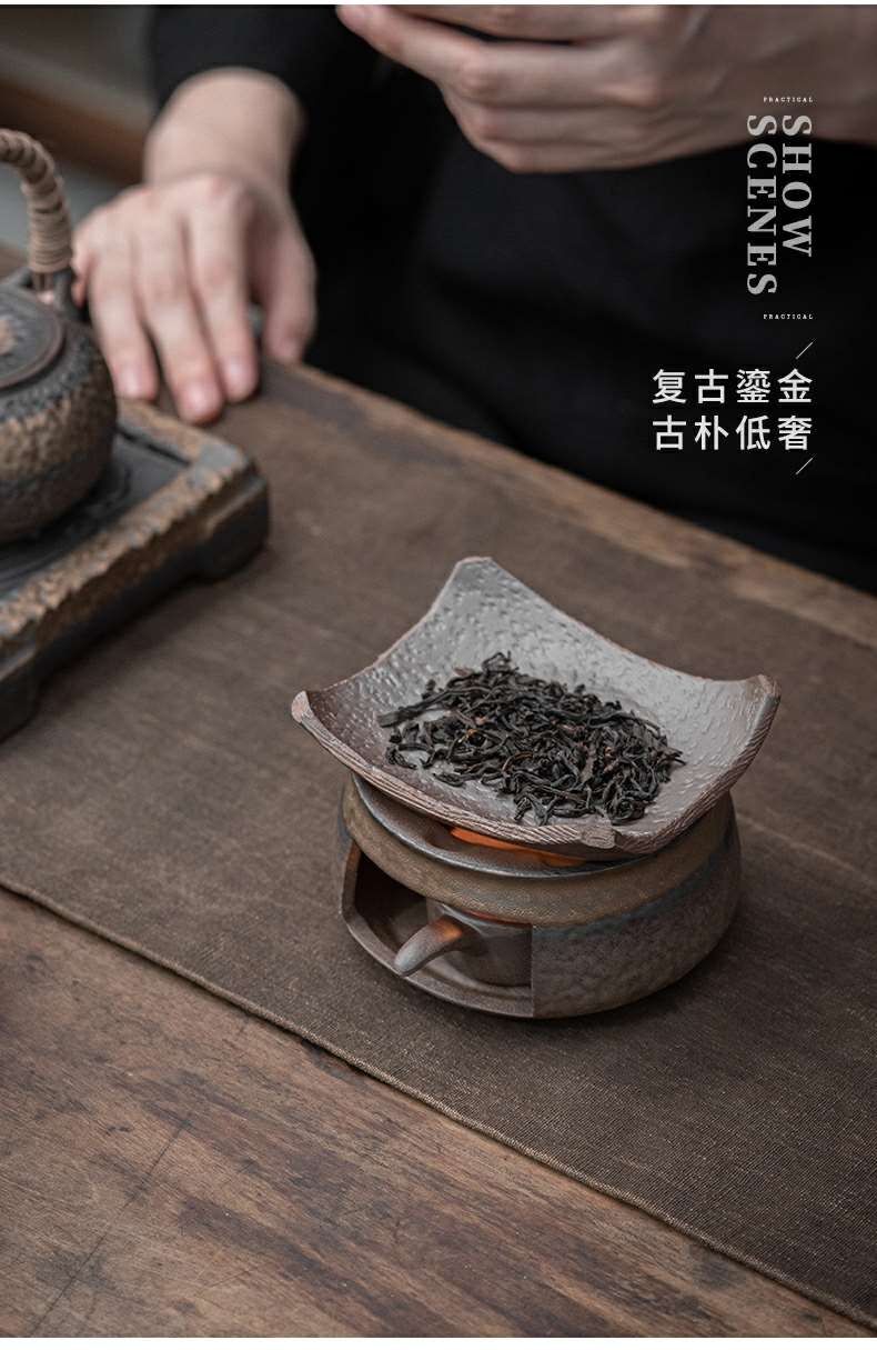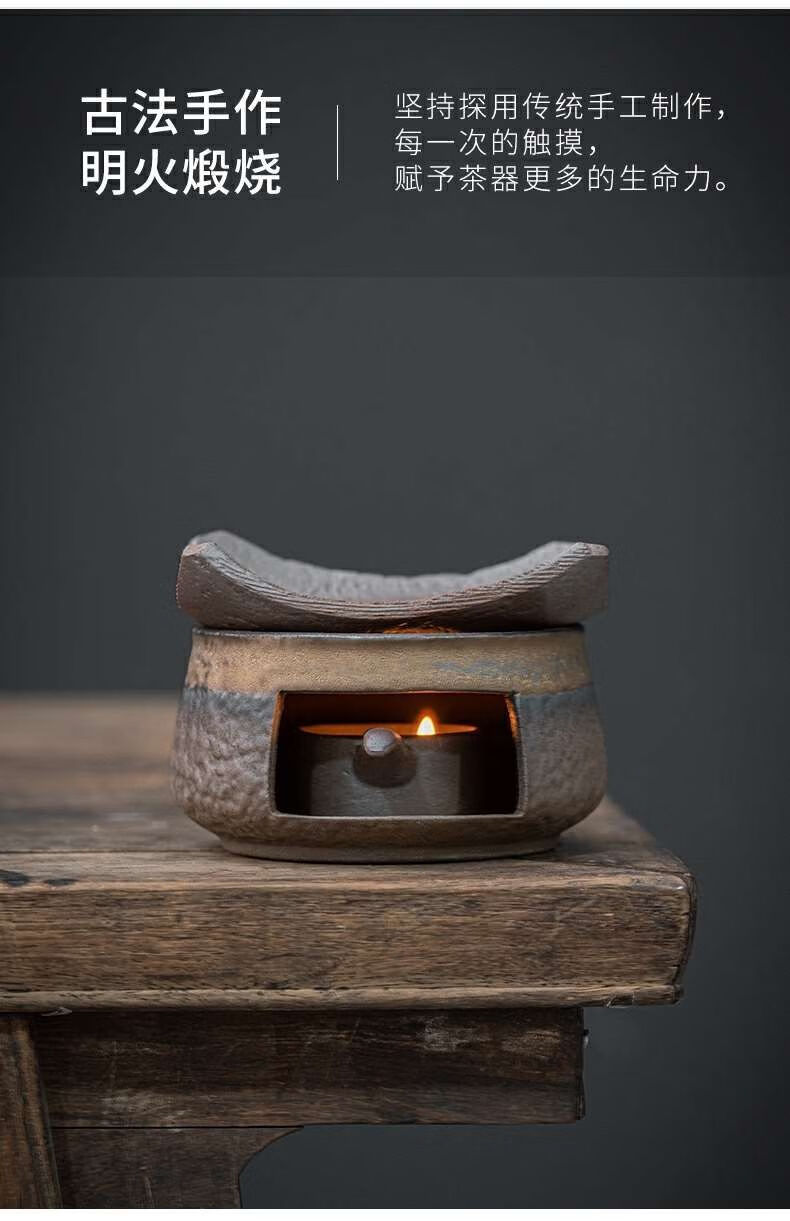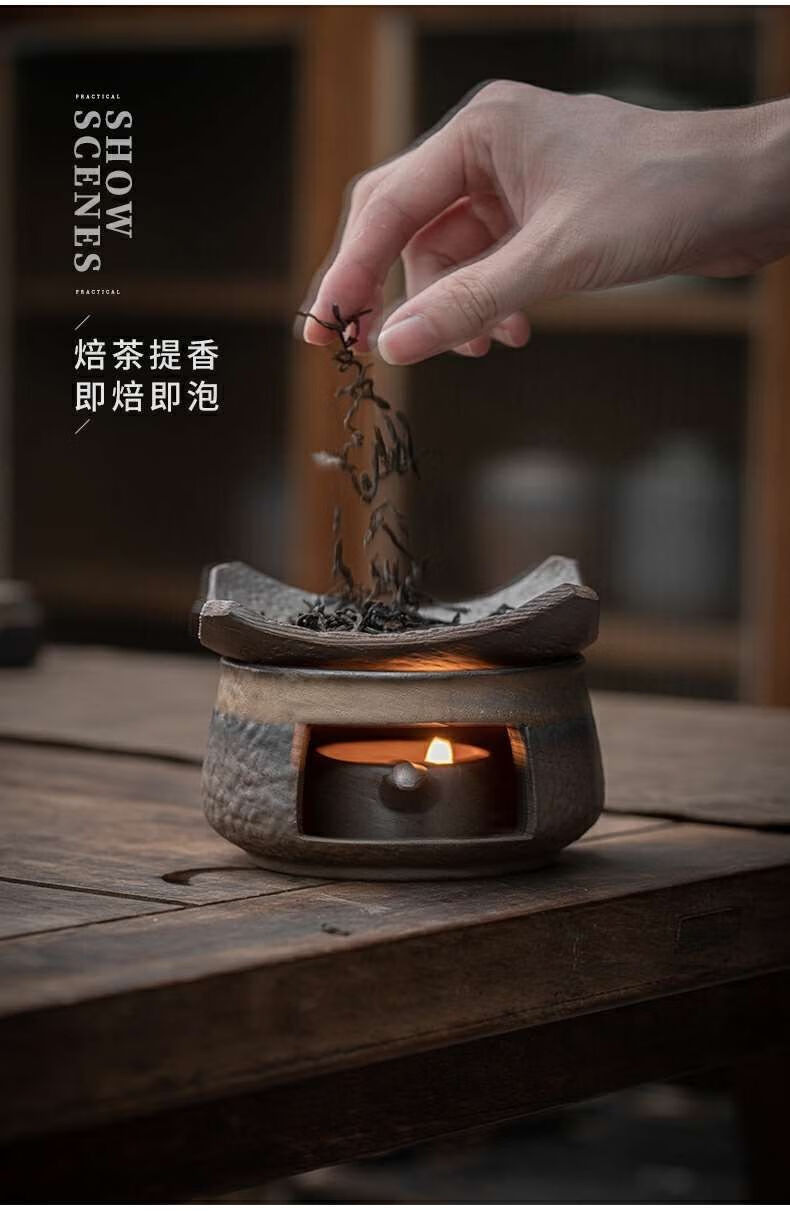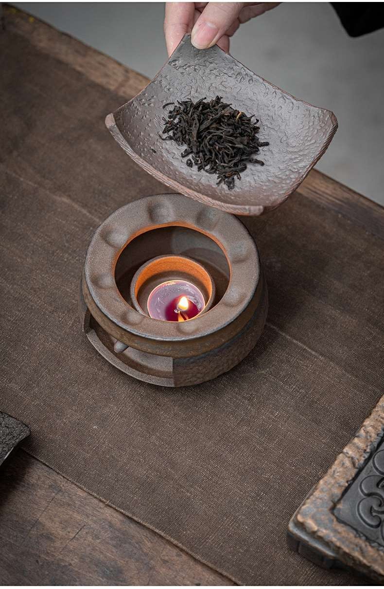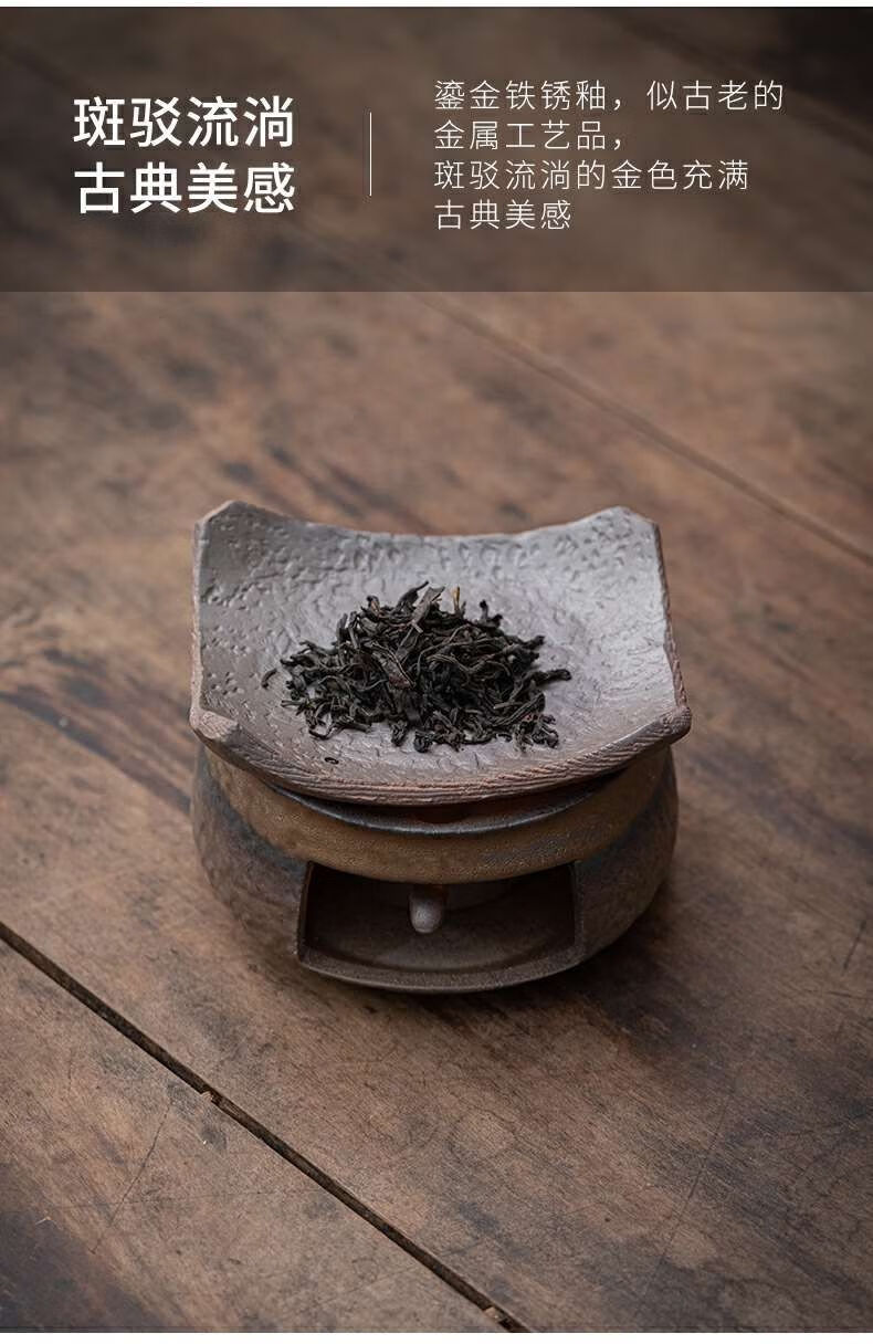 粗陶复古焙茶炉陶瓷茶叶提香器蜡烛加热烤茶炉醒茶家用茶道配件 金烤茶炉组合赠送10粒蜡烛