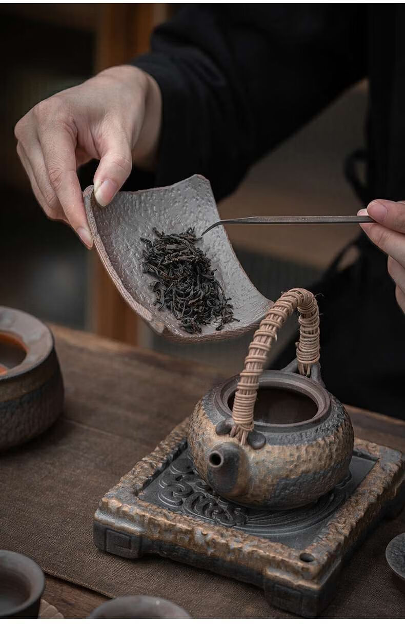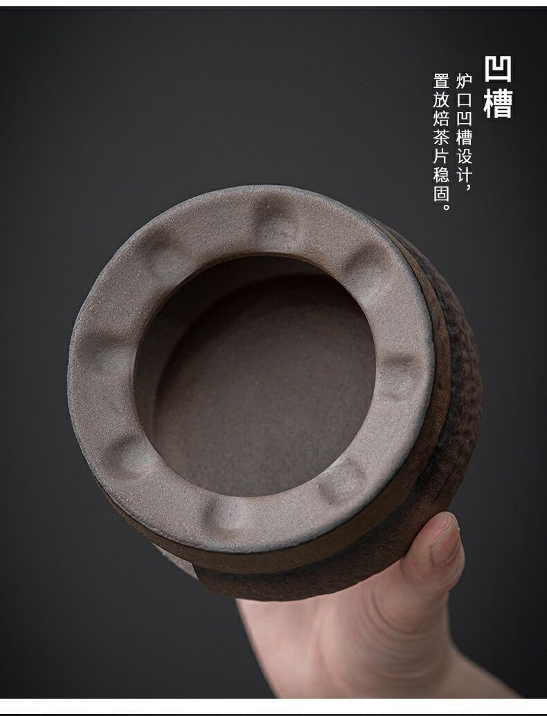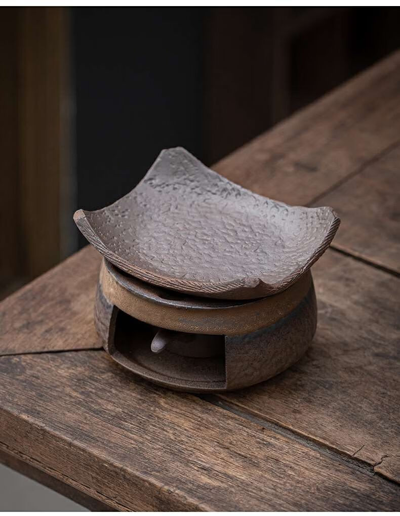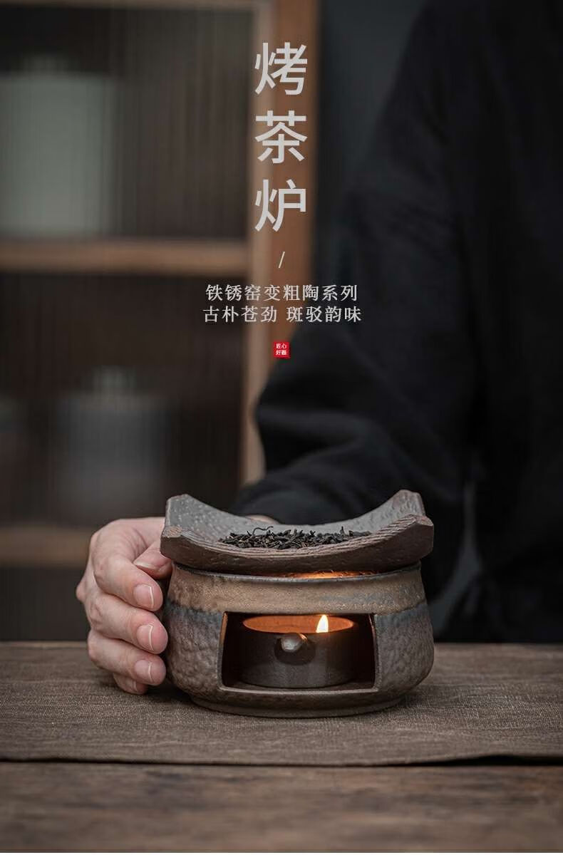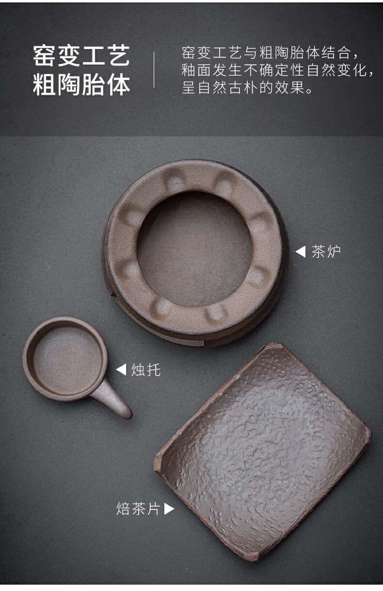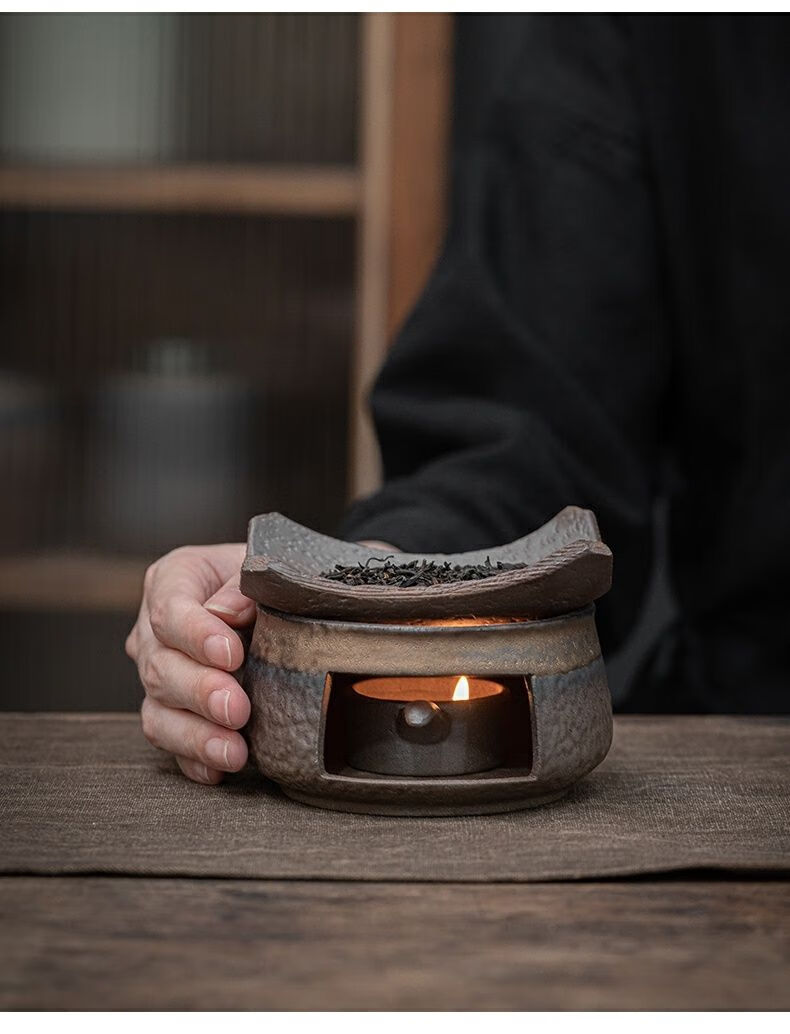 粗陶复古焙茶炉陶瓷茶叶提香器蜡烛加热烤茶炉醒茶家用茶道配件 金烤茶炉组合赠送10粒蜡烛