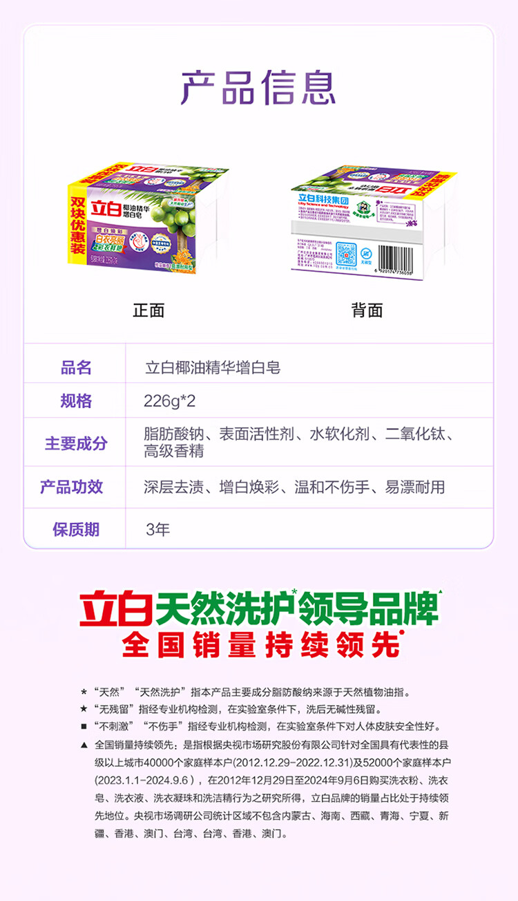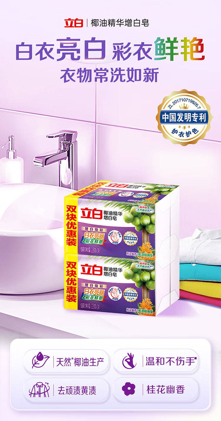立白洗衣皂强力去污椰油皂深层去渍祛味不伤手肥皂实惠组合装增白皂 【强效去渍】天然椰油皂205g*4块
