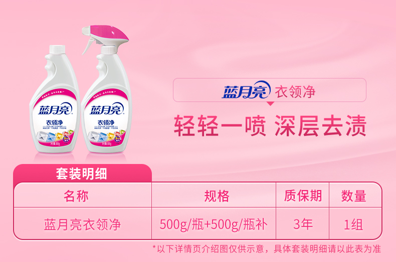 蓝月亮【店铺主推】衣领净套装 喷雾型 表面活性有效去污 衣领净500g*2(瓶+瓶补)