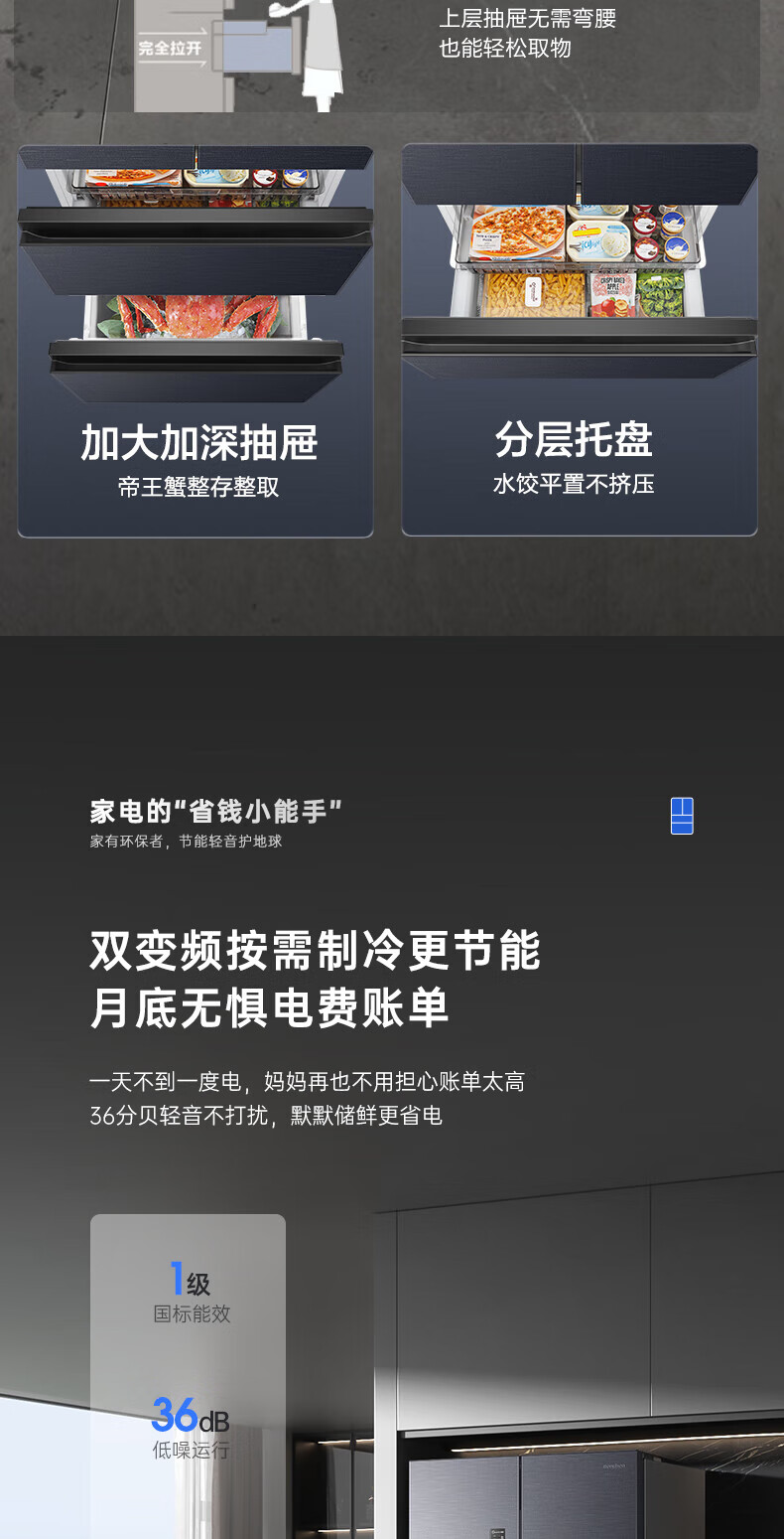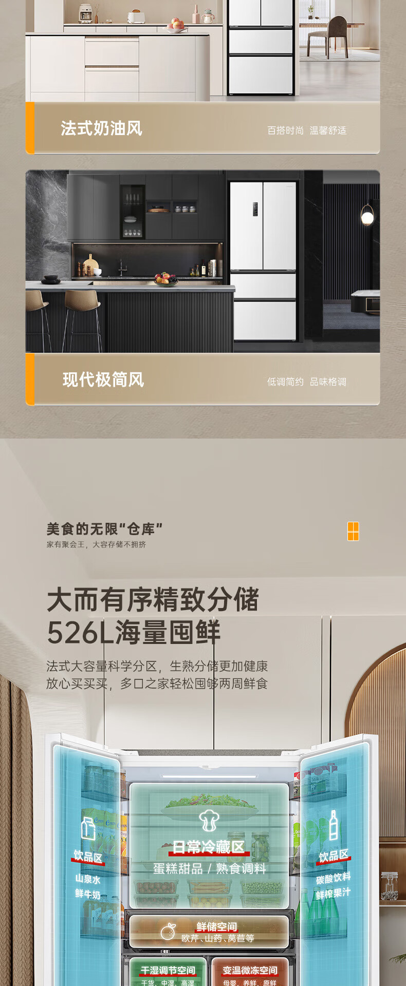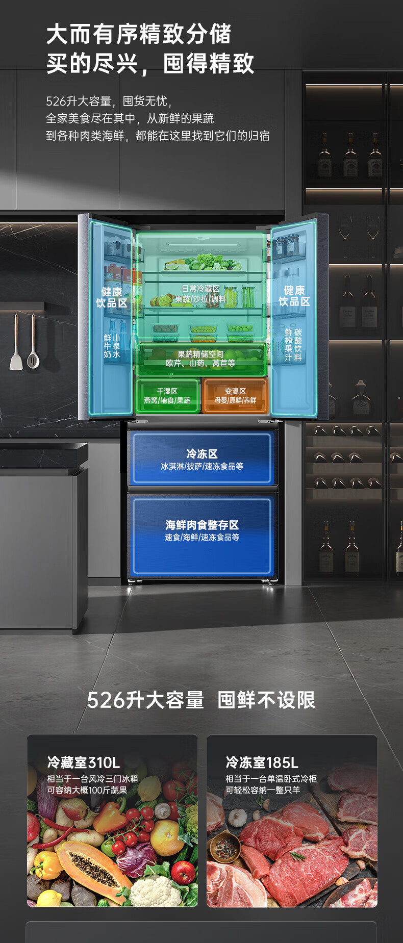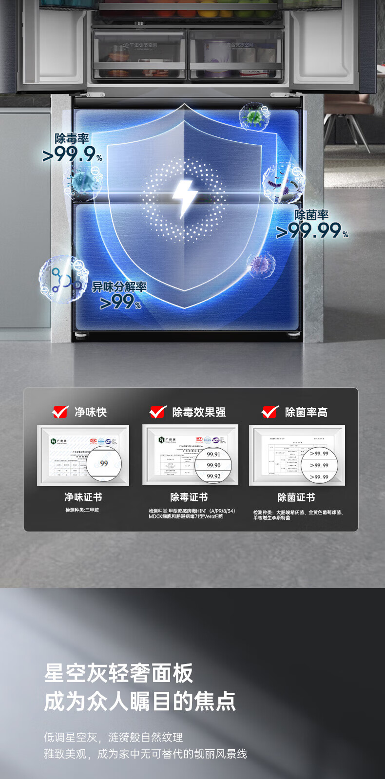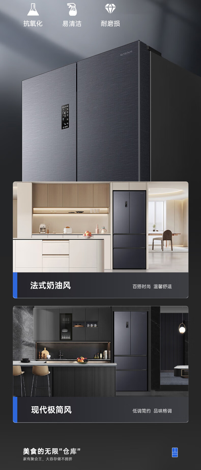 容声冰箱526L法式多门四门风冷无霜双循环一级变频家用母婴净味嵌入式电冰箱补贴 以旧换新 双净双系统IDP除菌净味BCD-526WD1MPA