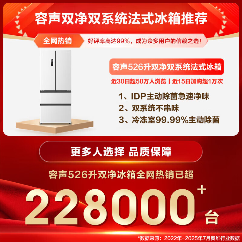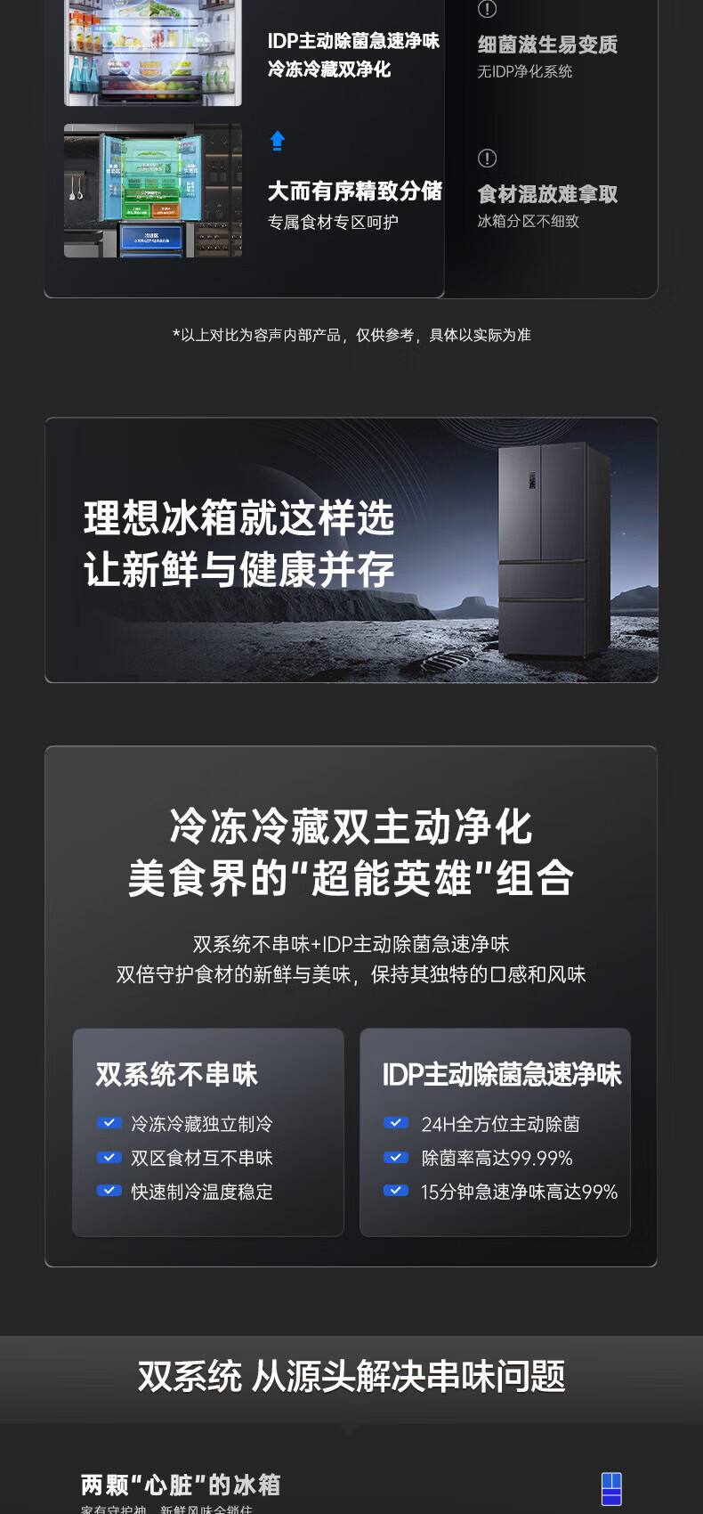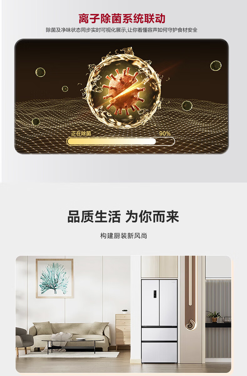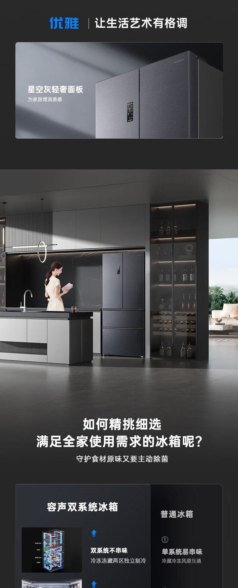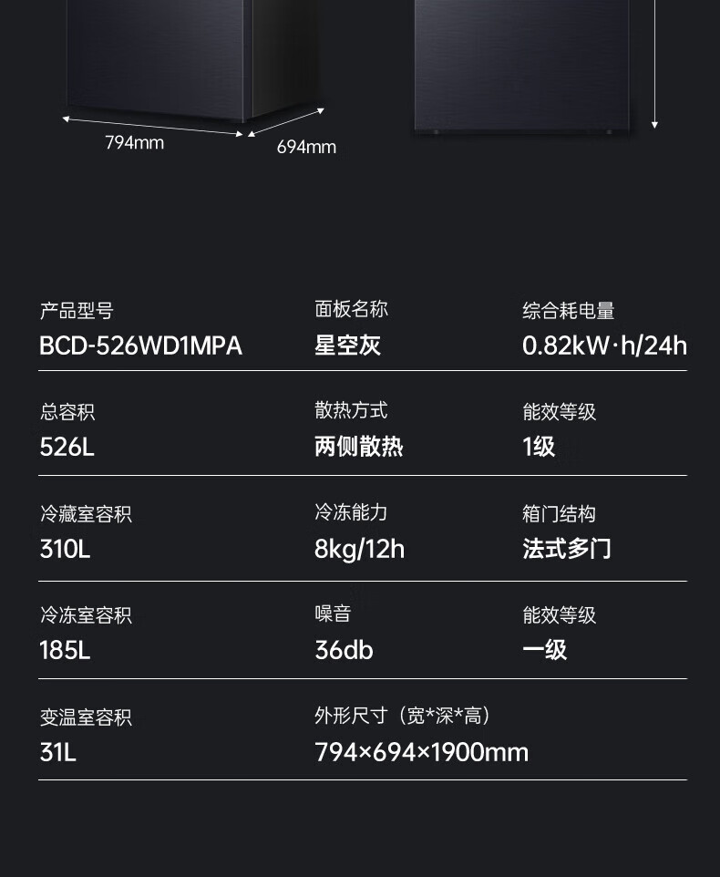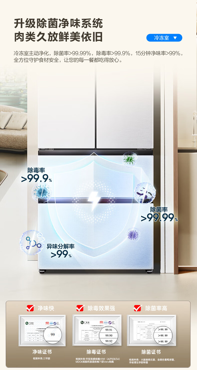 容声冰箱526L法式多门四门风冷无霜双循环一级变频家用母婴净味嵌入式电冰箱补贴 以旧换新 双净双系统IDP除菌净味BCD-526WD1MPA