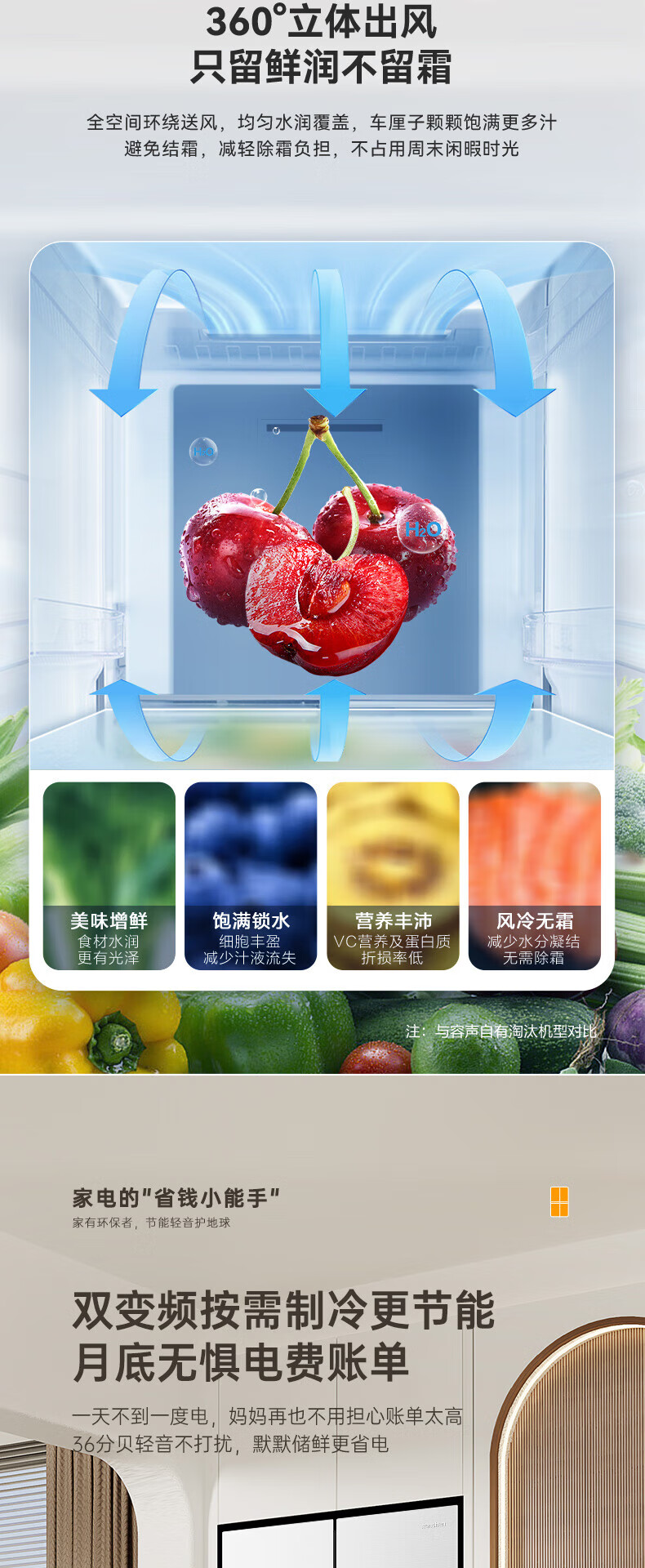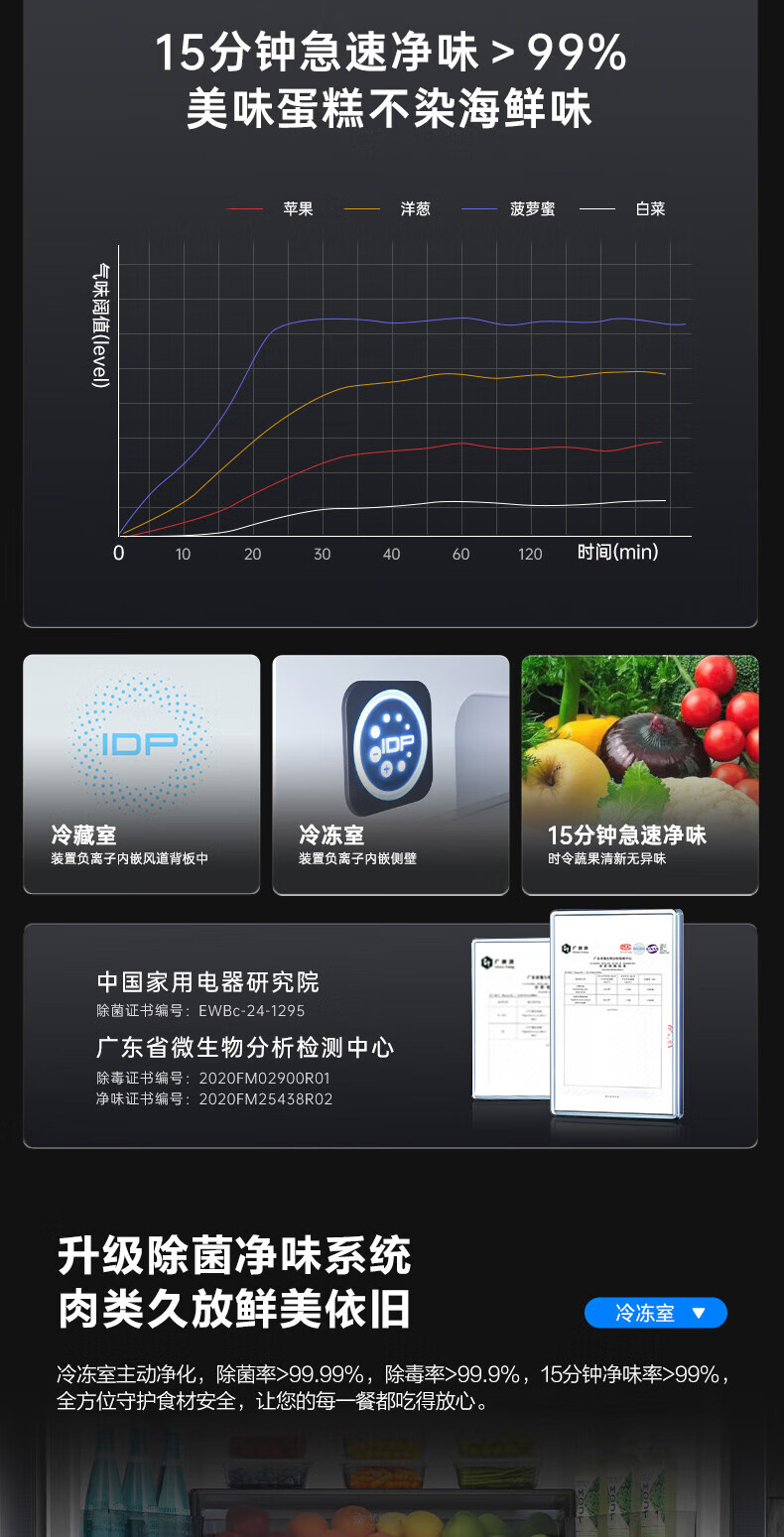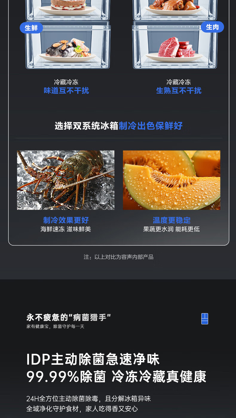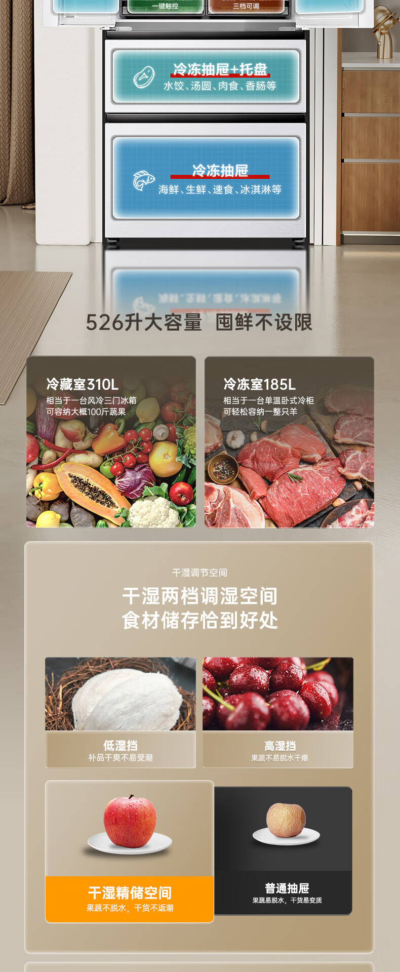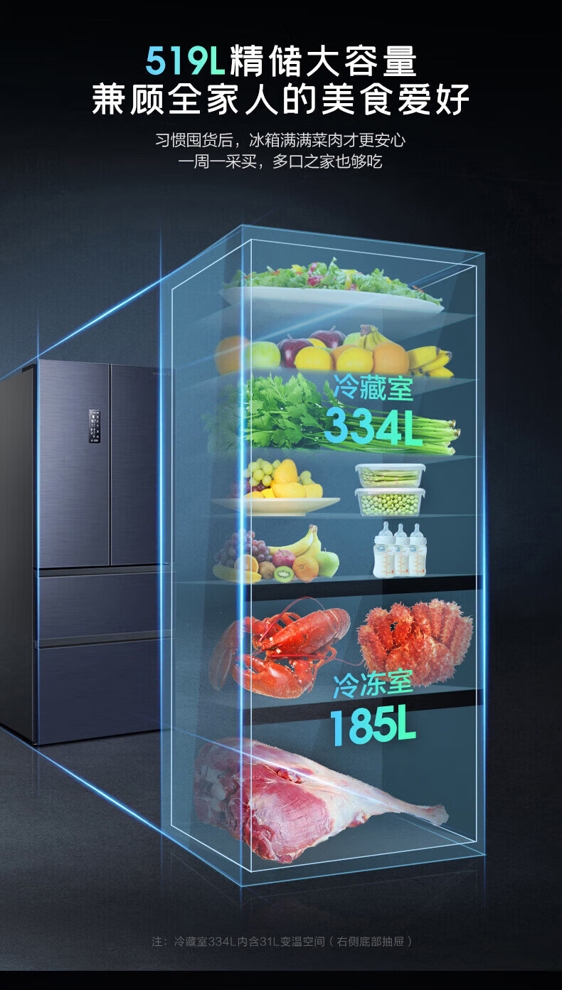 容声冰箱526L法式多门四门风冷无霜双循环一级变频家用母婴净味嵌入式电冰箱补贴 以旧换新 双净双系统IDP除菌净味BCD-526WD1MPA