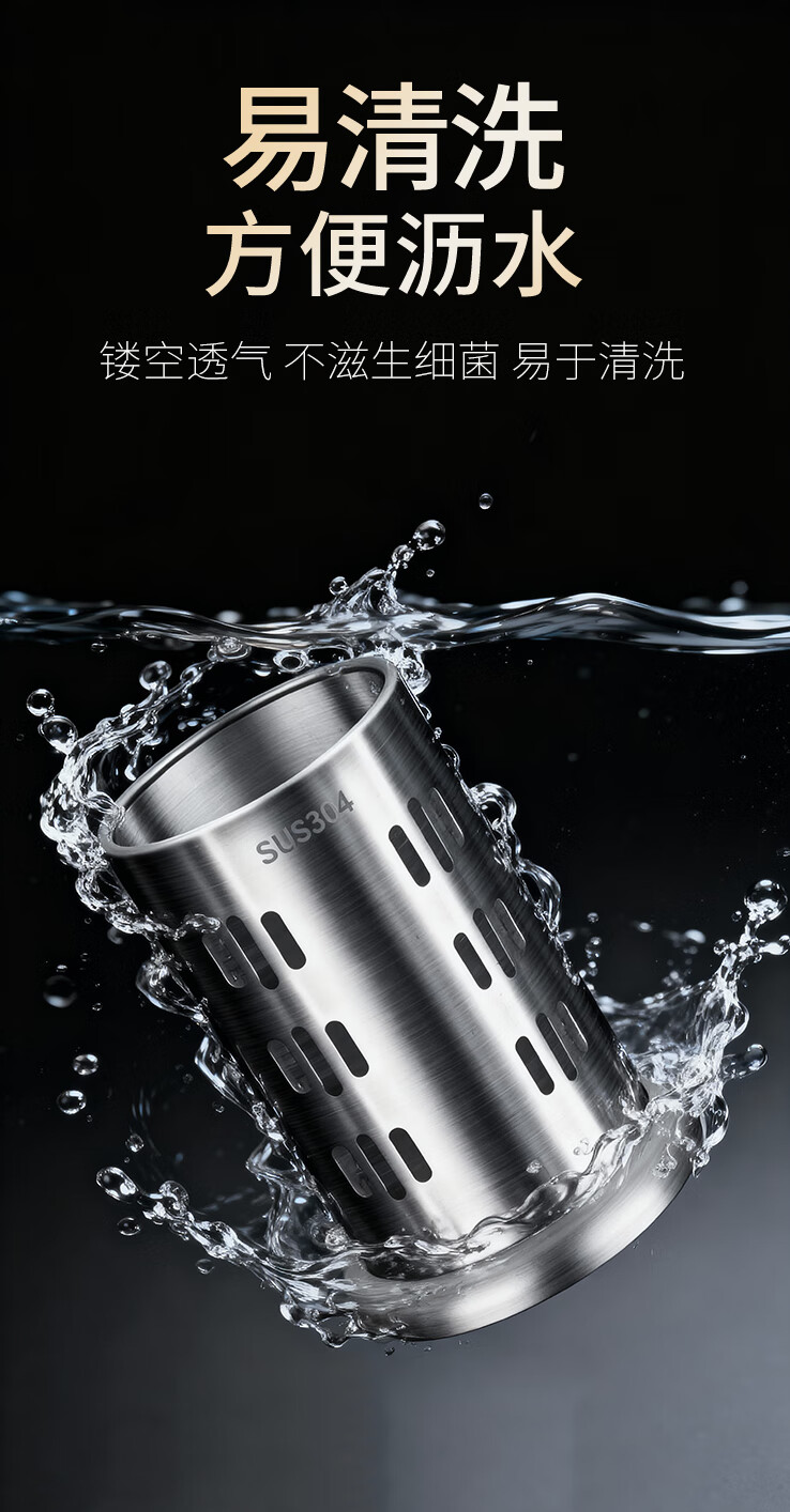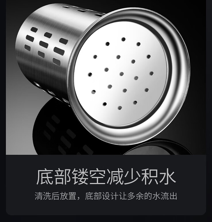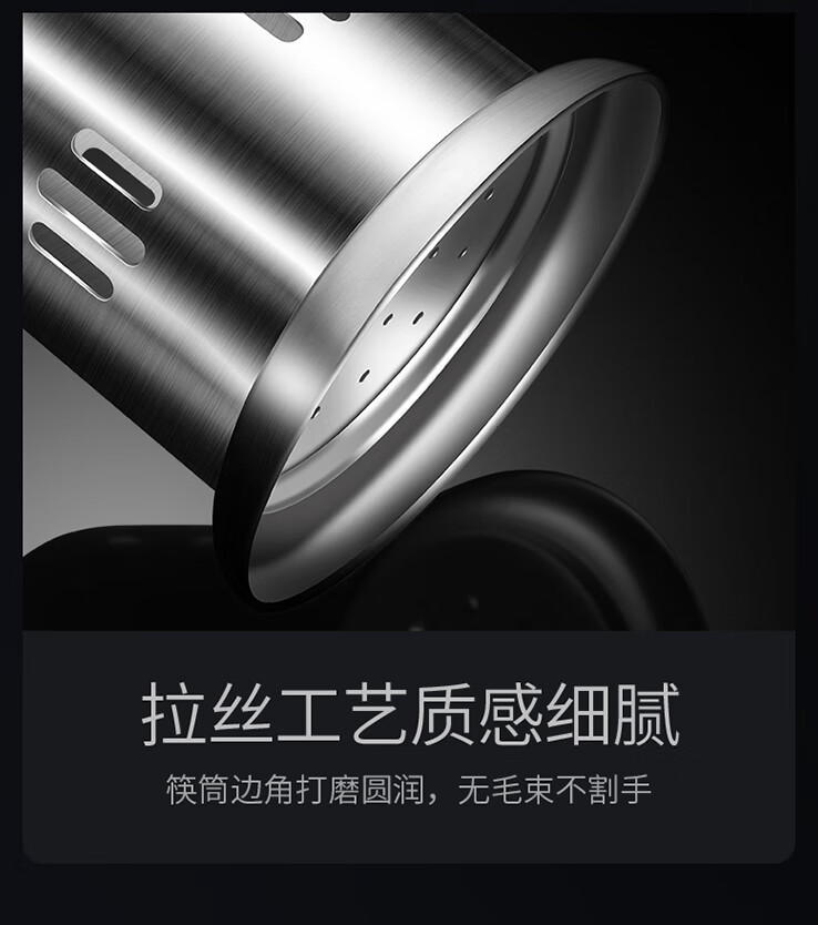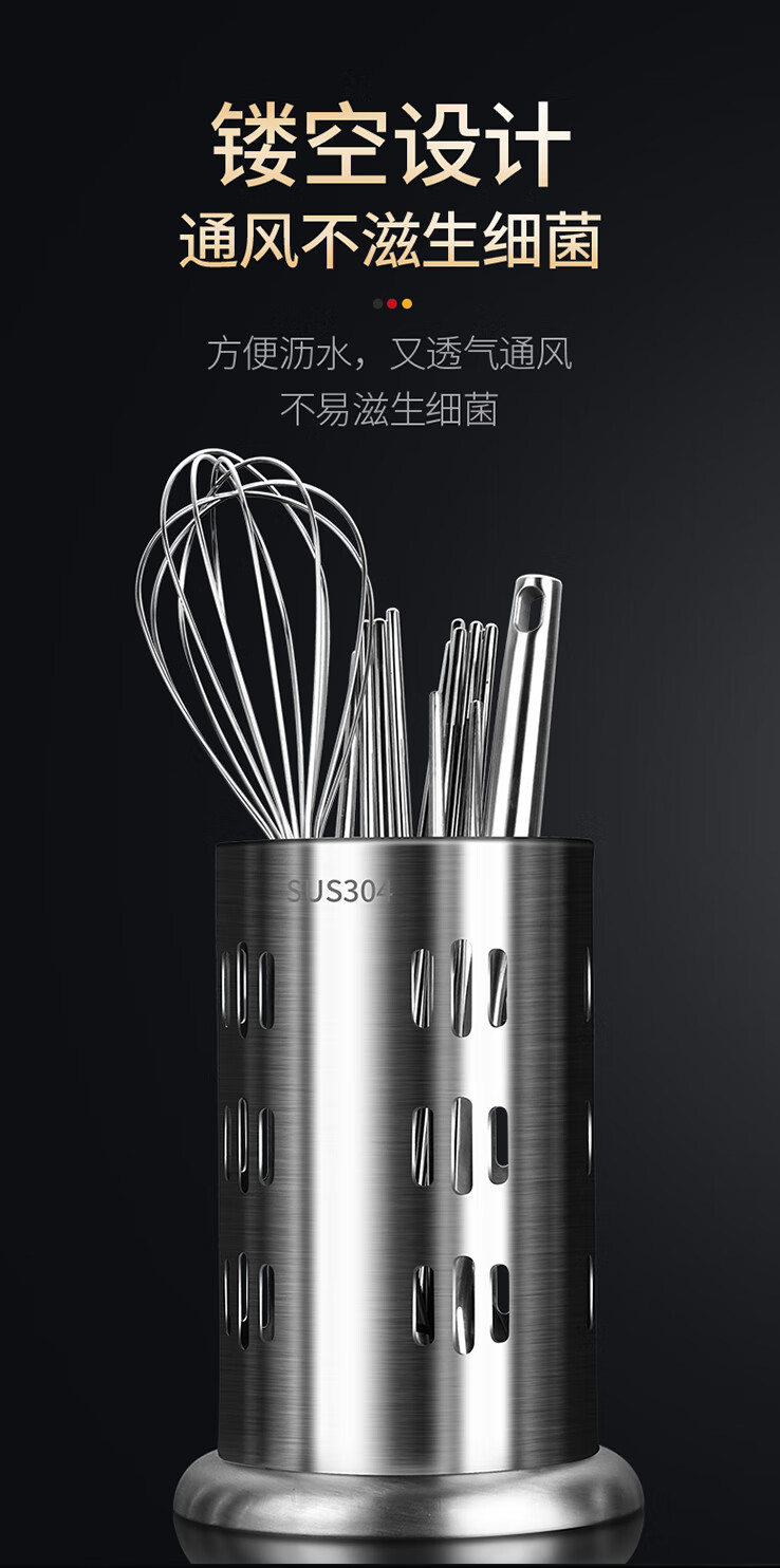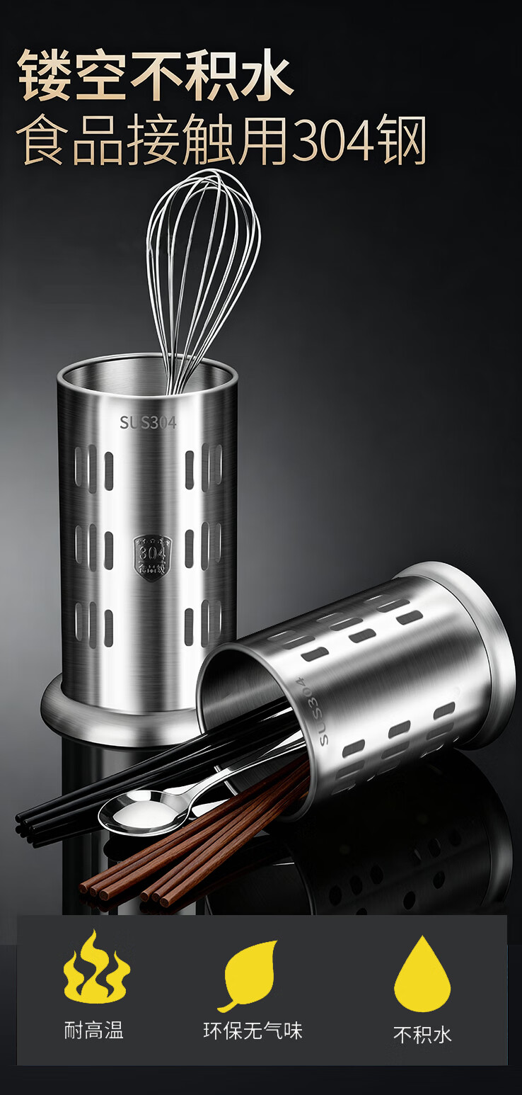 炊大皇筷子筒台面通风餐桌家用放勺304不锈钢筷笼多功能厨房沥水收纳盒 A2【304不锈钢】条形孔筷子筒加高款