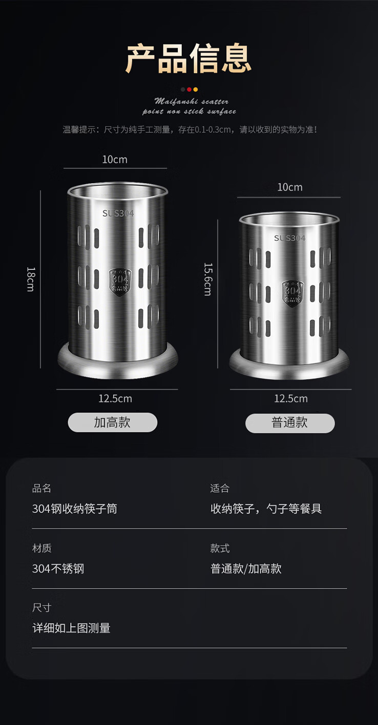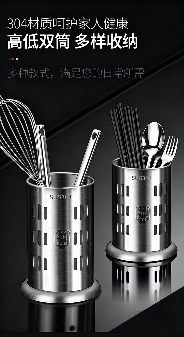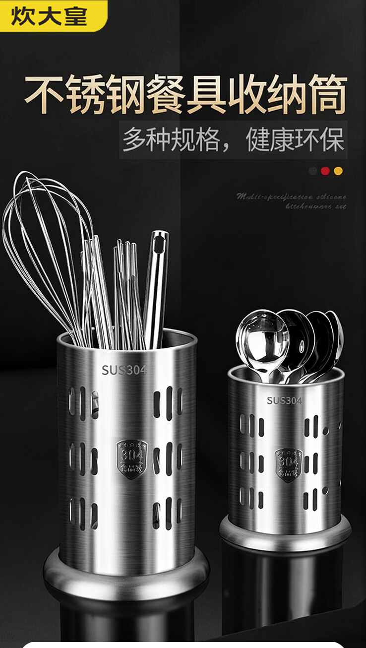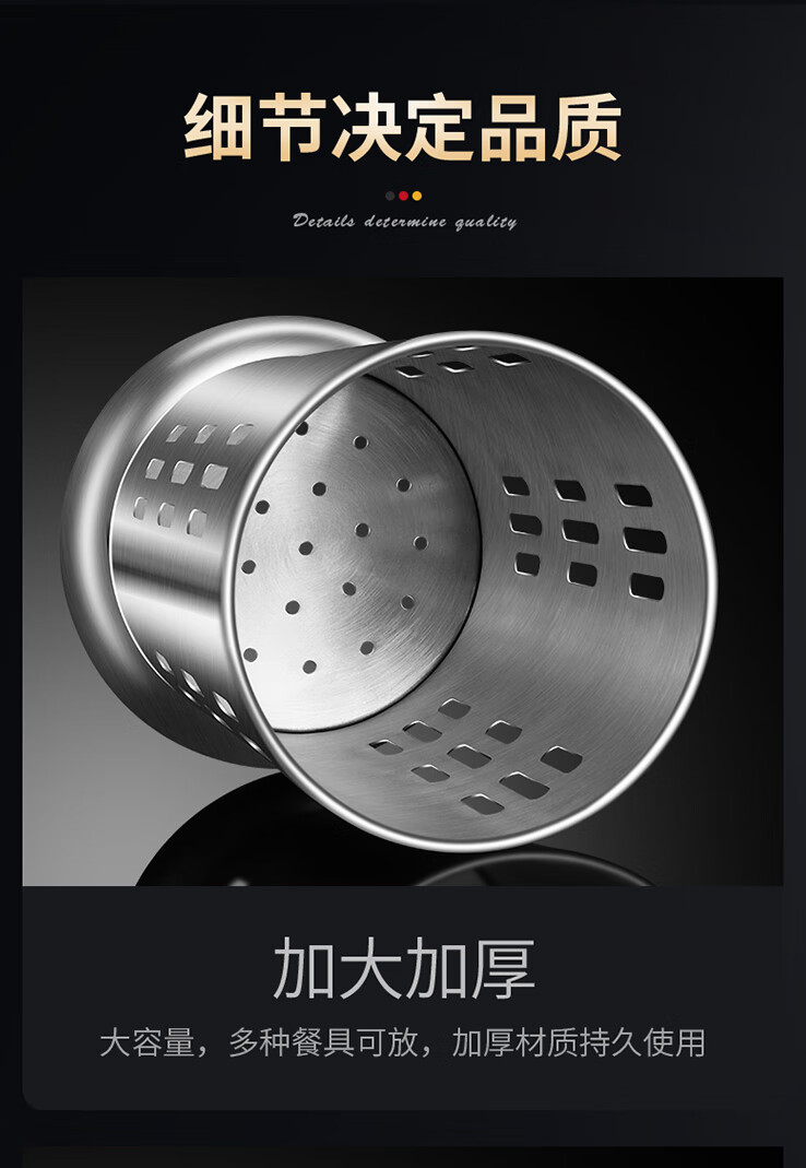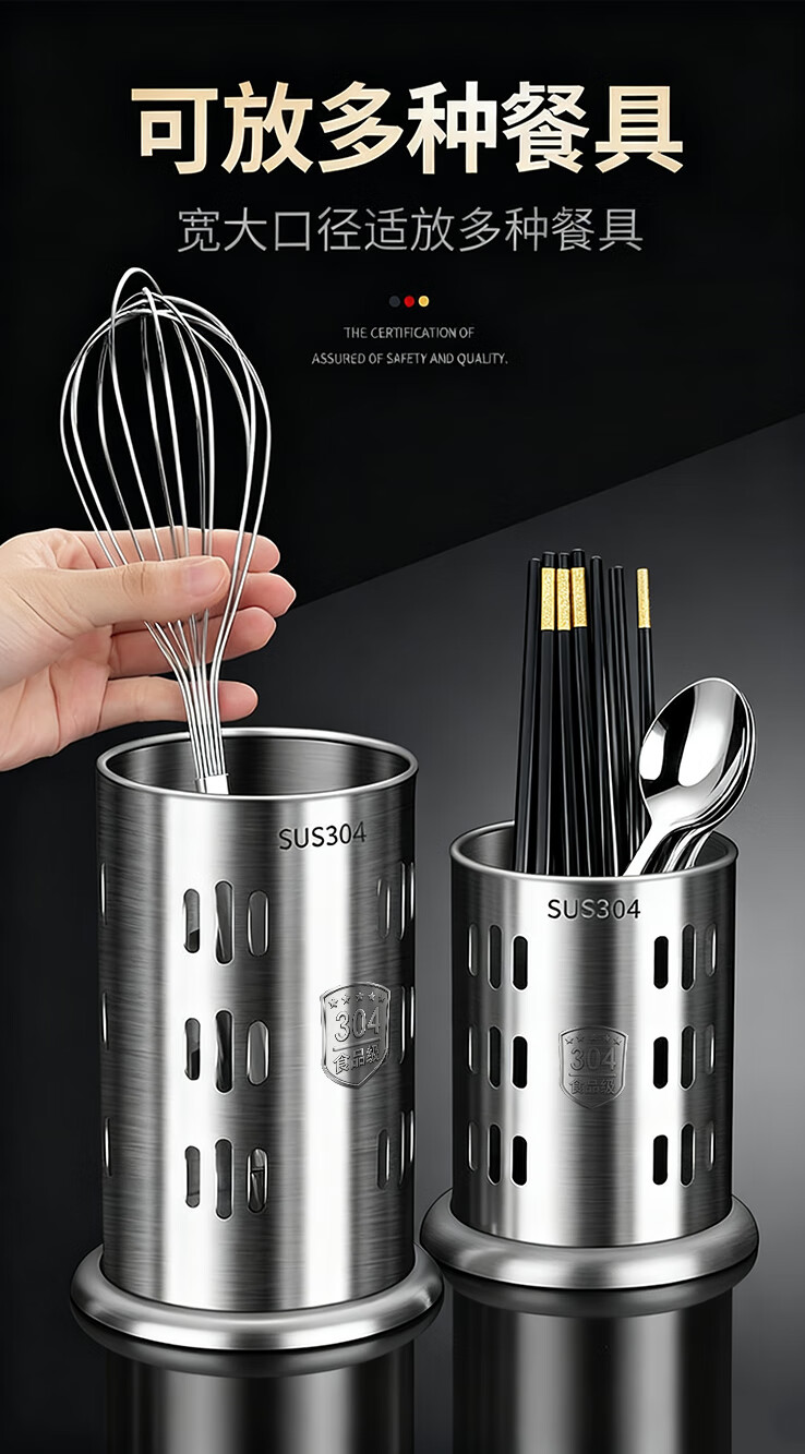 炊大皇筷子筒台面通风餐桌家用放勺304不锈钢筷笼多功能厨房沥水收纳盒 A2【304不锈钢】条形孔筷子筒加高款