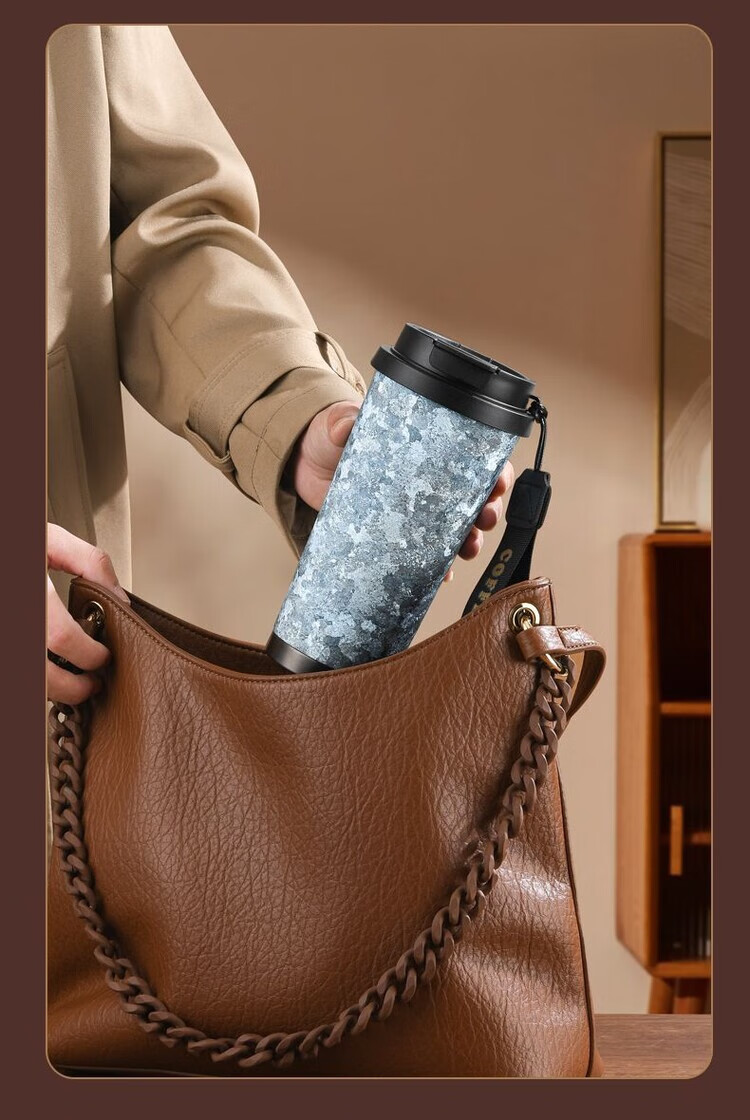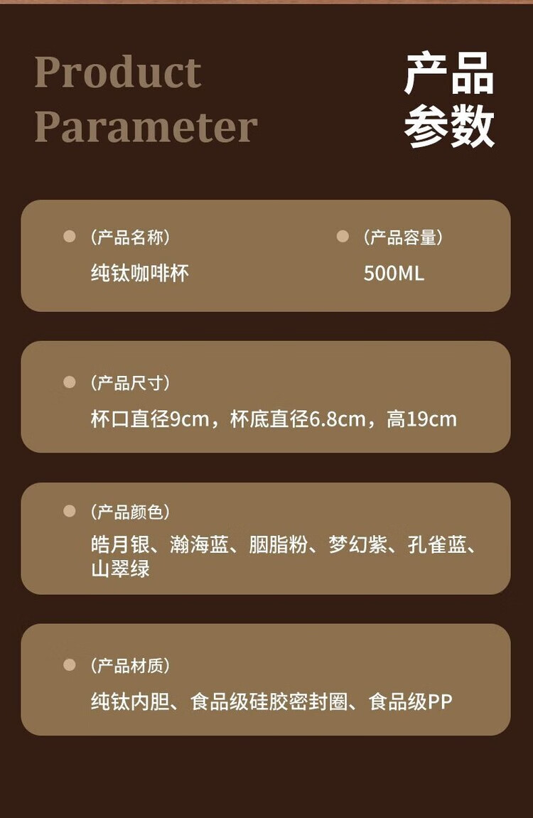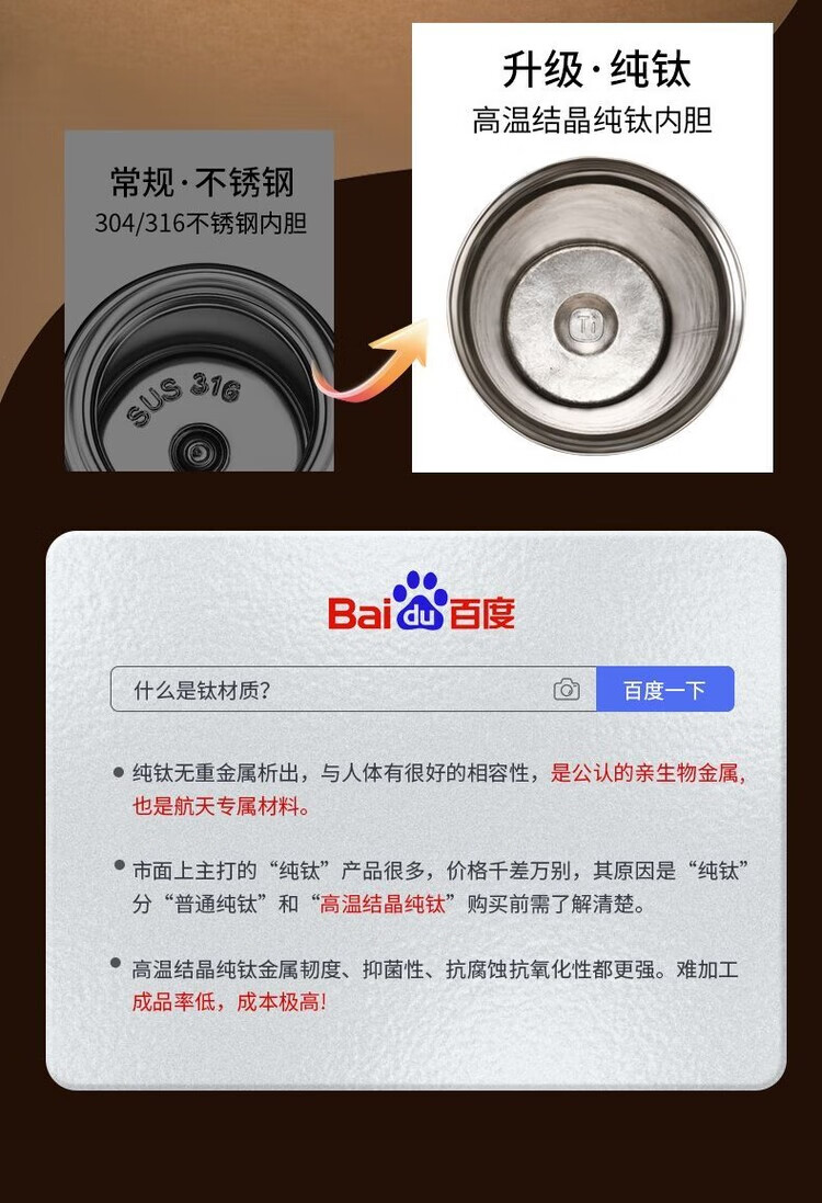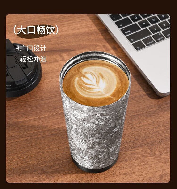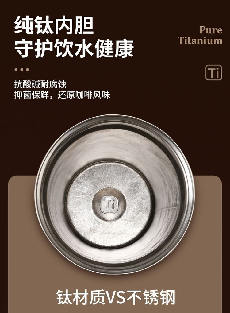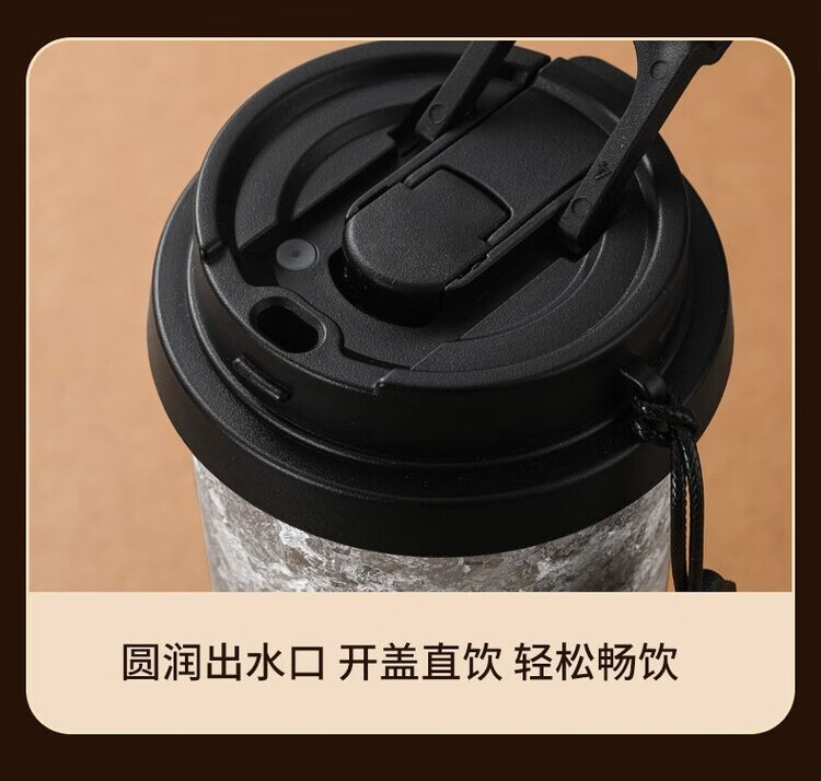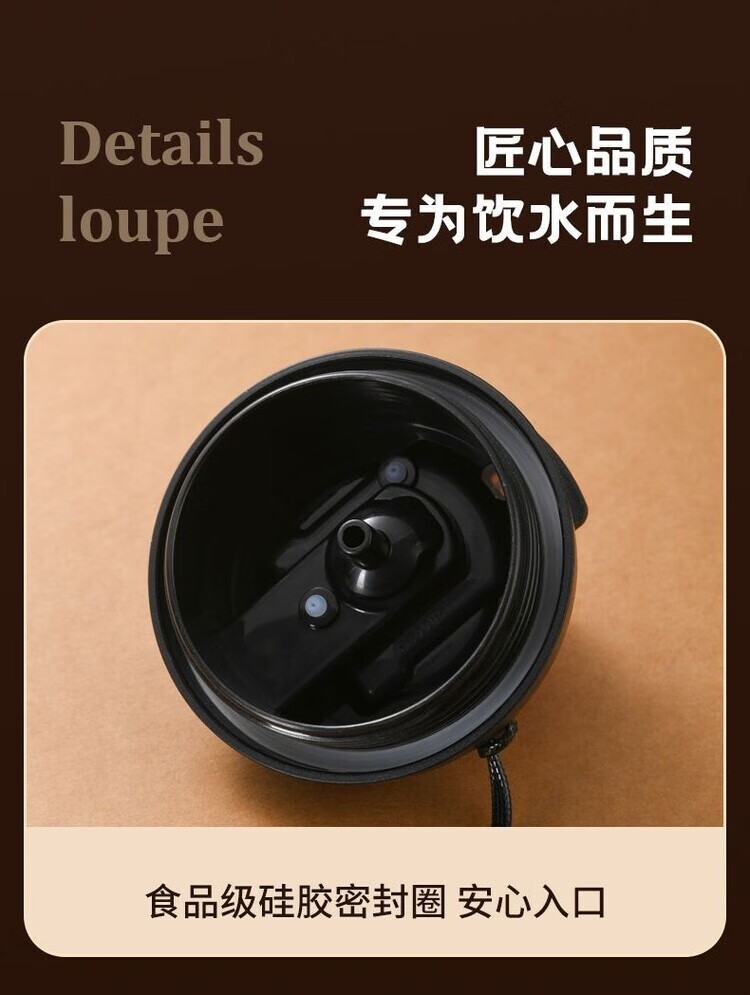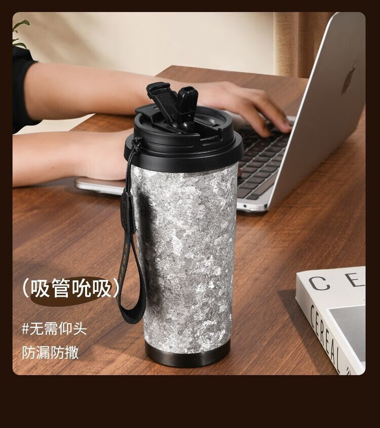 简漾纯钛咖啡杯内外纯钛新款保温水杯车载大容量吸管杯外带随行钛杯子 500ml 黑盖纯色小结晶提绳+吸管