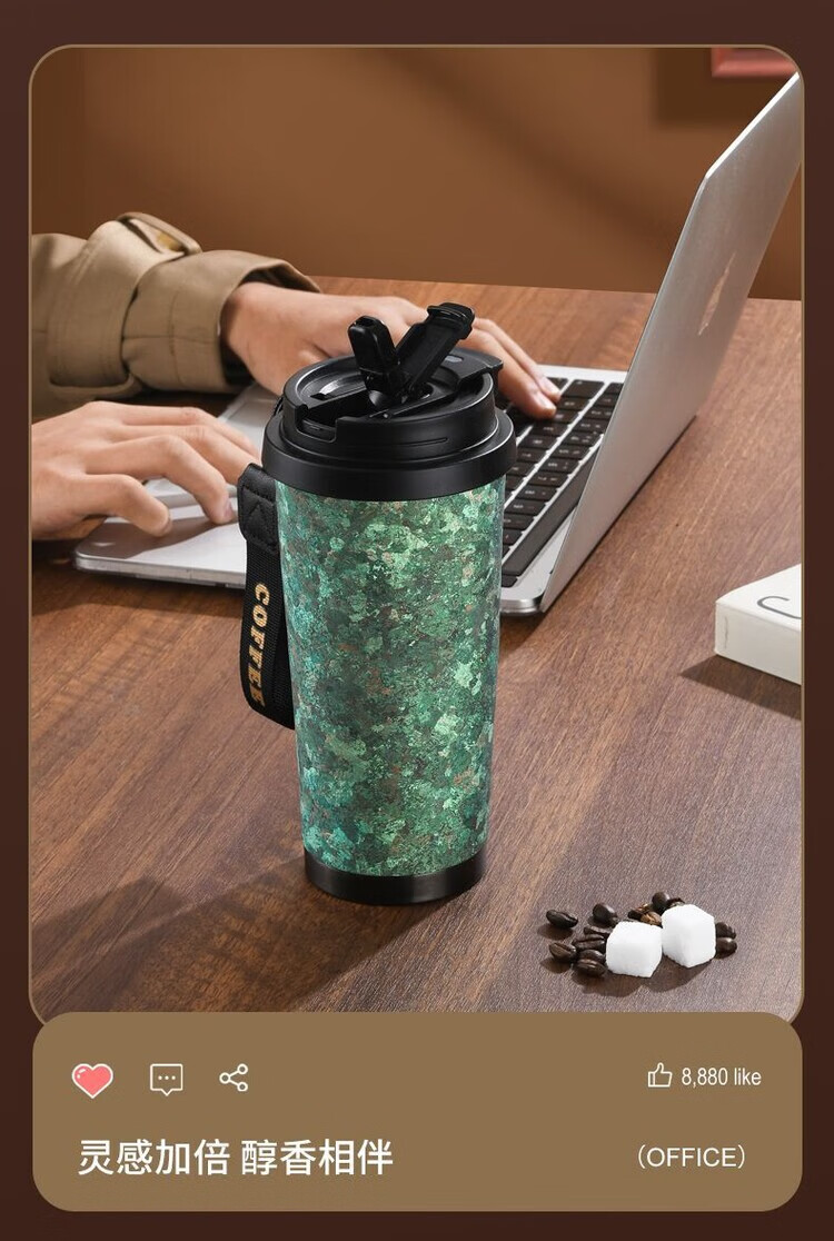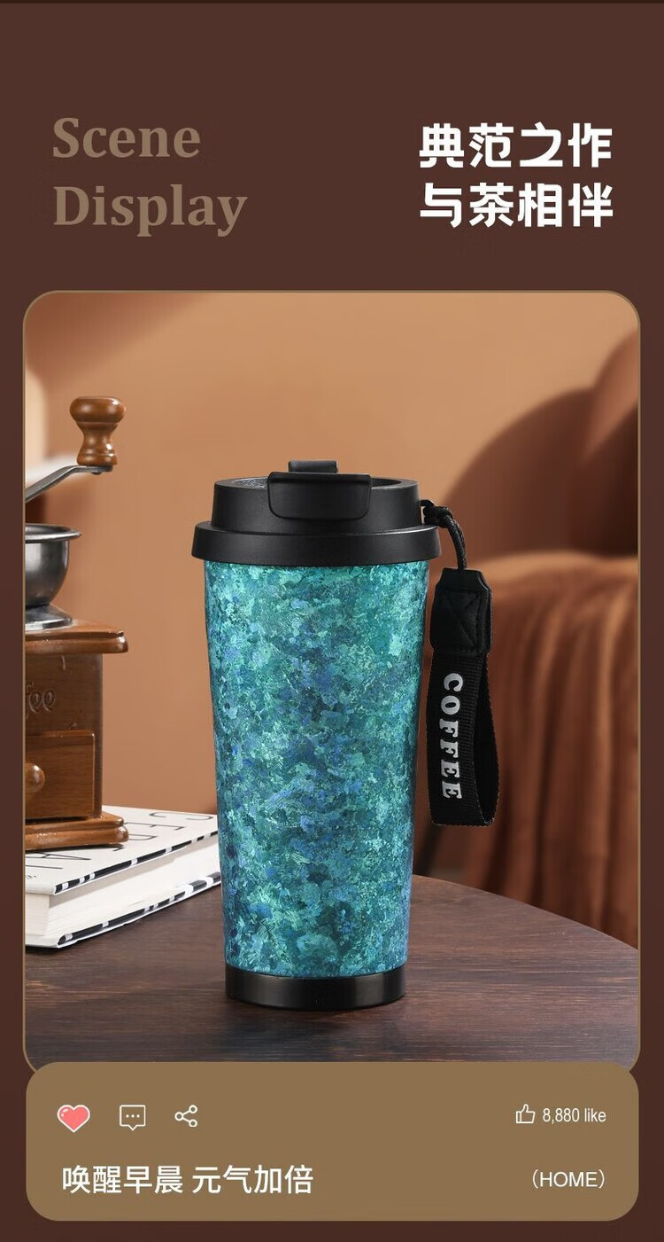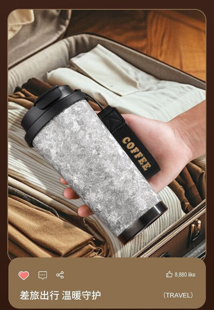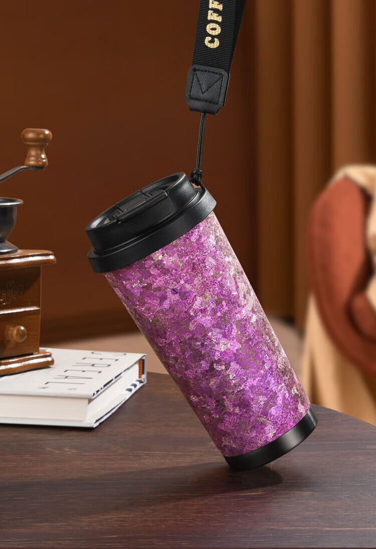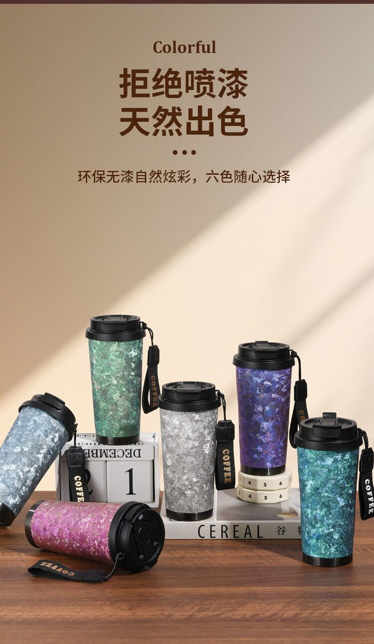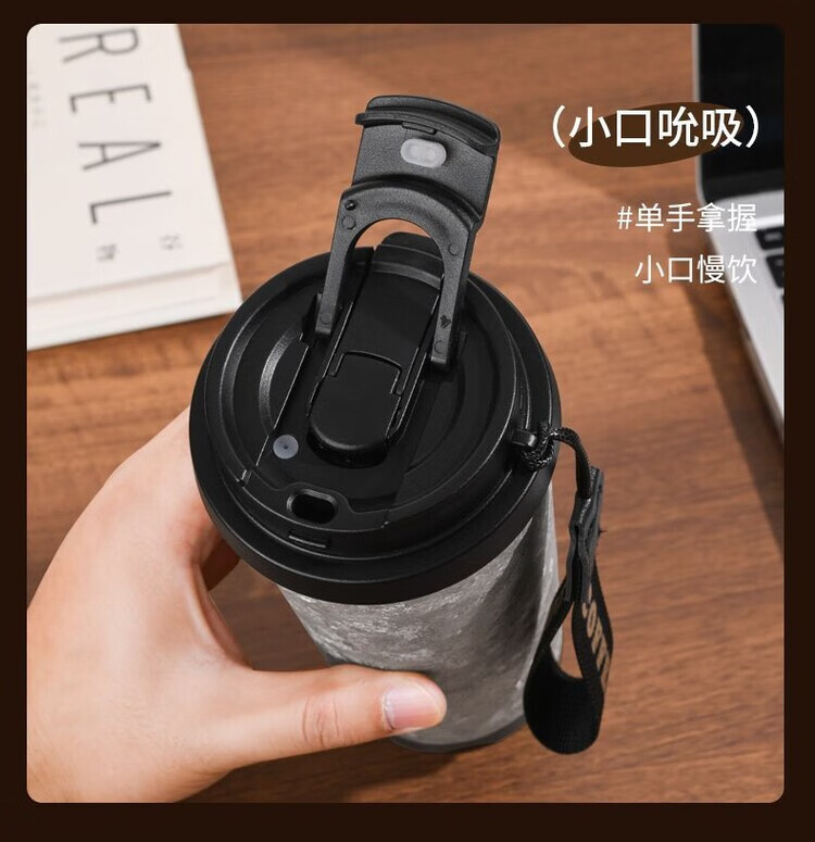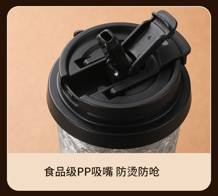 简漾纯钛咖啡杯内外纯钛新款保温水杯车载大容量吸管杯外带随行钛杯子 500ml 黑盖纯色小结晶提绳+吸管