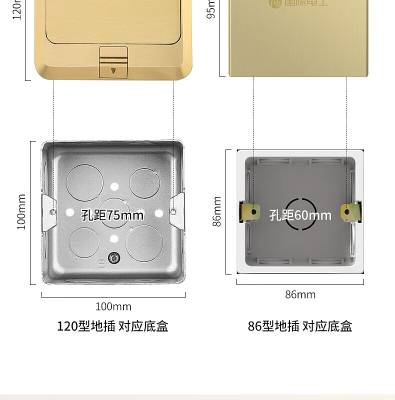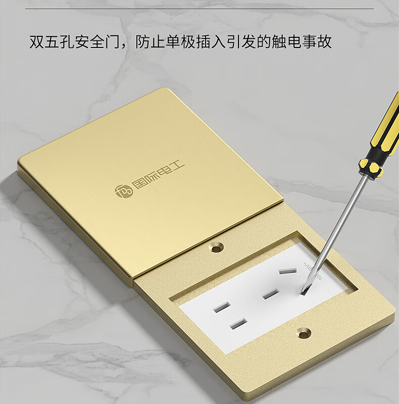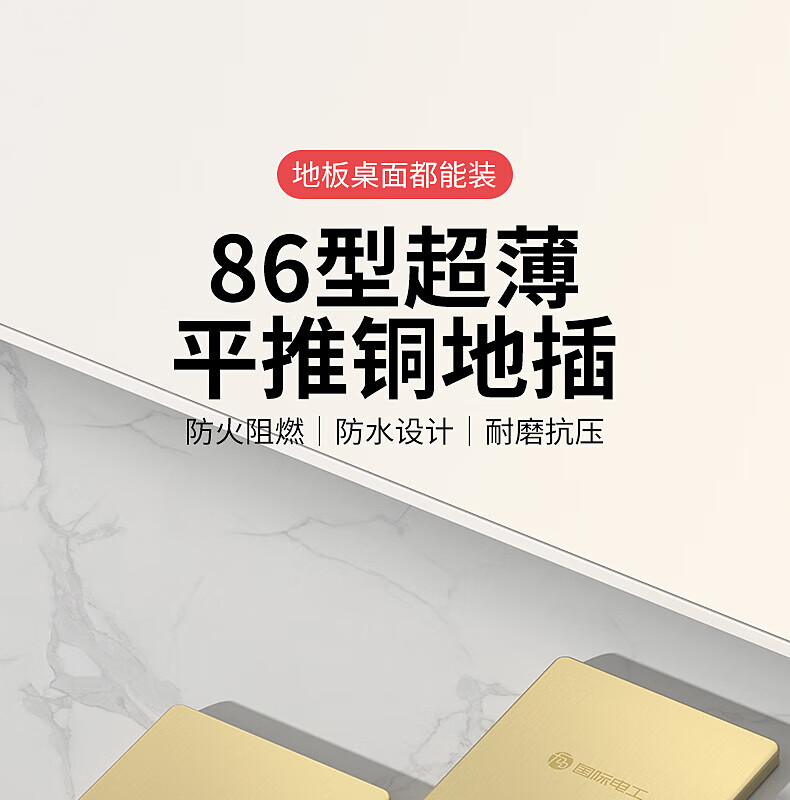 国际电工(FDD)86型地插平推式防水超薄全铜面隐藏式地板五孔电源网络地面地插座 五孔【86型平推】