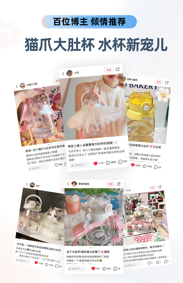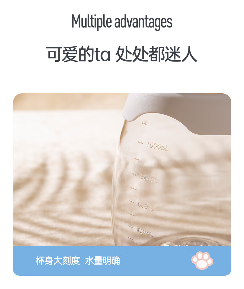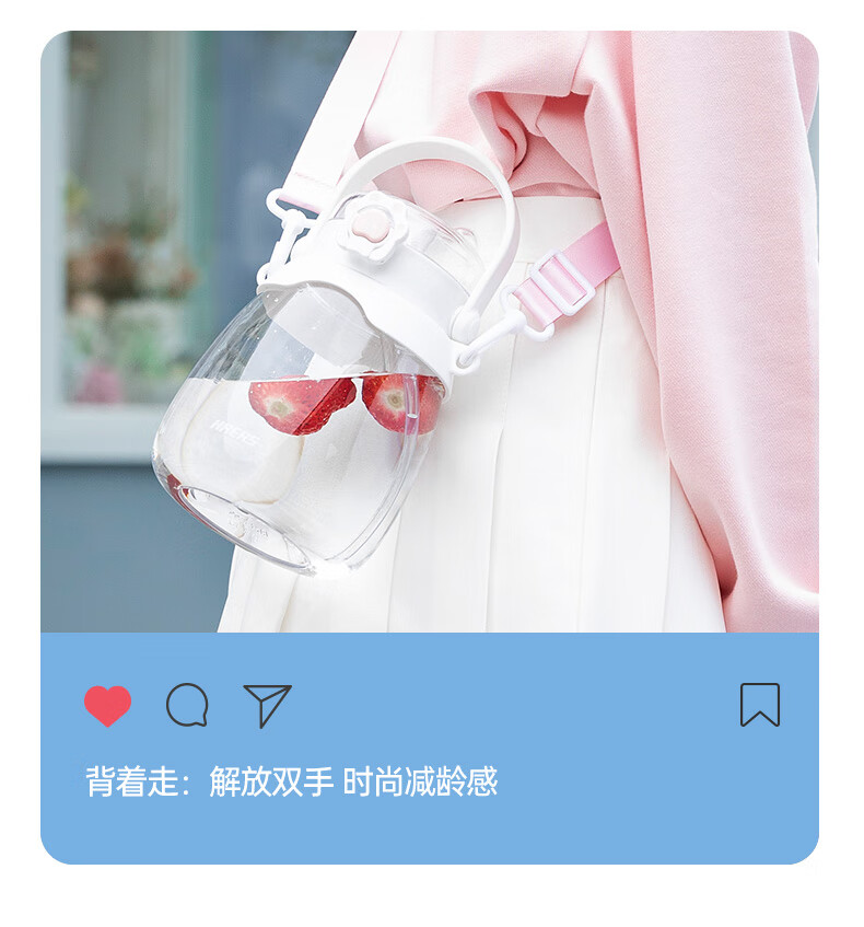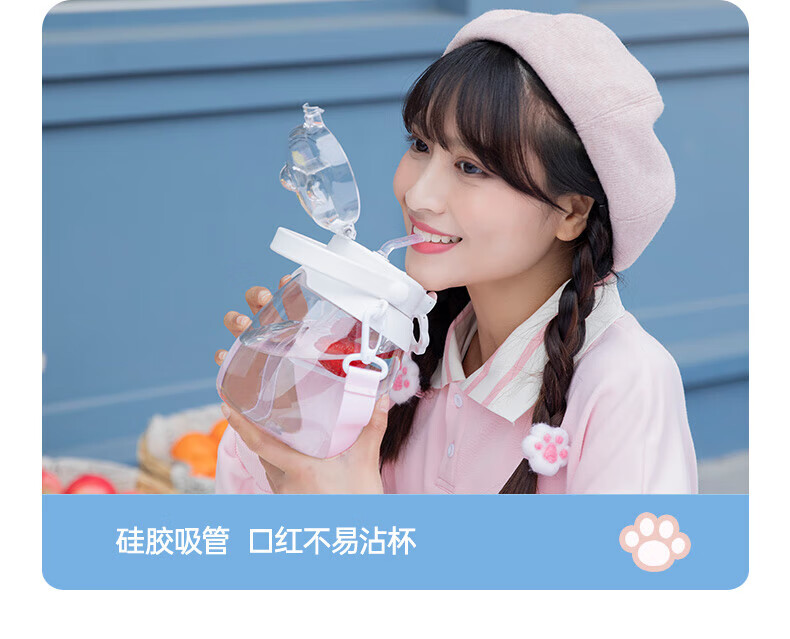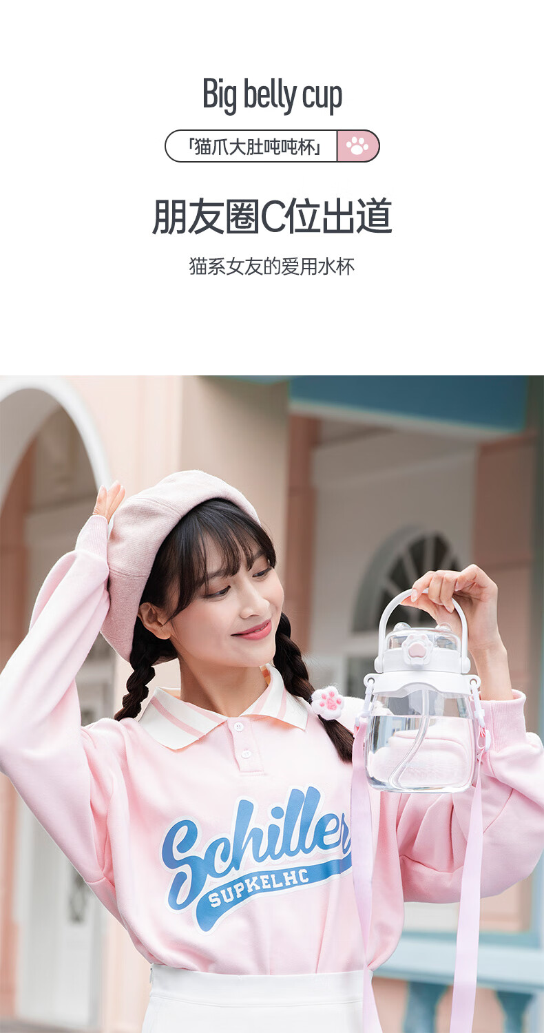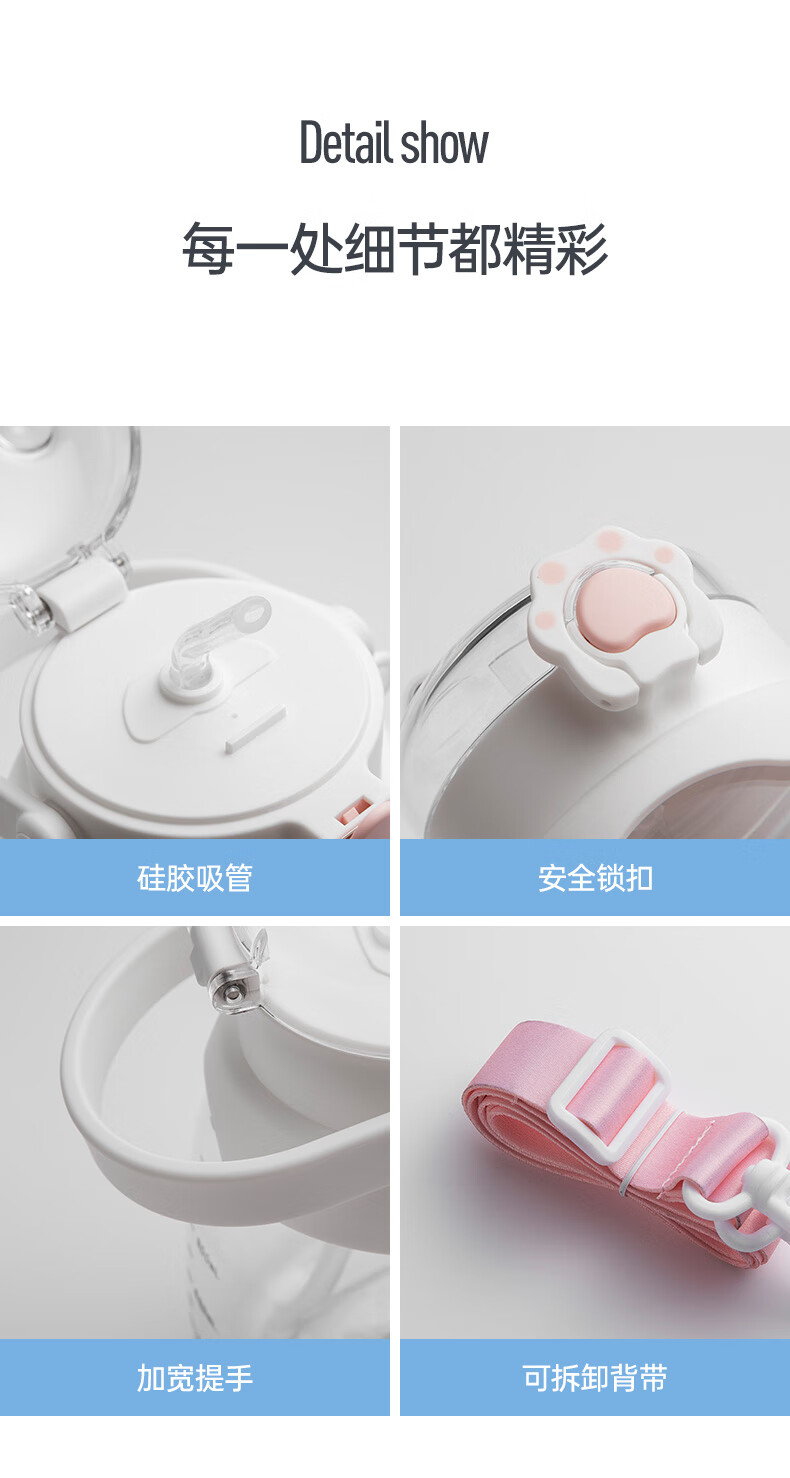 哈尔斯(HAERS)大肚杯塑料杯大容量水杯女吸管杯儿童学生水杯 云白950ML tritan材质