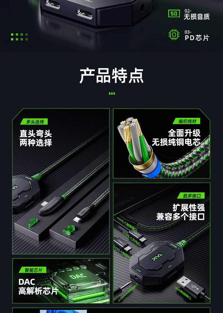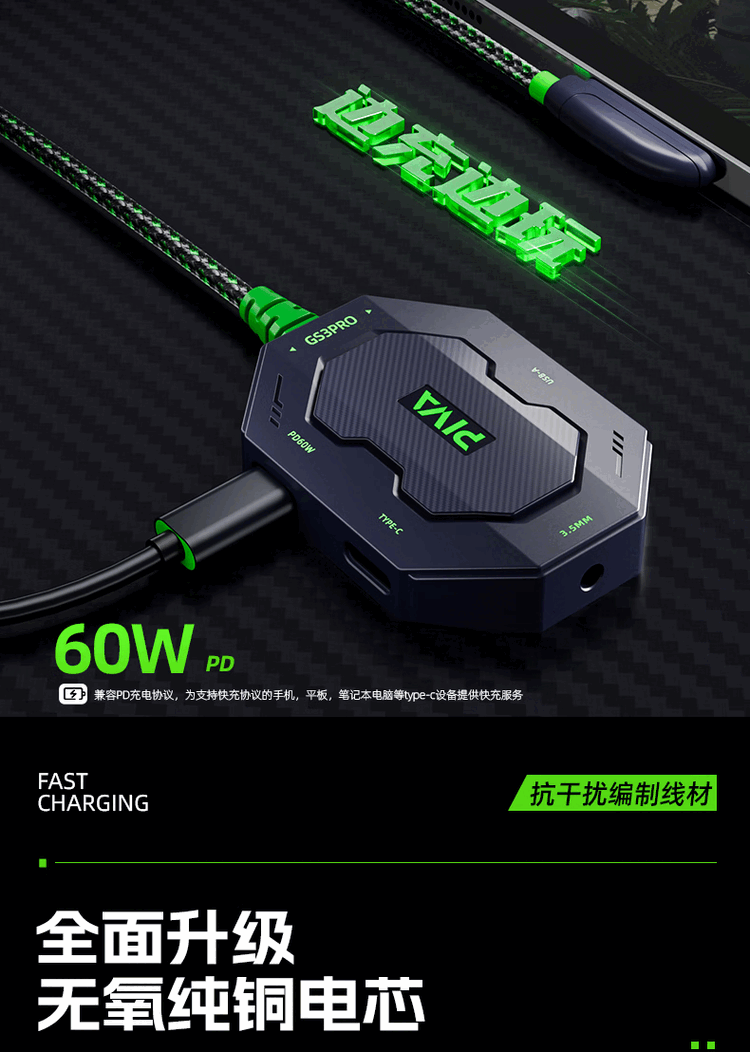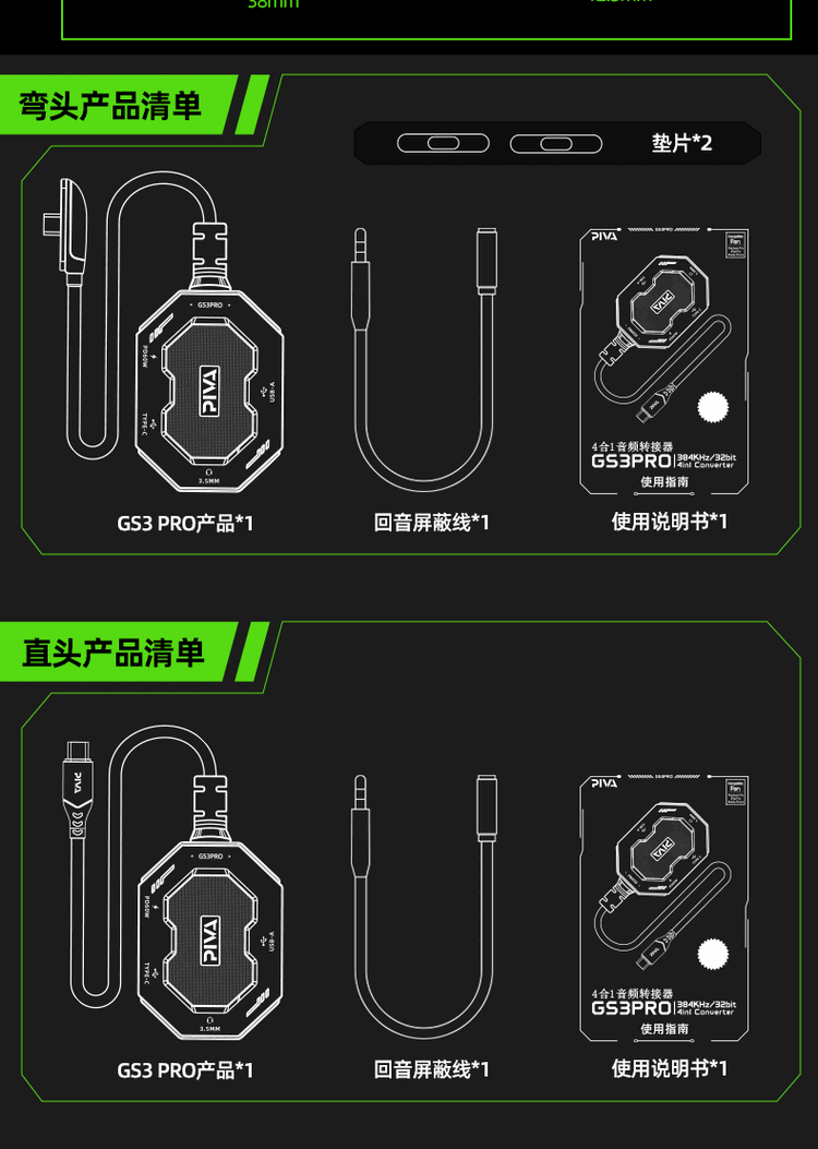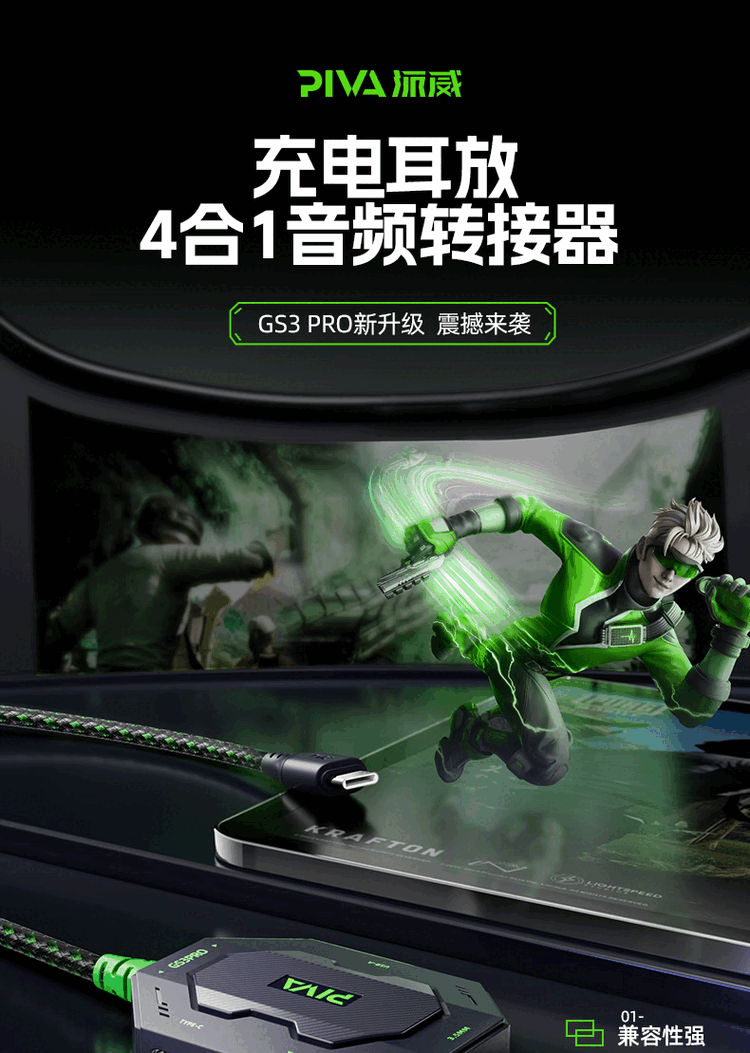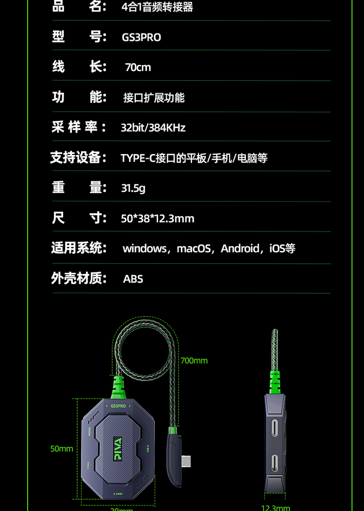 Piva派威GS3pro转接器typec耳机转换器适用苹果ipadpro平板手机15PM 派威GS3Pro直头四合一转接器