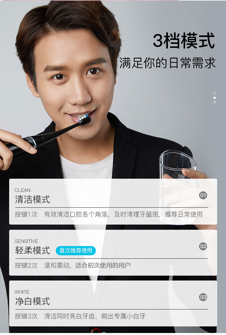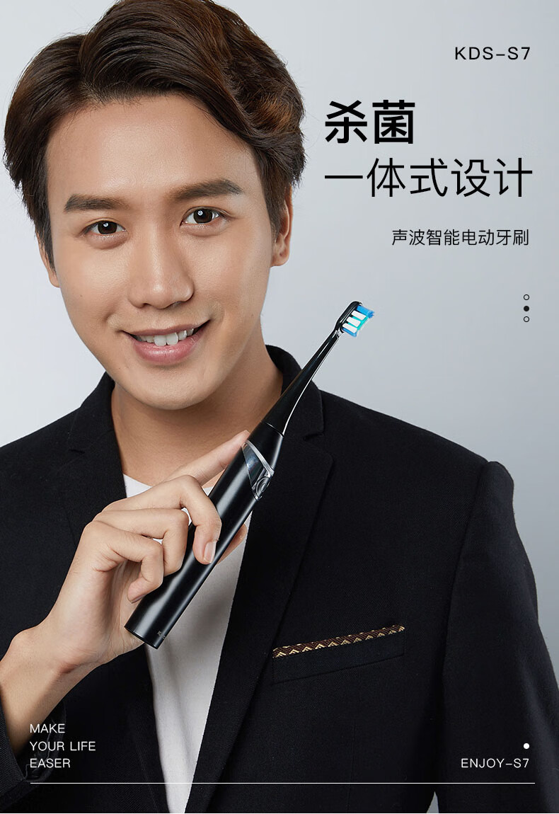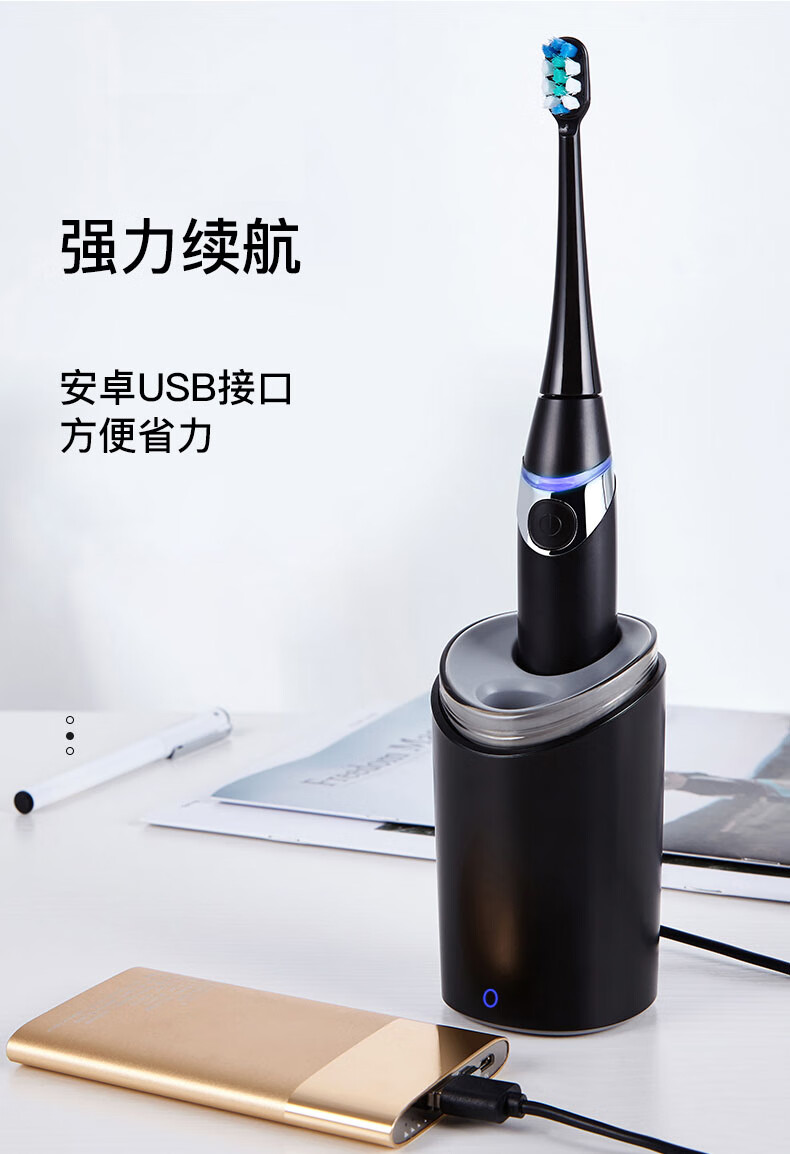 科蒂斯(KEDISI) 电动牙刷成人男女情侣智能声波震动全自动杀菌消毒便携式旅行牙刷礼物 黑色(共4刷头)