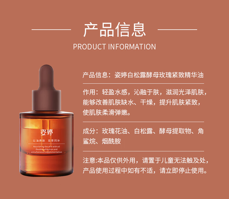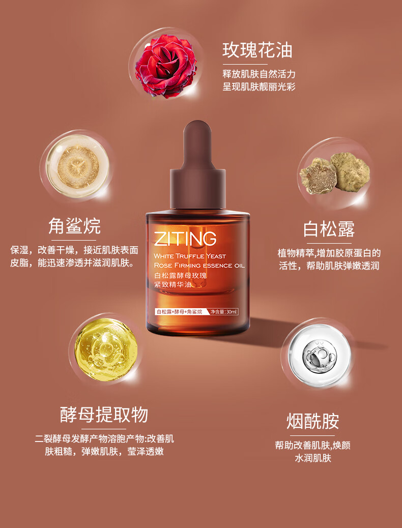 花月情白松露玫瑰紧致精油脸部专用舒缓修护抗皱紧致保湿面部精油护肤油 白松露玫瑰紧致精油30ml
