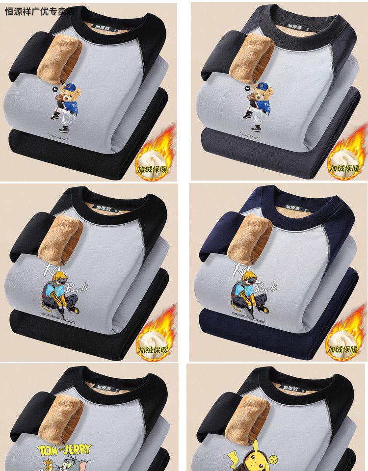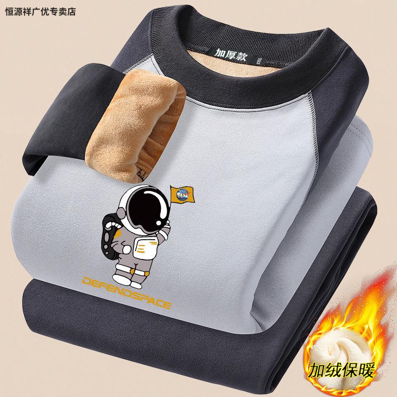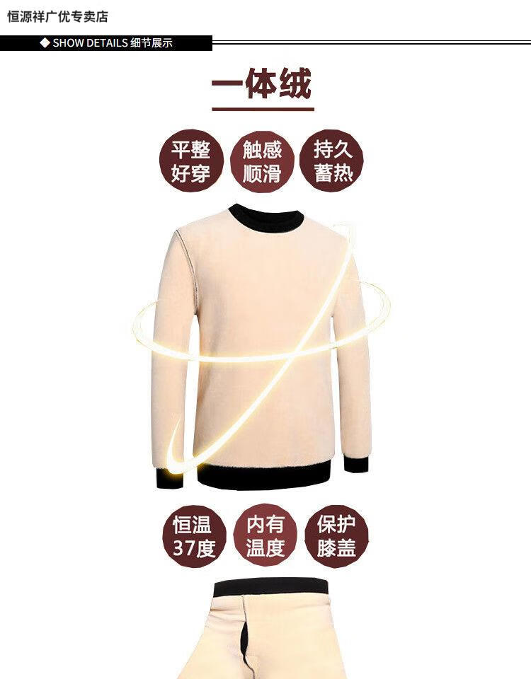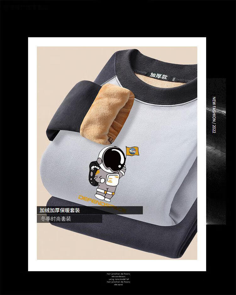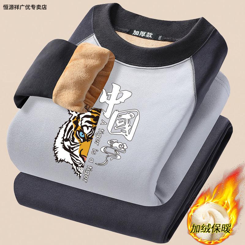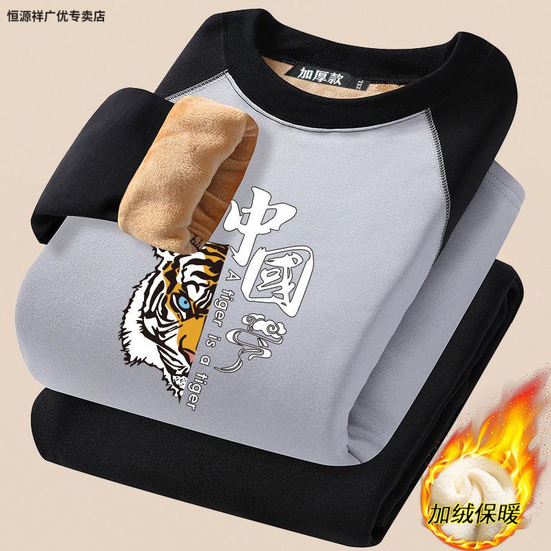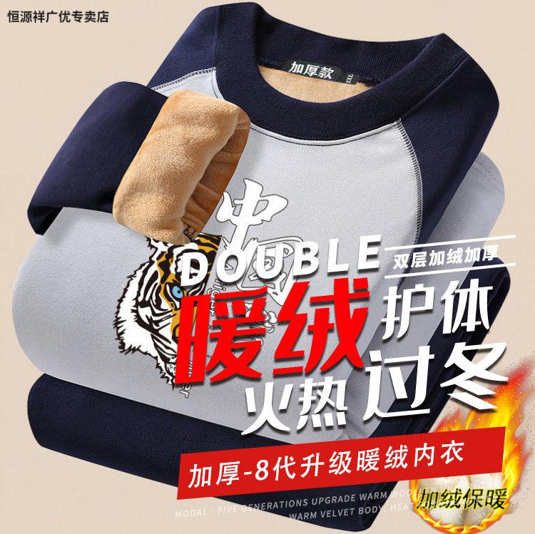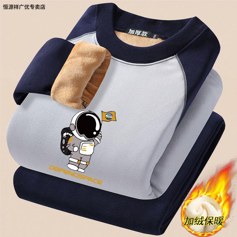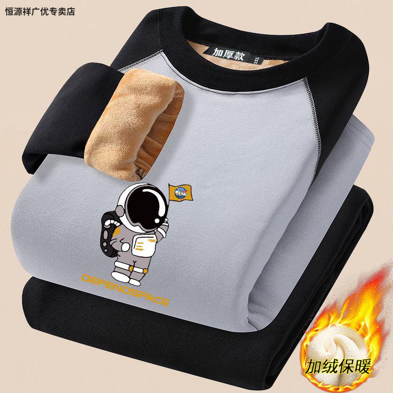 恒源祥冬季保暖内衣套装男加绒加厚学生青少年真超绒打底秋衣秋裤可外穿 9008灰色 上衣加裤子 4XL 【160-180斤】