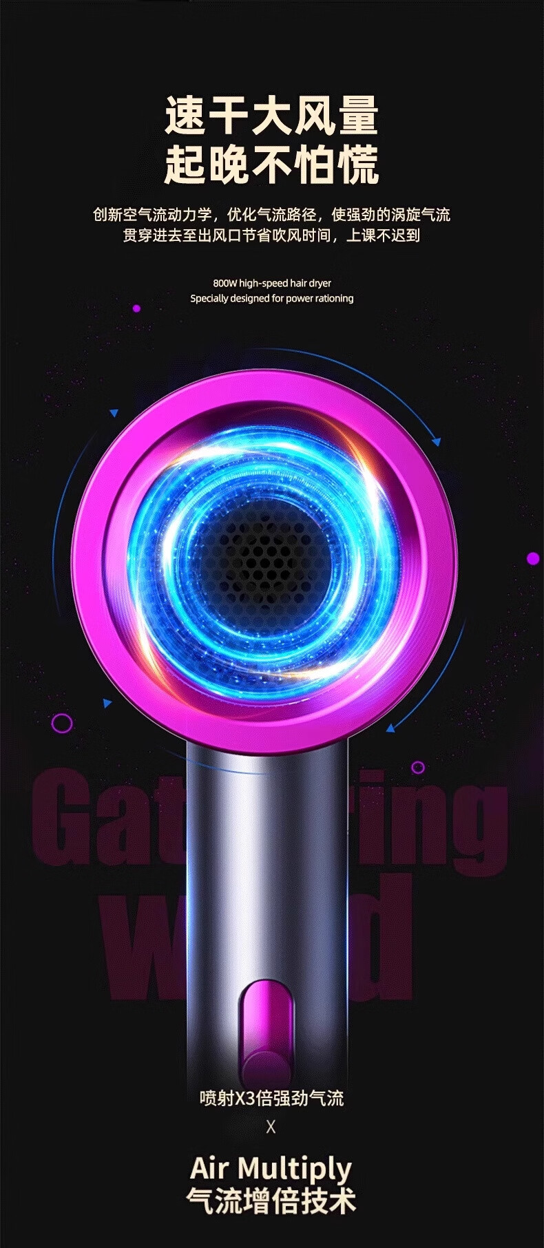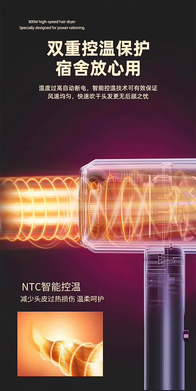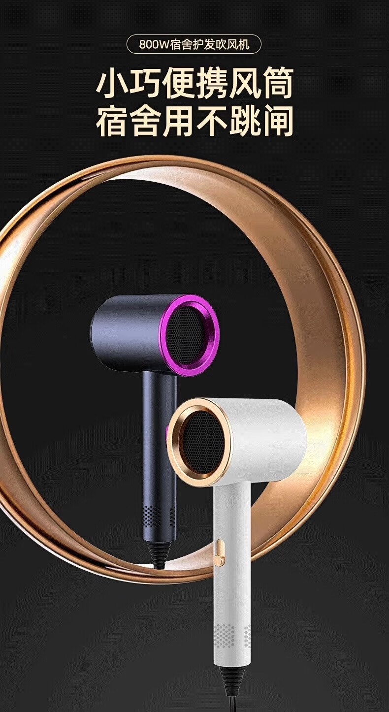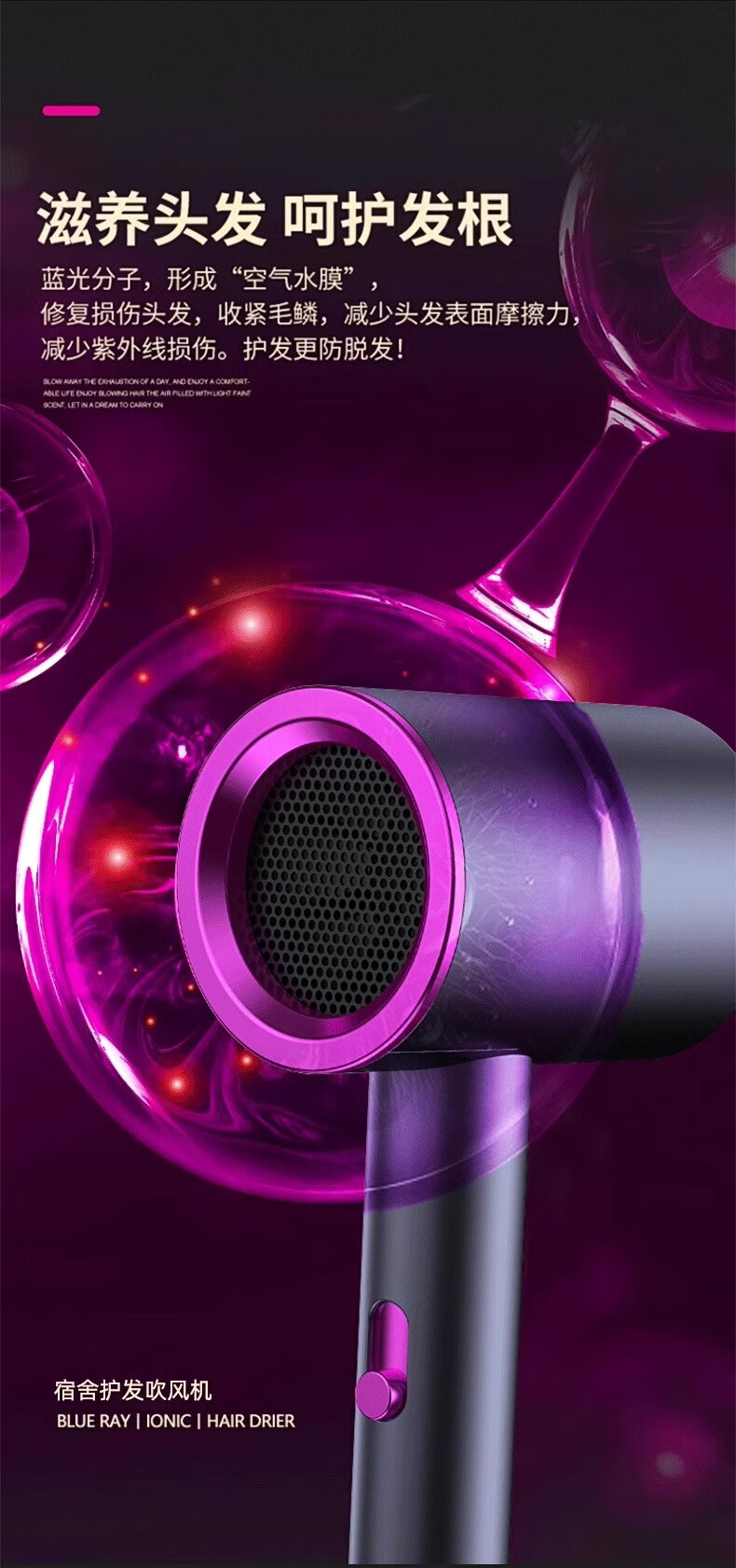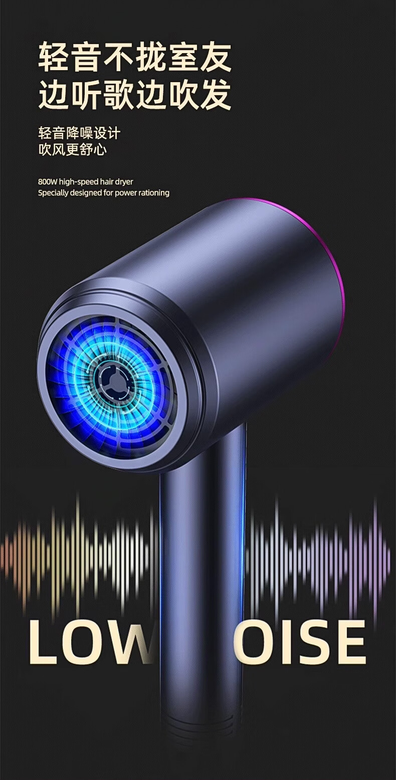 小米宝宝系列吹风机宿舍静音蓝光负离子家用大功率不伤发电吹风 渐变粉【800W】三档+蓝光负离子