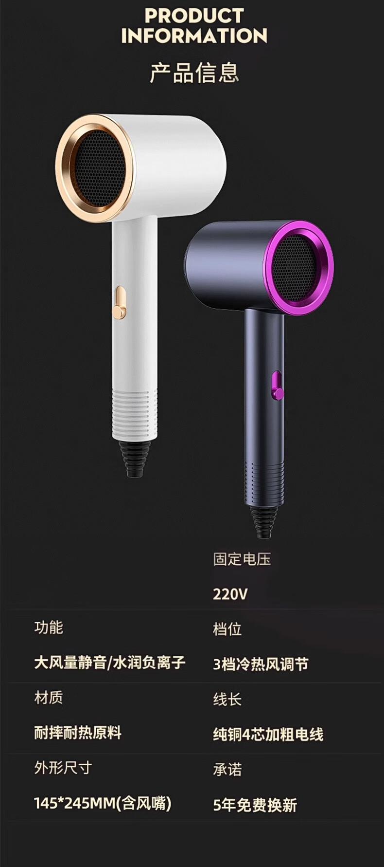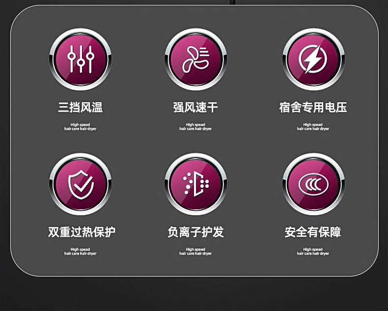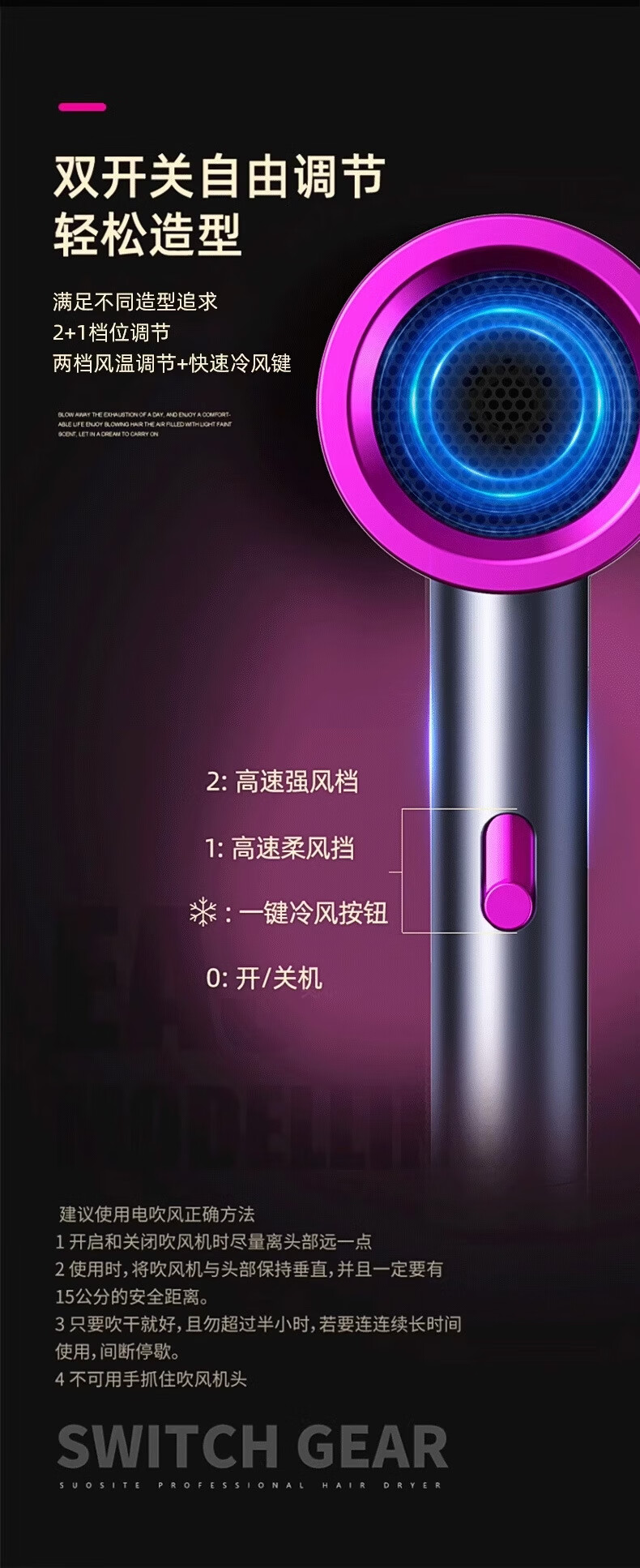 【优选百货】电吹风机家用高速大功率水润负离子护发学生宿舍男女 深灰-1000W-国标