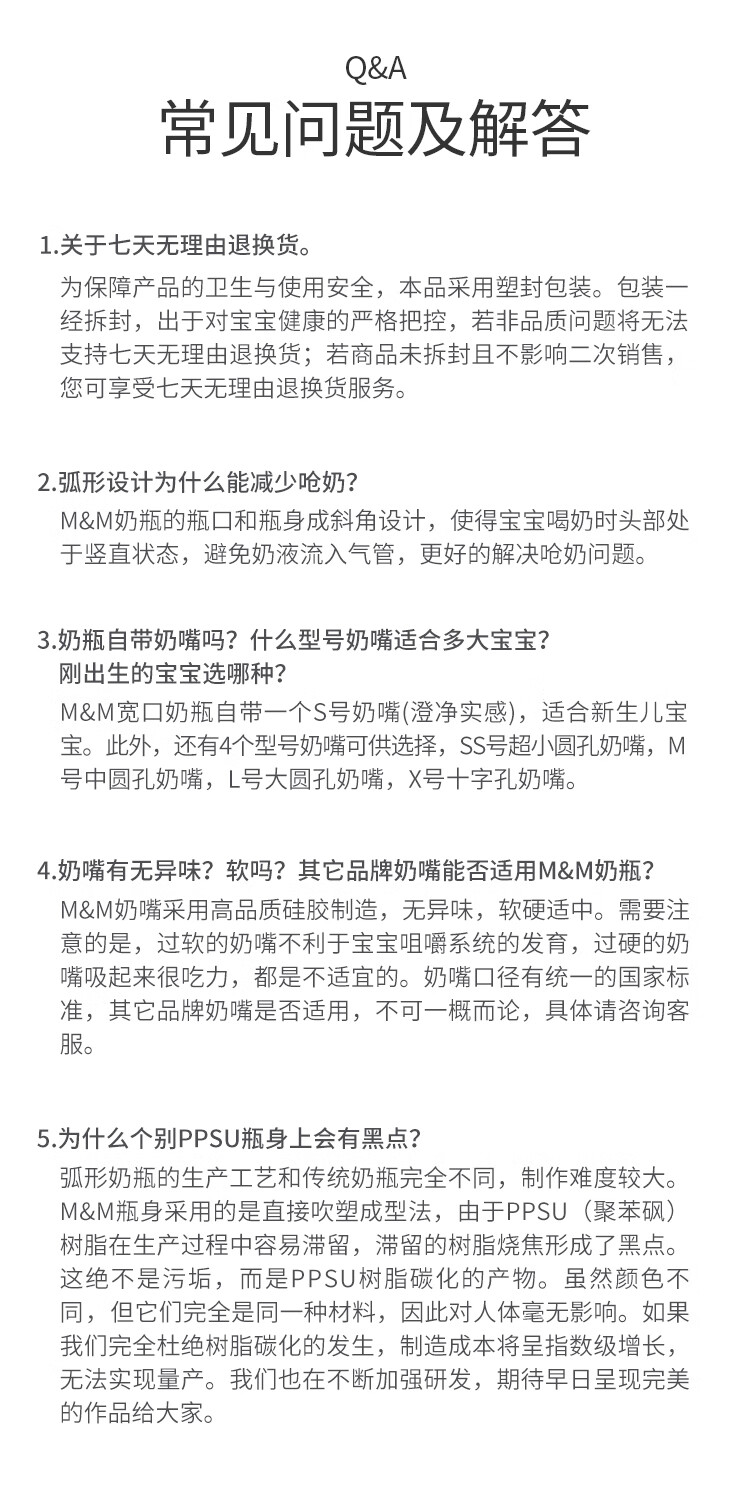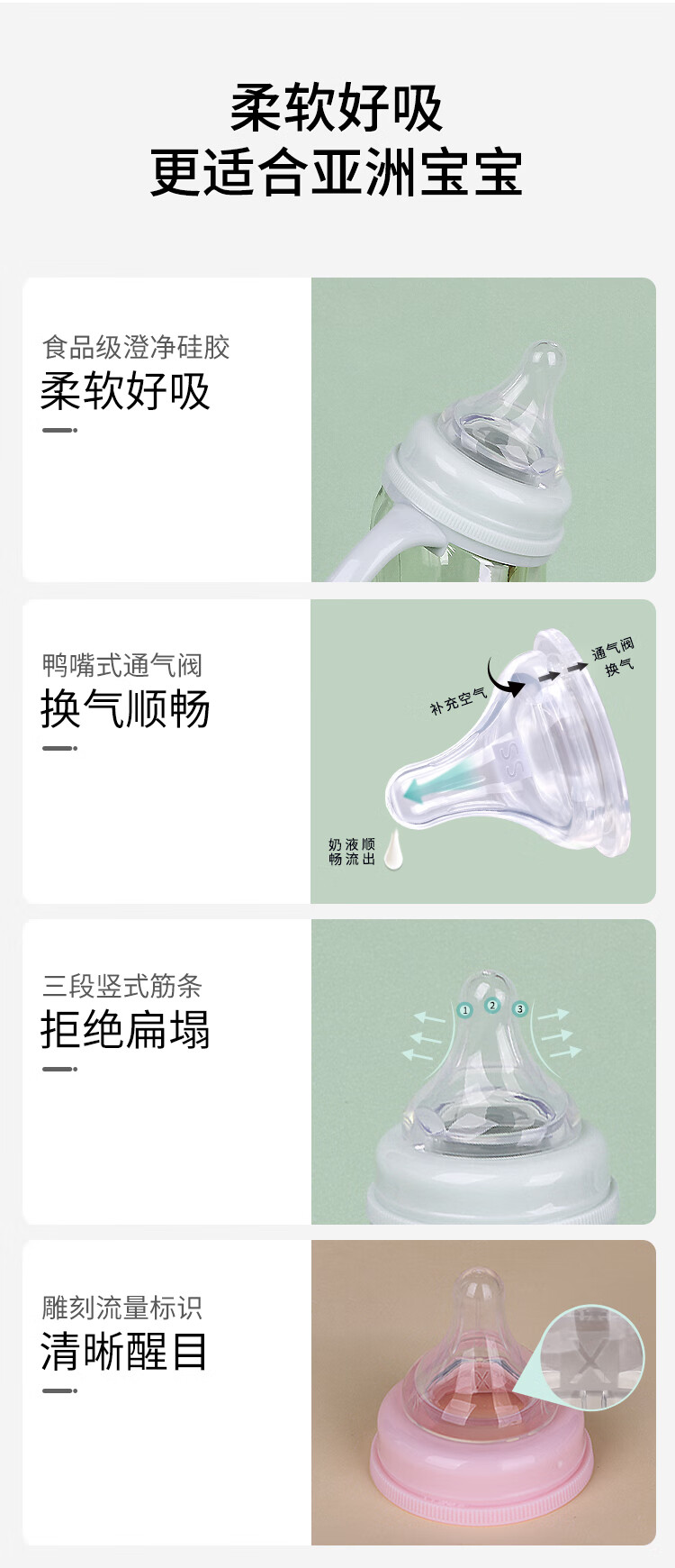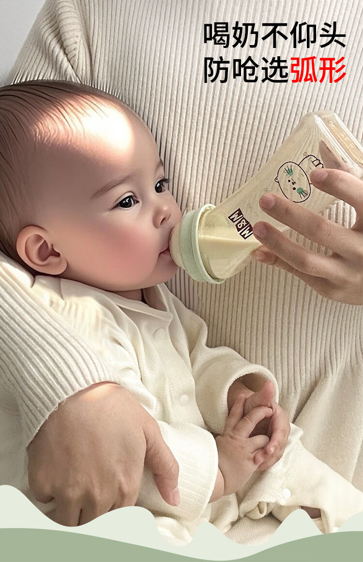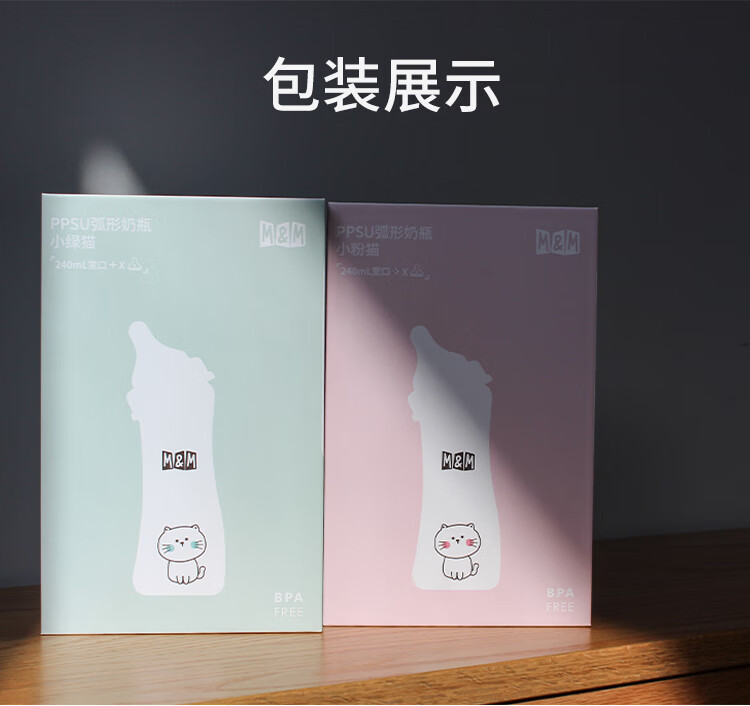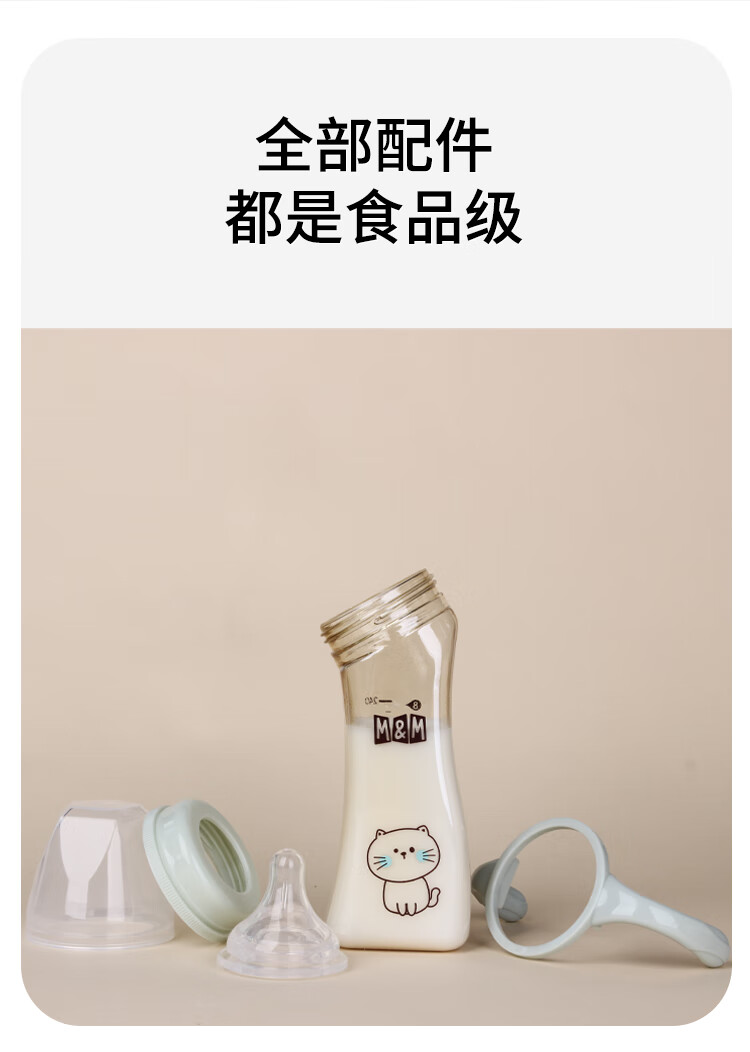 M&M防胀气奶瓶新生儿PPSU宽口径耐摔带手柄婴儿mm弧形奶瓶呛奶用 乖乖兔 240ml 0-6个月(自带S号+M号奶嘴)