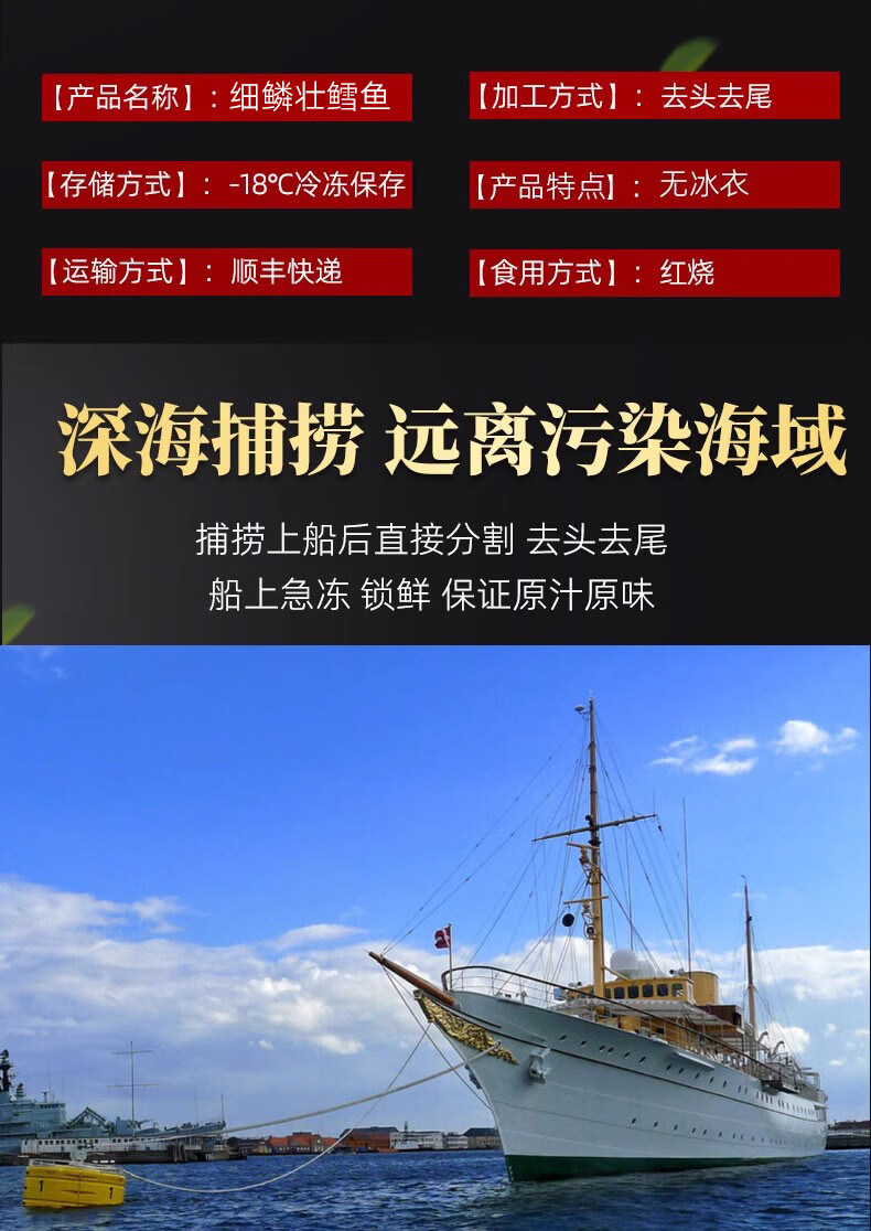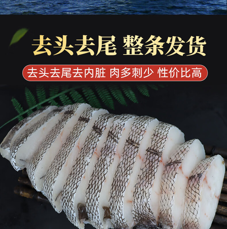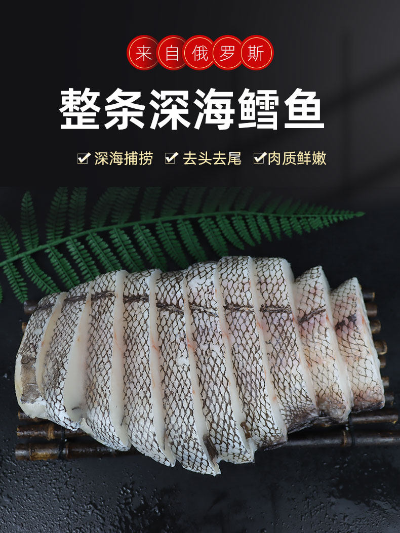 胖东来超市代购同款俄罗斯深海鳕鱼块中段片排原切尾段新鲜冷冻商 无冰整条2斤切片(去头去尾)*2条